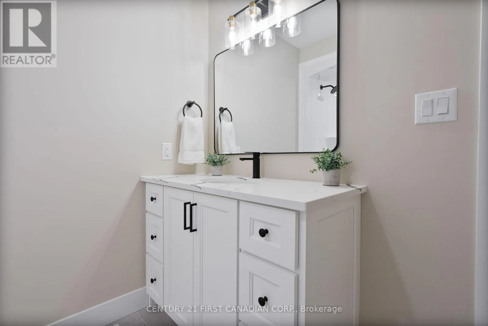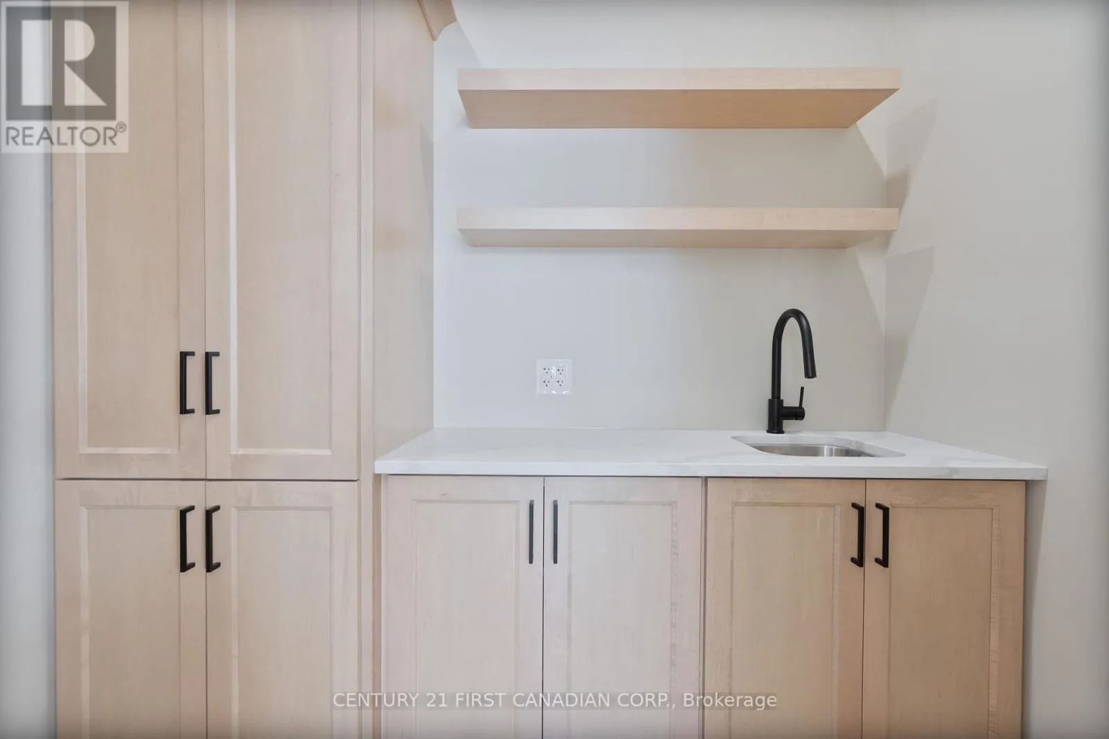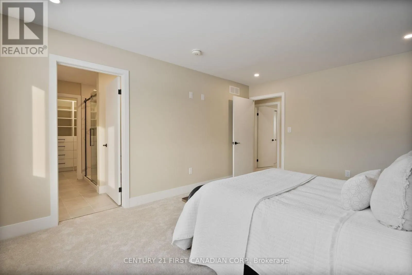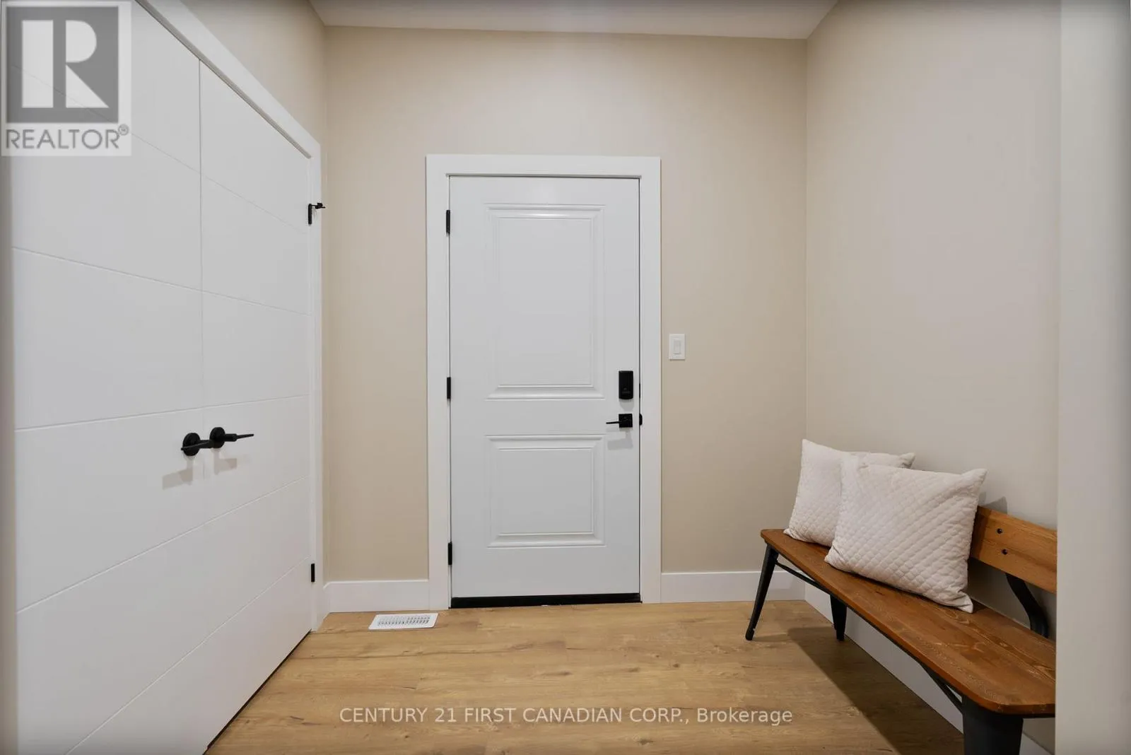 Cross Streets: Atkinson St. ** Directions: Heading north on Queen St, turn right onto Atkinson St, turn right onto Sheldabren St, the property is on the right. MOVE IN READY. This striking 1944 sqft new-build two-storey home in Ailsa Craig offers a perfect blend of modern design and small-town charm. The home features a sleek exterior accented with a mix of stone and modern siding, large black-framed windows, and a welcoming front porch. Inside, the main floor is open-concept and flooded with natural light, anchored by a cozy living area complete with a modern gas fireplace set into a floor-to-ceiling stone surround perfect for relaxing evenings. The kitchen boasts quartz countertops, minimalist cabinetry, a central island, and stainless-steel appliances, flowing seamlessly into the dining area with views of the backyard. Upstairs, you will find three well-sized bedrooms, including a spacious primary bedroom with a walk-in closet and an ensuite bathroom featuring a glass walk-in shower and dual vanities. The two additional bedrooms are ideal for family, guests, or a home office setup, and they share a bright, well-appointed full bathroom. The unfinished basement offers a blank canvas for future expansion whether you are envisioning a home gym, recreation room, or extra bedrooms, the space is ready to be transformed. Located in the peaceful community of Ailsa Craig, this home combines modern comfort with a quiet, family-friendly atmosphere. Some rooms are virtually staged, as noted on the photo comments. Taxes and Assessed value yet to be determined. (id:27476)