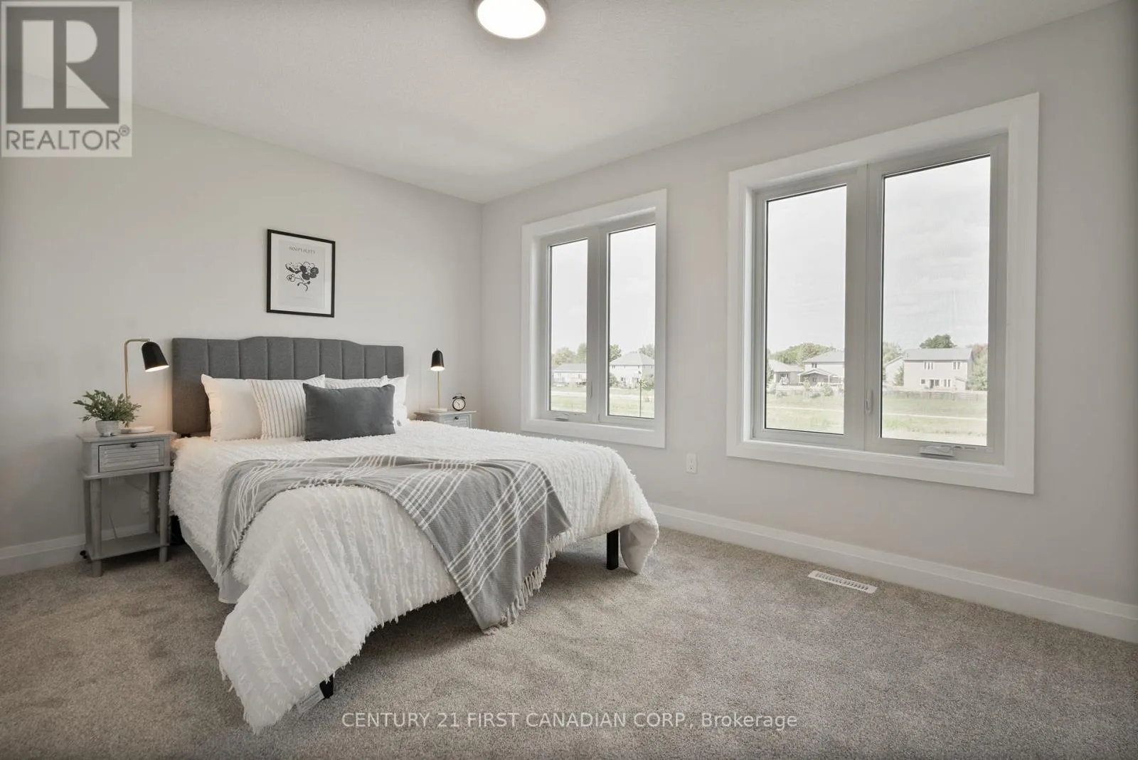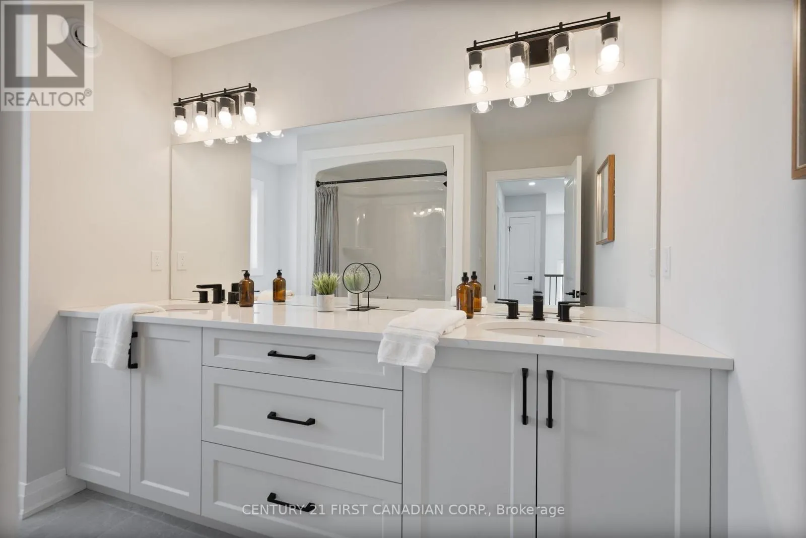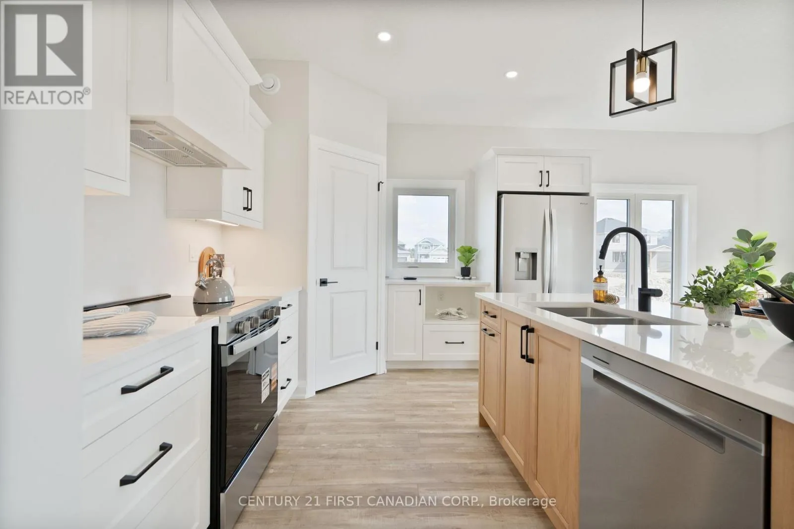 Cross Streets: Queen Street. ** Directions: Travelling south on Queen St, turn left onto Atkinson St. Turn right onto Tywnstra St, turn left onto Doerr Crt. Property is on the right. TO BE BUILT - Introducing The Richmond by Parry Homes a beautifully designed and thoughtfully crafted two storey home offers a seamless blend of timeless charm and contemporary finishes, perfect for families seeking both comfort and style. From the covered front porch, step into a spacious foyer that immediately showcases the homes bright and welcoming feel. The open-concept main floor is designed for both everyday living and entertaining, featuring a modern kitchen with quartz countertops, a corner pantry, and elegant finishes that carry through to the adjoining dining area. Large patio doors invite natural light and create a smooth transition to the backyard. The great room offers a bright and welcoming atmosphere, creating a natural gathering space for family and friends. A practical mudroom off the garage and a stylish 2-piece bath complete the main level. Upstairs, you will find three generously sized bedrooms, including a relaxing primary suite with a walk-in closet and a beautifully appointed ensuite with dual sinks. A second full bath, also with dual sinks, and convenient upper-level laundry offer thoughtful touches for modern family living. The interior combines luxury vinyl plank, ceramic tile, and soft carpet creating a clean, contemporary look that's both stylish and practical. With recessed lighting, neutral tones, and tasteful stone accents on the exterior, The Richmond delivers lasting appeal with a fresh, move-in-ready aesthetic. Built with care by Parry Homes, this is a home where style meets substance in a friendly, growing community just a short drive from London. Please note that pictures are from a previous model Richmond Model and some finishes and/or upgrades shown may not be included. Taxes & Assessed Value yet to be determined. (id:27476)