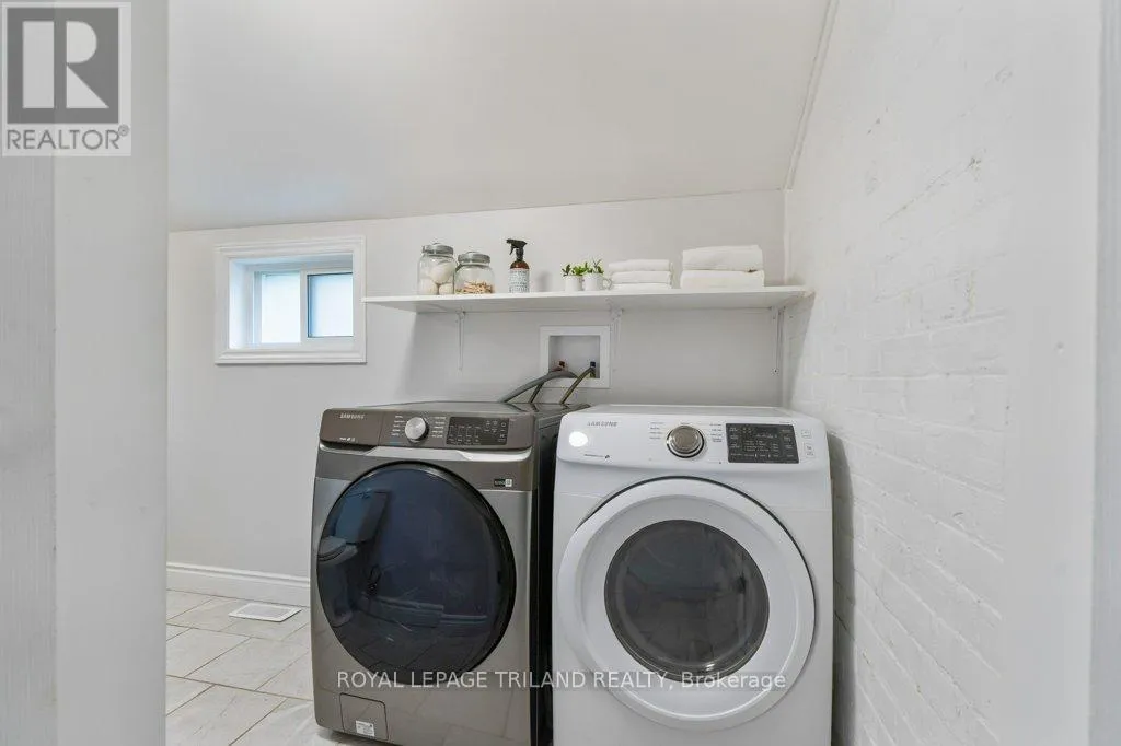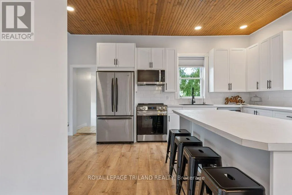 Cross Streets: Main Street and Ellen Street. ** Directions: South on Main Street from Grand Bend, turn left on Ellen Street and left on Catherine, property on the left at the end of the street. Welcome to this adorable two-storey yellow brick home, full of charm and curb appeal, highlighted by a welcoming covered front porch and landscaped gardens. Ideally located in the growing community of Parkhill, this property offers the best of small-town living with easy access to nearby amenities-just 25 minutes to the beach, 30 minutes to London, and 50 minutes to the Sarnia-Port Huron border.Parkhill continues to thrive with recent infrastructure improvements, including repaved main streets, new sidewalks, and upgraded public service buildings such as the ambulance station, fire hall, and library. Residents enjoy convenient access to elementary and high schools, parks, an arena, gym, tennis courts, restaurants, Tim Hortons, Home Hardware, and more. Nature lovers will appreciate the nearby dam and conservation area, perfect for boating and scenic walks.Inside, the bright open-concept kitchen features a large island, backyard-facing sink, walk-in pantry, tile backsplash, and quality appliances. The sun-filled dining area flows seamlessly into a cozy living room, while a versatile main-floor flex space is ideal for a home office, playroom, or gym. A modern three-piece bathroom with tiled shower and convenient main-floor laundry (washer and dryer included) complete this level.At the rear, a mudroom provides access to both the partial basement-perfect for storage-and the fully fenced backyard, which includes a patio and garden shed, ideal for entertaining or pets.Upstairs, you'll find three comfortable bedrooms, a hallway closet, and a four-piece bathroom with both a tub and separate shower.Notable updates include a metal roof, furnace and air conditioning, owned water heater, kitchen appliances, and upgraded electrical service.This move-in-ready home seamlessly blends historic character with modern conveniences at an affordable price. Don't miss your opportunity to own a beautiful home in Parkhill! (id:27476)