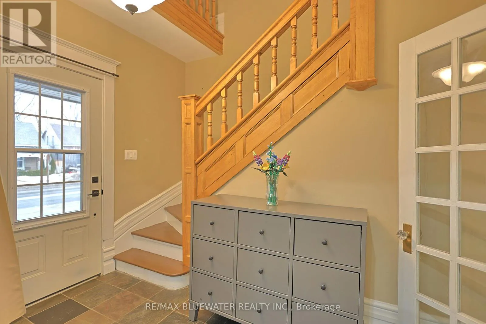 Cross Streets: Parkhill Main Street and John Street. ** Directions: Home is on West side of Parkhill Main Street. NICELY APPOINTED YELLOW BRICK CENTURY HOME OFFERING LOTS OF CHARACTER IN THE 2,221 SQ FT OF LIVING SPACE! Welcome to 181 Parkhill Main Street, Parkhill where you find a unique balance of century home charm and modern updates. Great curb appeal with the yellow brick, decorative trim, covered front porch, carport and more. Step inside the entrance foyer that leads into the expansive living room. Hardwood flooring throughout living and dining rooms with lots of large windows for lots of natural light. Living room is so large enough that it allows for two seating areas! Sit around the fireplace accented with tile and decorative wood mantle. Double glass doors leads into the dining room from one doorway and an ornate entrance way with columns leading into the kitchen from the other entrance. Nicely updated kitchen allows for eat-up bar, lots of cabinetry, lots of counter space, stainless steel appliances, slate tile flooring and more. Off of kitchen is the covered carport entrance that leads into mudroom that includes laundry and two piece bathroom. The second level landing offers access to your very own balcony. Primary bedroom with three piece ensuite and walk-in closet large enough for make up vanity. Second level allows for another two generously sized bedrooms and four piece bathroom. Full basement which includes the utility room offers lots of space for storage. Step onto the expansive back deck overlooking the fenced back yard. Driveway with carport allows for three cars with space for a couple more on the other side of home when needed. This home has lots of character with the original doorknobs, hardwood flooring, glass panel doors, decorative trim, wide baseboard trim, stained glass and much more that makes this a special home indeed. Parkhill is a great place to live for all ages with an active downtown core, community groups and rec centre! Only a 30 minute drive from London and a 15 minute drive from Grand Bend and the shores of Lake Huron. (id:27476)
