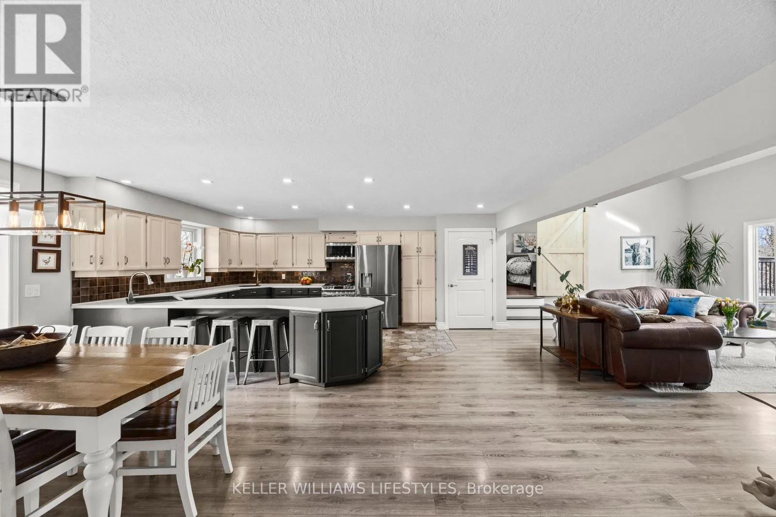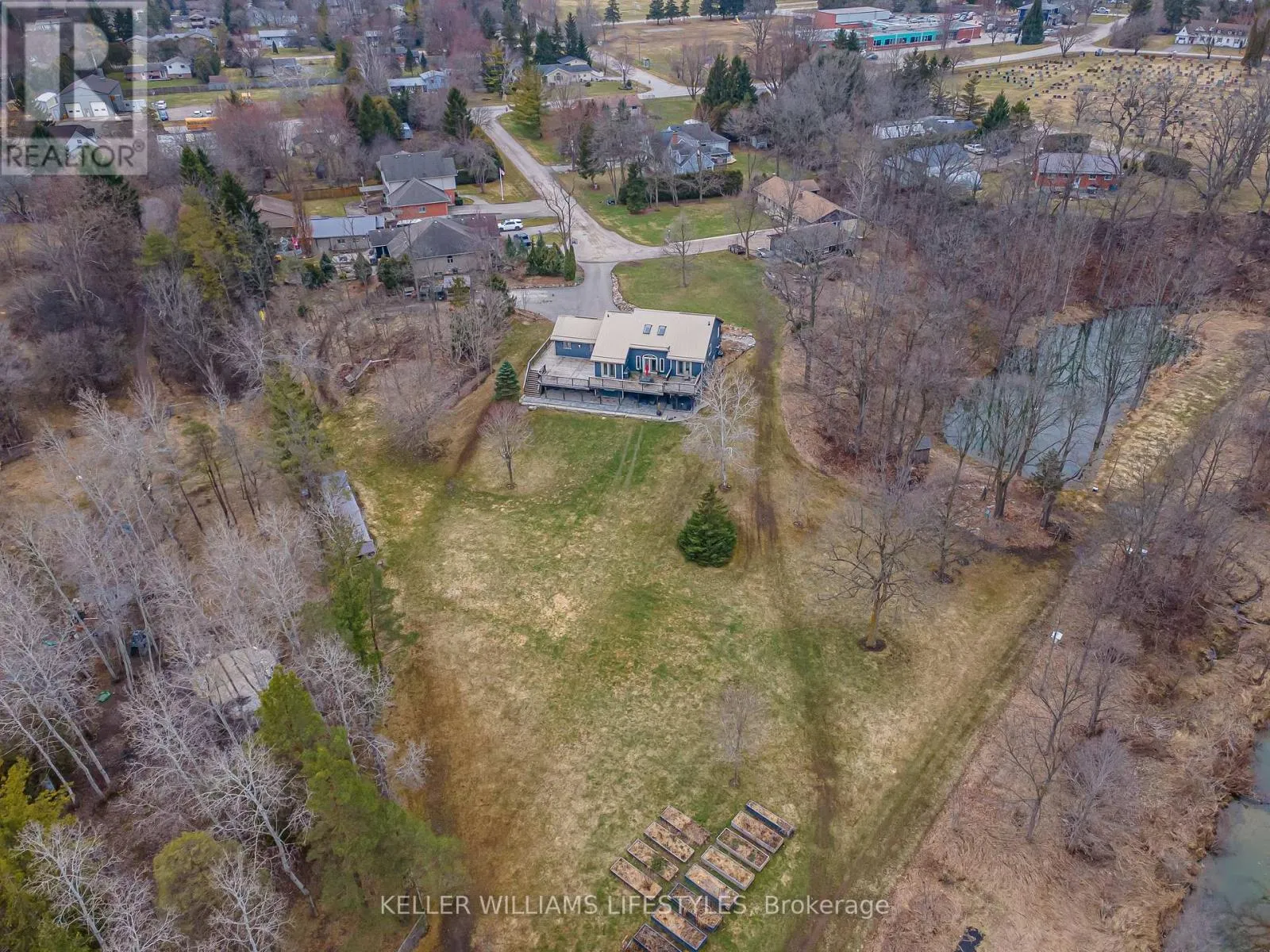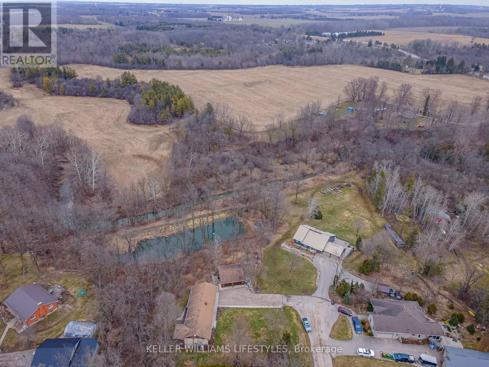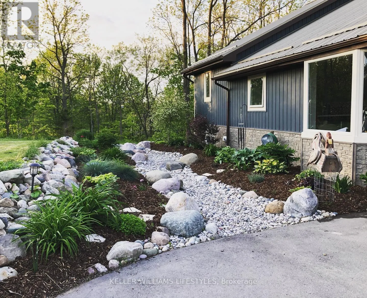 Cross Streets: Queen Street and Alma Street. ** Directions: Nairn Road to Petty Street, turn right at the lights. Turn left onto Queens Ave, take the first right onto Alma Street. Property is at the end of the street. Nestled at the end of a quiet dead-end street in the charming hamlet of Nairn, this private 2.5-acre property offers exceptional peace and tranquility. Enjoy your morning coffee or an evening glass of wine on the expansive back deck or the lower-level covered patio while taking in the serene surroundings. Thoughtfully designed with 3200 sq ft of finished living space, this home features 5 spacious bedrooms, with two conveniently located on the main level and three additional bedrooms on the lower level. The primary suite is a true retreat, complete with a well-appointed 6-piece en-suite featuring a soaker tub and a generous walk-in closet. The heart of the home is an expansive open-concept kitchen, dining, and living area, ideal for both everyday living and entertaining which is enhanced by stunning views of the backyard. Skylights fill the living room with natural light, while a striking spiral staircase leads to the lower level, adding architectural elegance. Enjoy seamless indoor-outdoor living with a walkout to the upper deck from the main living area, as well as a second walkout from the lower-level rec room to the covered patio. Extensively updated in 2017, this home features many significant improvements, including most windows and doors, bathrooms, and HVAC, among others. A heated 2-car garage adds comfort and convenience for year-round use. Outdoors, the beautifully landscaped grounds offer a truly unique lifestyle. A custom-built pond provides enjoyment in every season, perfect for summer swimming and winter skating, while garden boxes and chicken coops add to the property's charm. Backing onto open space and a small stream, the setting creates a private, picturesque retreat just minutes from everyday amenities. This home is walking distance to the elementary school, local park and a short 5 minute drive to Ailsa Craig and 20 minutes to London. This is a rare opportunity to own a one-of-a-kind home where comfort, style, and nature come together. (id:27476)
