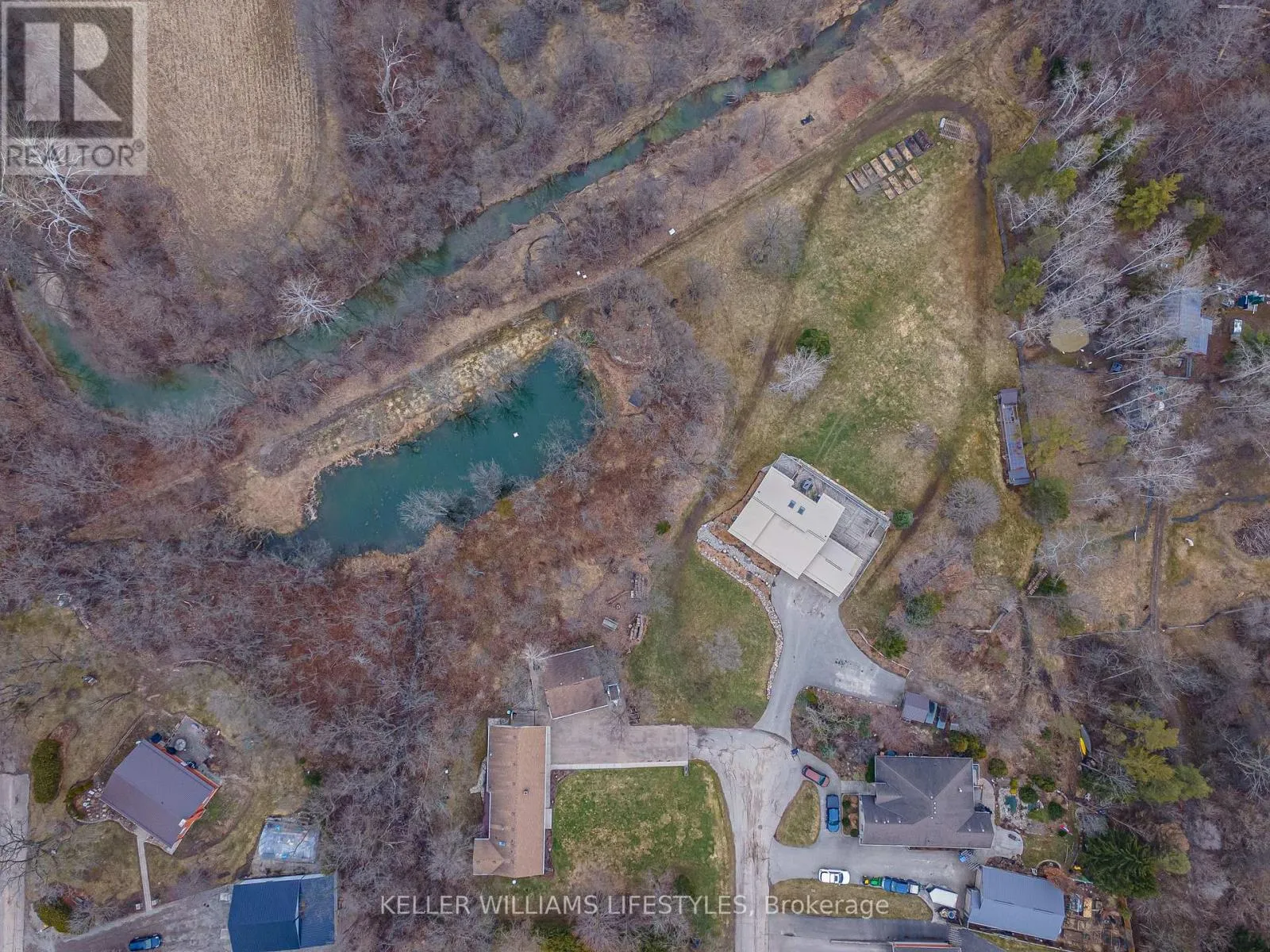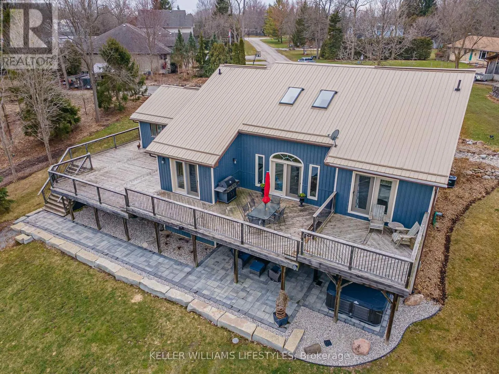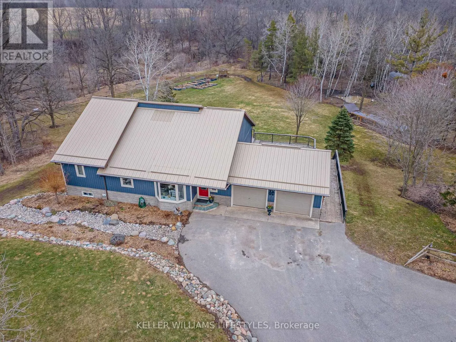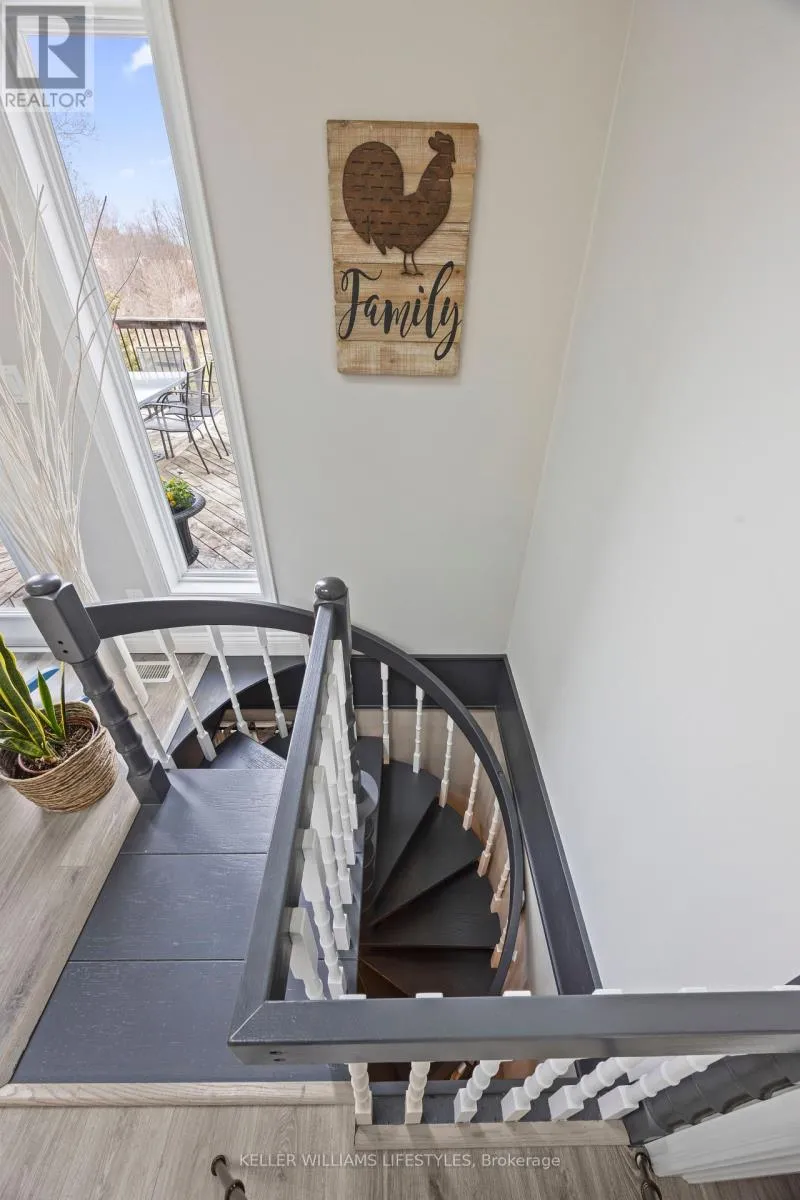 Cross Streets: Queen Street and Alma Street. ** Directions: Nairn Road to Petty Street, turn right at the lights. Turn left onto Queens Ave, take the first right onto Alma Street. Property is at the end of the street. Nestled at the end of a quiet dead-end street in the charming hamlet of Nairn, this private 2.5-acre property offers exceptional peace and tranquility. Enjoy your morning coffee or an evening glass of wine on the expansive back deck or the lower-level covered patio while taking in the serene surroundings. Thoughtfully designed with 3200 sq ft of finished living space, this home features 5 spacious bedrooms, with two conveniently located on the main level and three additional bedrooms on the lower level. The primary suite is a true retreat, complete with a well-appointed 6-piece en-suite featuring a soaker tub and a generous walk-in closet. The heart of the home is an expansive open-concept kitchen, dining, and living area, ideal for both everyday living and entertaining which is enhanced by stunning views of the backyard. Skylights fill the living room with natural light, while a striking spiral staircase leads to the lower level, adding architectural elegance. Enjoy seamless indoor-outdoor living with a walkout to the upper deck from the main living area, as well as a second walkout from the lower-level rec room to the covered patio. Extensively updated in 2017, this home features many significant improvements, including most windows and doors, bathrooms, and HVAC, among others. A heated 2-car garage adds comfort and convenience for year-round use. Outdoors, the beautifully landscaped grounds offer a truly unique lifestyle. A custom-built pond provides enjoyment in every season, perfect for summer swimming and winter skating, while garden boxes and chicken coops add to the property's charm. Backing onto open space and a small stream, the setting creates a private, picturesque retreat just minutes from everyday amenities. This home is walking distance to the elementary school, local park and a short 5 minute drive to Ailsa Craig and 20 minutes to London. This is a rare opportunity to own a one-of-a-kind home where comfort, style, and nature come together. (id:27476)