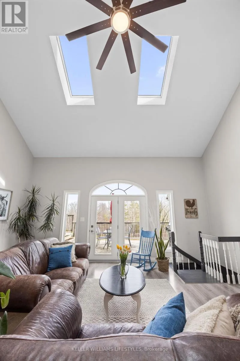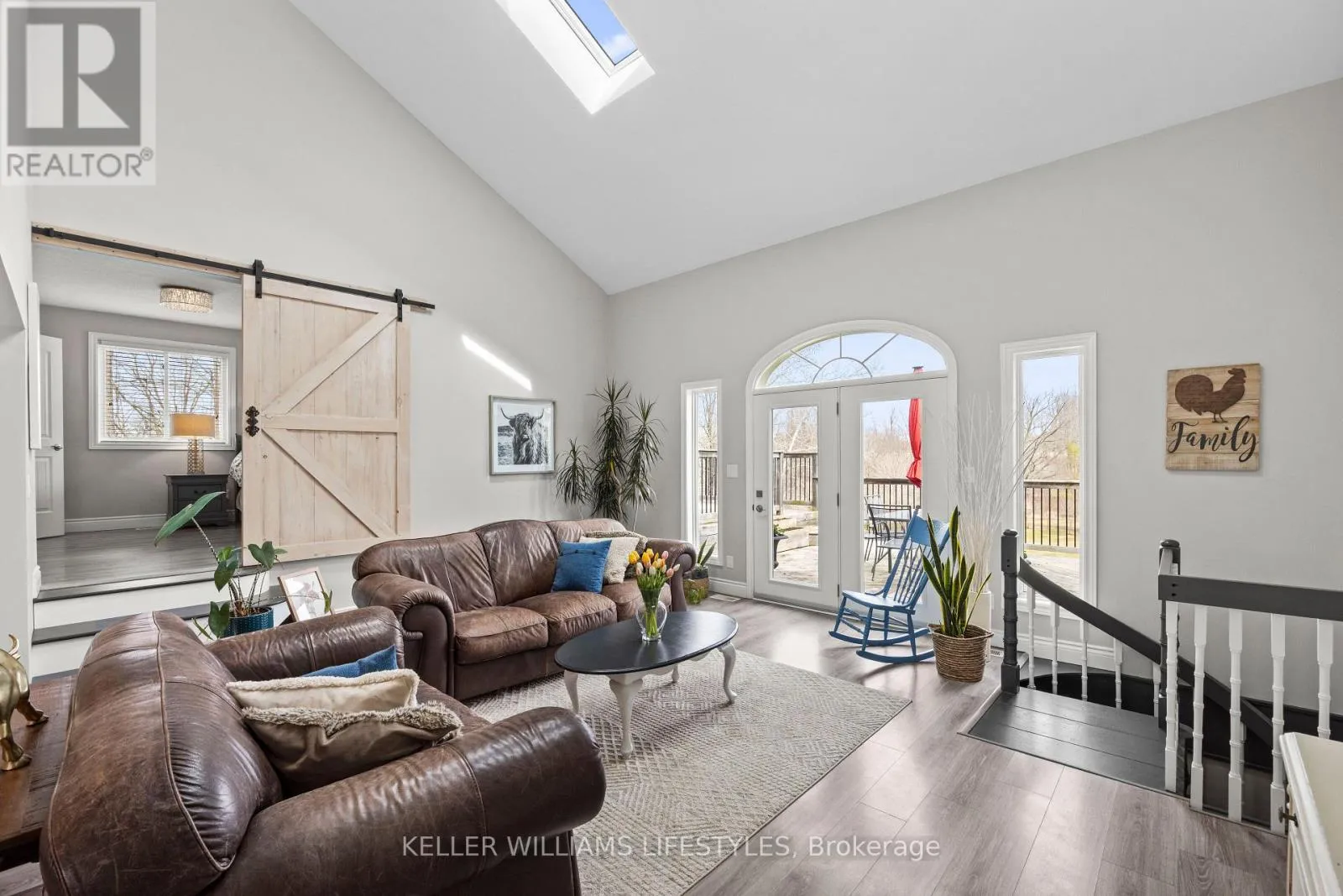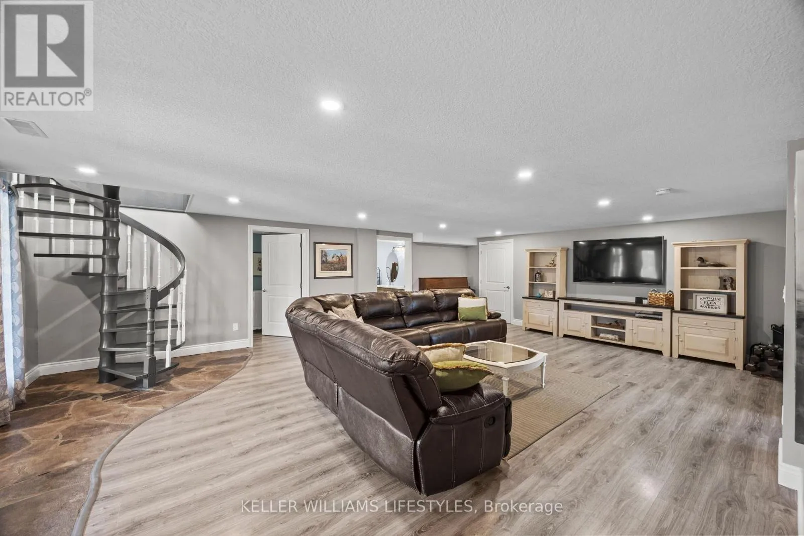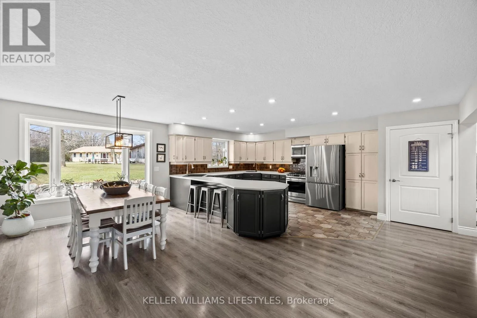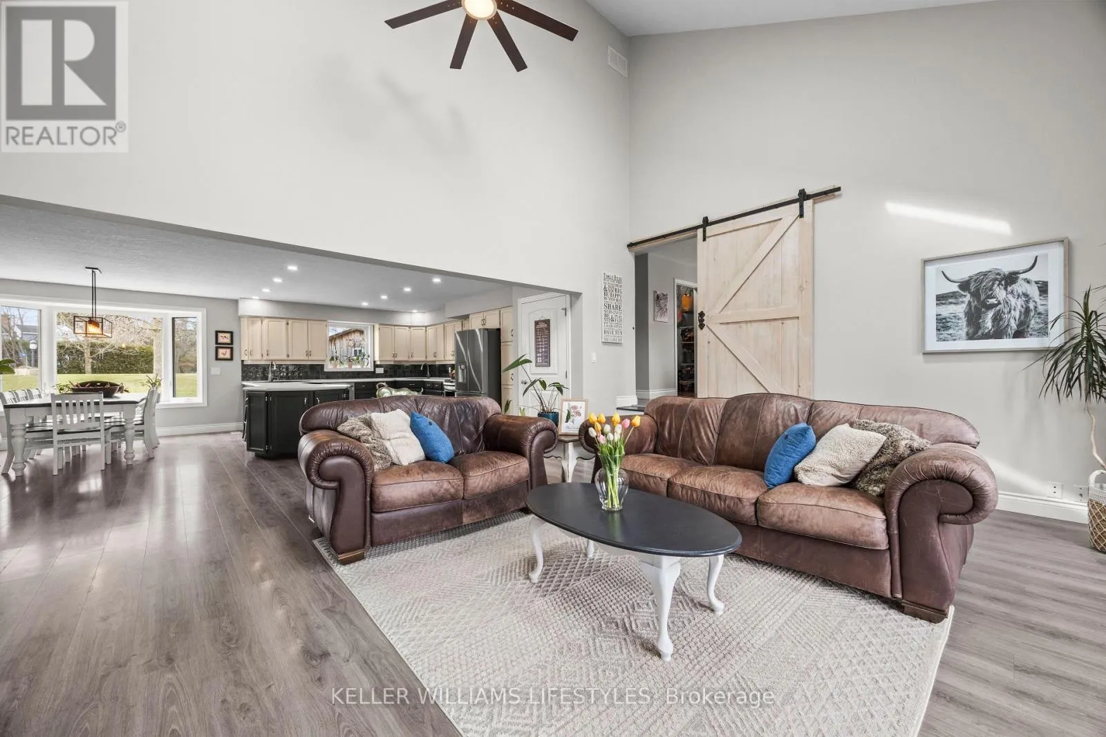 Cross Streets: Queen Street and Alma Street. ** Directions: Nairn Road to Petty Street, turn right at the lights. Turn left onto Queens Ave, take the first right onto Alma Street. Property is at the end of the street. Nestled at the end of a quiet dead-end street in the charming hamlet of Nairn, this private 2.5-acre property offers exceptional peace and tranquility. Enjoy your morning coffee or an evening glass of wine on the expansive back deck or the lower-level covered patio while taking in the serene surroundings. Thoughtfully designed with 3200 sq ft of finished living space, this home features 5 spacious bedrooms, with two conveniently located on the main level and three additional bedrooms on the lower level. The primary suite is a true retreat, complete with a well-appointed 6-piece en-suite featuring a soaker tub and a generous walk-in closet. The heart of the home is an expansive open-concept kitchen, dining, and living area, ideal for both everyday living and entertaining which is enhanced by stunning views of the backyard. Skylights fill the living room with natural light, while a striking spiral staircase leads to the lower level, adding architectural elegance. Enjoy seamless indoor-outdoor living with a walkout to the upper deck from the main living area, as well as a second walkout from the lower-level rec room to the covered patio. Extensively updated in 2017, this home features many significant improvements, including most windows and doors, bathrooms, and HVAC, among others. A heated 2-car garage adds comfort and convenience for year-round use. Outdoors, the beautifully landscaped grounds offer a truly unique lifestyle. A custom-built pond provides enjoyment in every season, perfect for summer swimming and winter skating, while garden boxes and chicken coops add to the property's charm. Backing onto open space and a small stream, the setting creates a private, picturesque retreat just minutes from everyday amenities. This home is walking distance to the elementary school, local park and a short 5 minute drive to Ailsa Craig and 20 minutes to London. This is a rare opportunity to own a one-of-a-kind home where comfort, style, and nature come together. (id:27476)