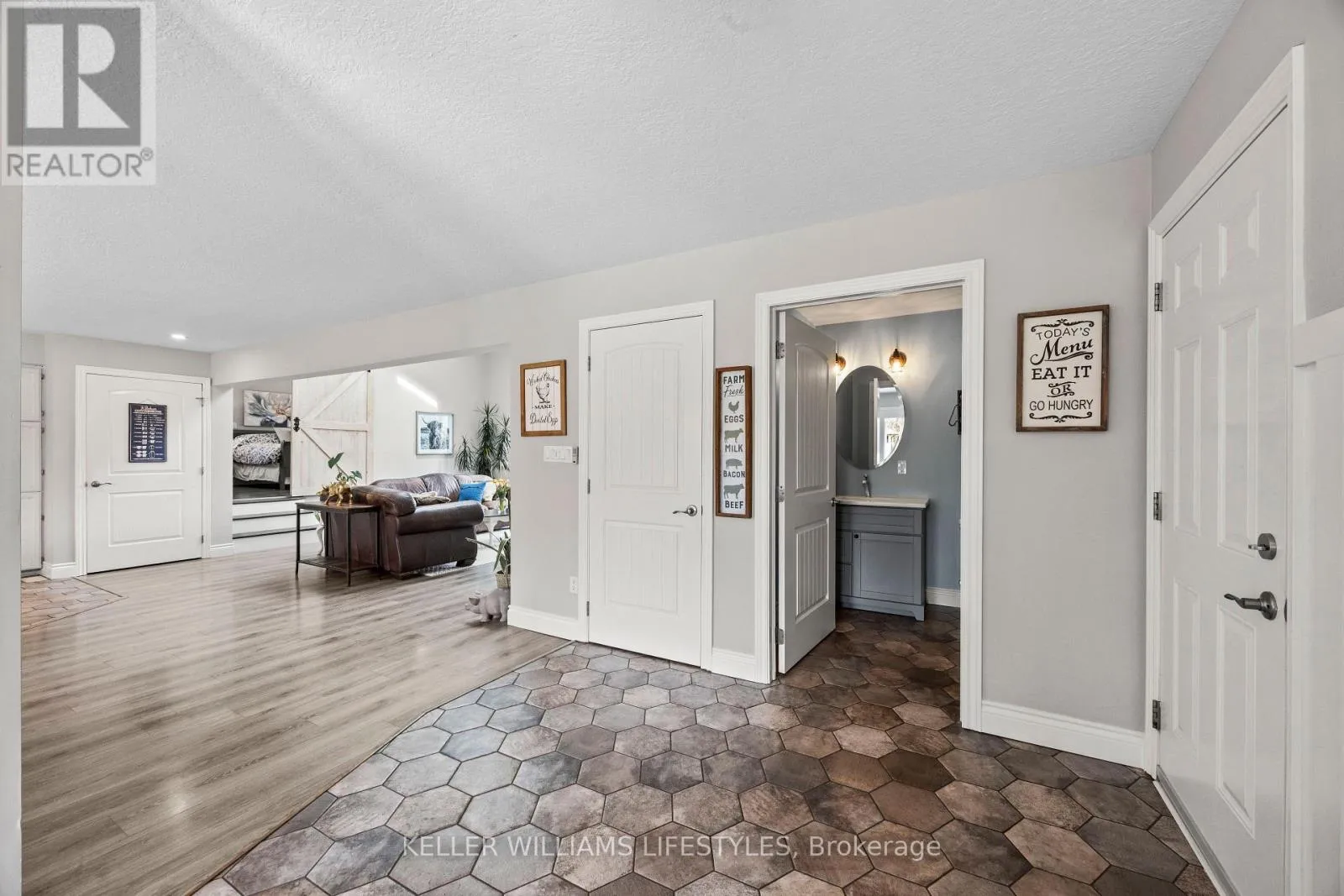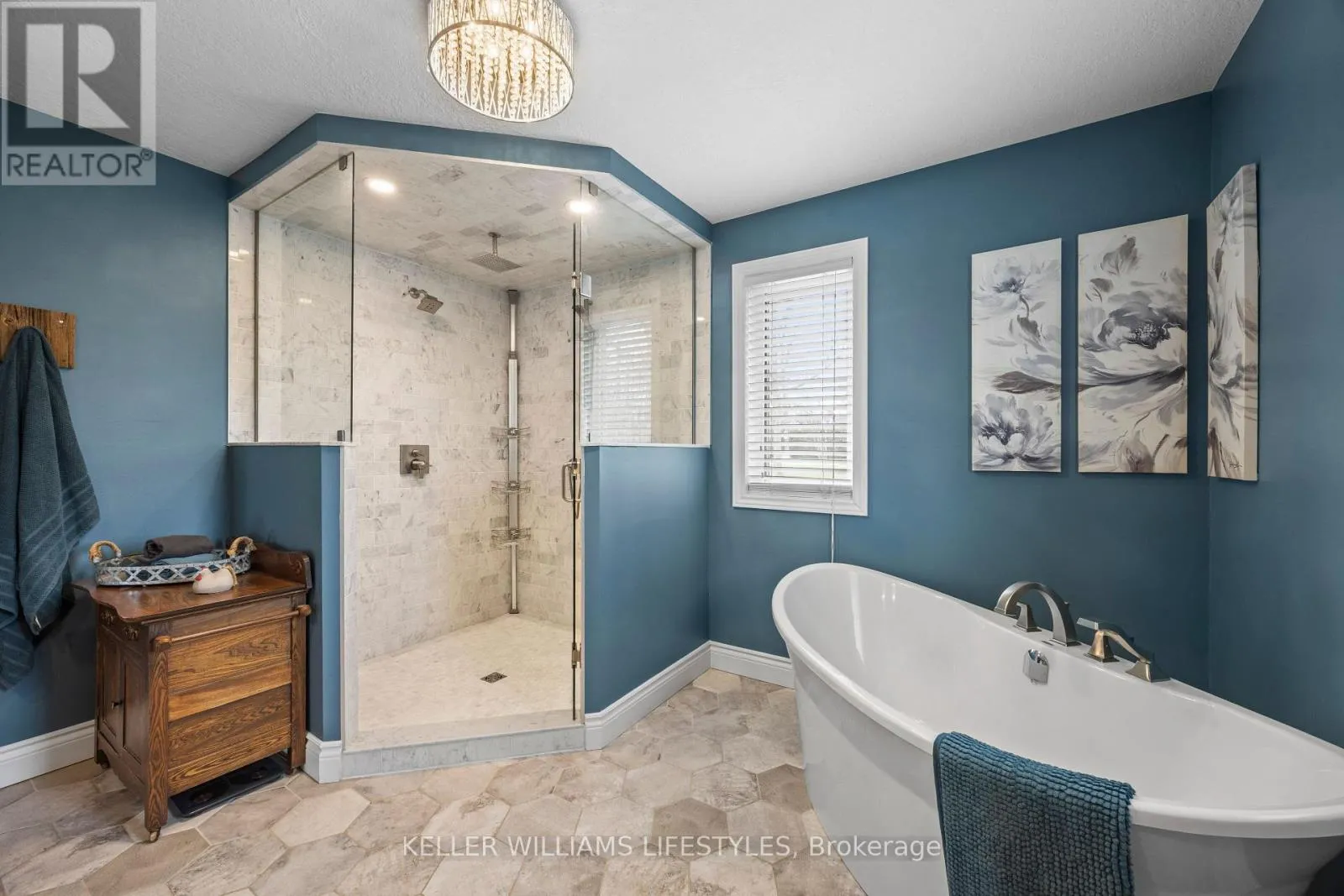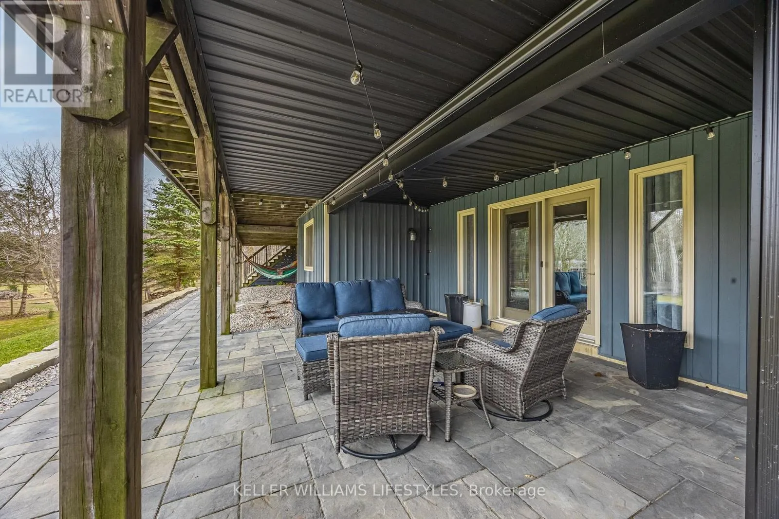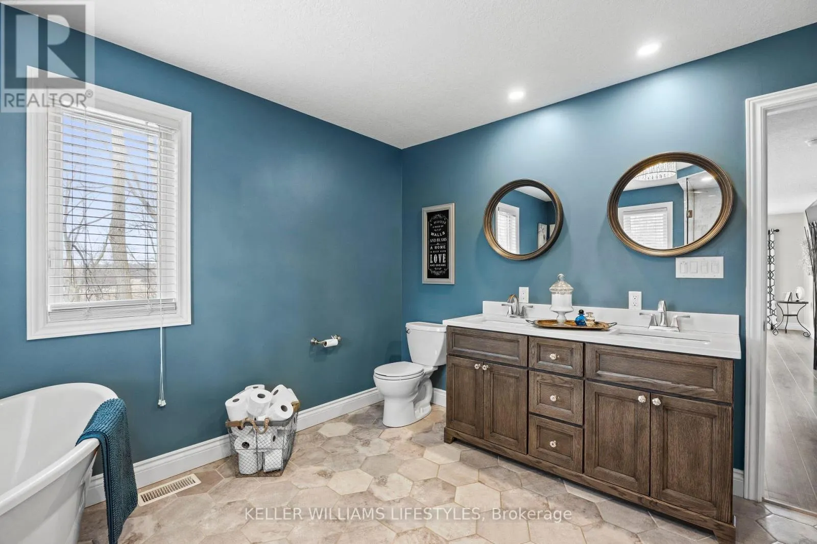 Cross Streets: Queen Street and Alma Street. ** Directions: Nairn Road to Petty Street, turn right at the lights. Turn left onto Queens Ave, take the first right onto Alma Street. Property is at the end of the street. Nestled at the end of a quiet dead-end street in the charming hamlet of Nairn, this private 2.5-acre property offers exceptional peace and tranquility. Enjoy your morning coffee or an evening glass of wine on the expansive back deck or the lower-level covered patio while taking in the serene surroundings. Thoughtfully designed with 3200 sq ft of finished living space, this home features 5 spacious bedrooms, with two conveniently located on the main level and three additional bedrooms on the lower level. The primary suite is a true retreat, complete with a well-appointed 6-piece en-suite featuring a soaker tub and a generous walk-in closet. The heart of the home is an expansive open-concept kitchen, dining, and living area, ideal for both everyday living and entertaining which is enhanced by stunning views of the backyard. Skylights fill the living room with natural light, while a striking spiral staircase leads to the lower level, adding architectural elegance. Enjoy seamless indoor-outdoor living with a walkout to the upper deck from the main living area, as well as a second walkout from the lower-level rec room to the covered patio. Extensively updated in 2017, this home features many significant improvements, including most windows and doors, bathrooms, and HVAC, among others. A heated 2-car garage adds comfort and convenience for year-round use. Outdoors, the beautifully landscaped grounds offer a truly unique lifestyle. A custom-built pond provides enjoyment in every season, perfect for summer swimming and winter skating, while garden boxes and chicken coops add to the property's charm. Backing onto open space and a small stream, the setting creates a private, picturesque retreat just minutes from everyday amenities. This home is walking distance to the elementary school, local park and a short 5 minute drive to Ailsa Craig and 20 minutes to London. This is a rare opportunity to own a one-of-a-kind home where comfort, style, and nature come together. (id:27476)