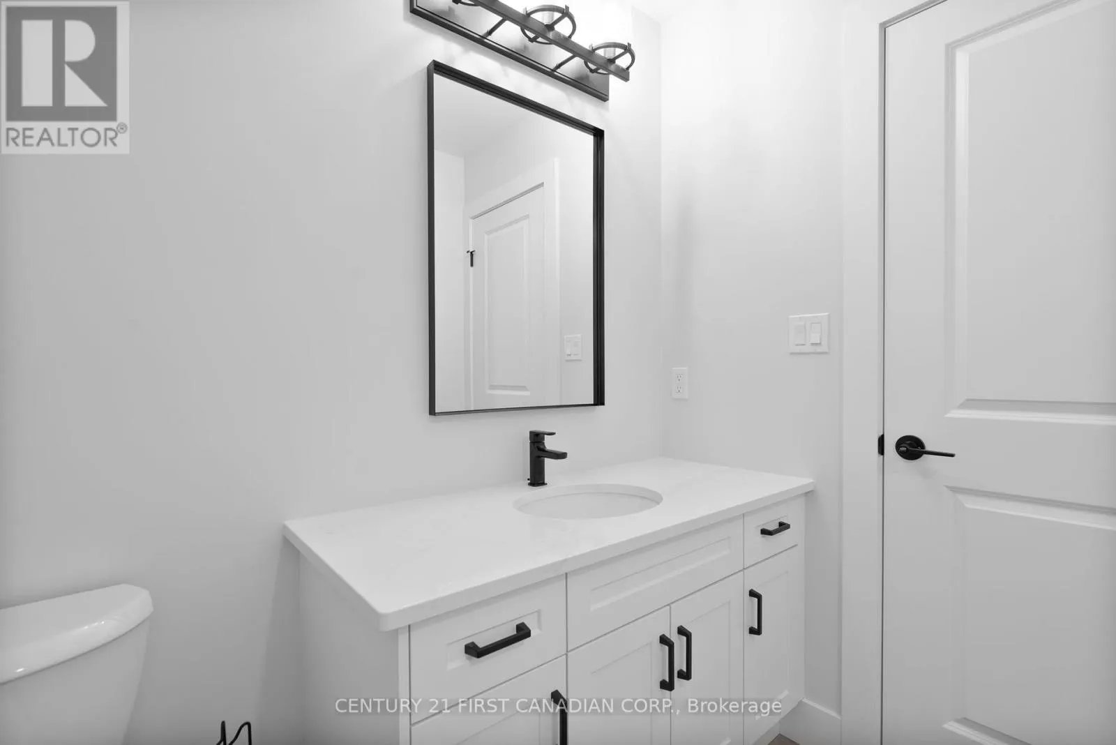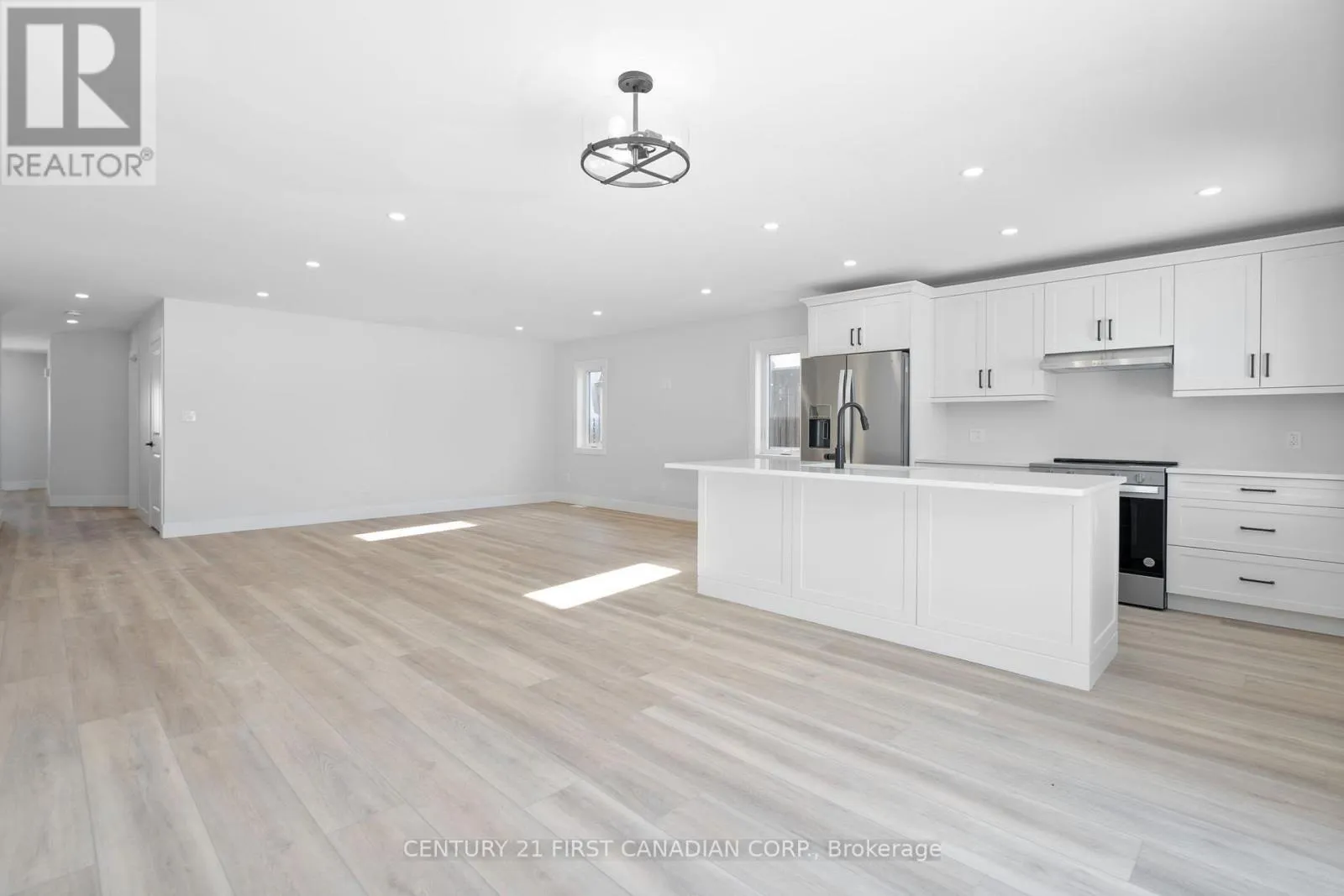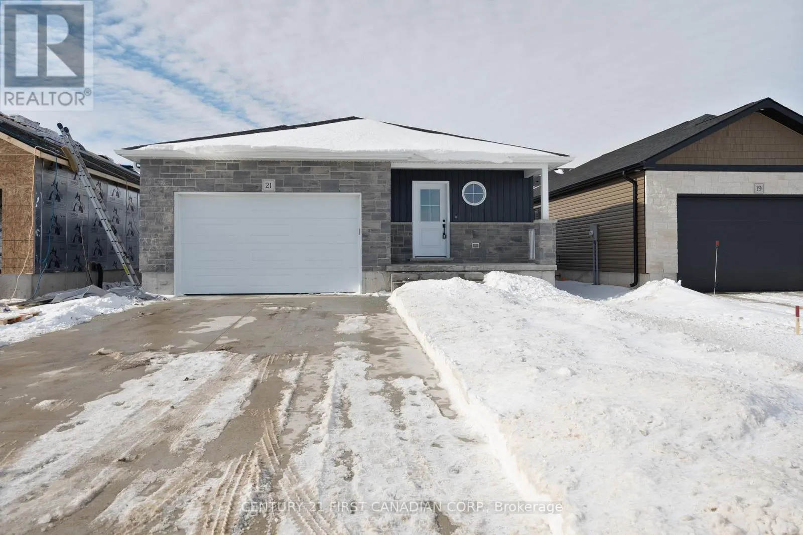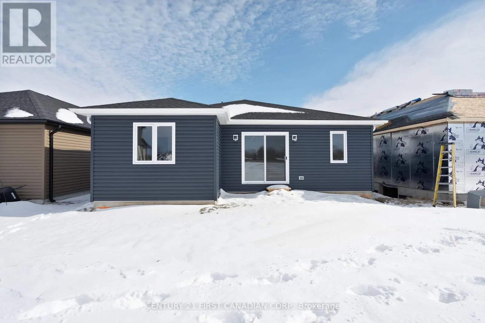 Cross Streets: Atkinson St. ** Directions: Travelling south on Queen St from Elginfield Rd, turn left onto Atkinson St. Turn right onto Sheldabren St. Property is on the right. (Lot 45). NEW GOVERNMENT REBATES - TO BE BUILT - Welcome to this beautifully built 1,585 sq ft bungalow by Robinson Carpentry, offering comfort, quality, and easy one-level living. Featuring 3 bedrooms and 2 full baths, the bright, open layout is perfect for everyday living and entertaining. The kitchen includes custom cabinetry, quartz countertops, and ample prep space, with luxury vinyl plank flooring throughout. The primary suite offers a walk-in closet and 4-piece ensuite, while two additional bedrooms provide flexibility for guests or a home office. Built with quality finishes, including 40-year shingles, a fully insulated garage, 200-amp service, and mudroom access. Enjoy the covered front porch, a 5-piece appliance package, and an owned on-demand hot water tank for added efficiency and savings. Perfect for first-time buyers or those looking to simplify with low-maintenance living. Ausable Bluffs is only 20 minutes away from north London, 15 minutes to east of Strathroy, and 25 minutes to the beautiful shores of Lake Huron. *Please note that pictures are from a previously built home & for illustration purposes only. Some finishes and/or upgrades shown may not be included in base model specs. Taxes & Assessed Value yet to be determined. List price reflects the anticipated benefit of a proposed Government HST rebate (not yet enacted). HST included with all applicable rebates assigned to the Builder. Price is contingent on Buyer eligibility and rebate implementation. (id:27476)