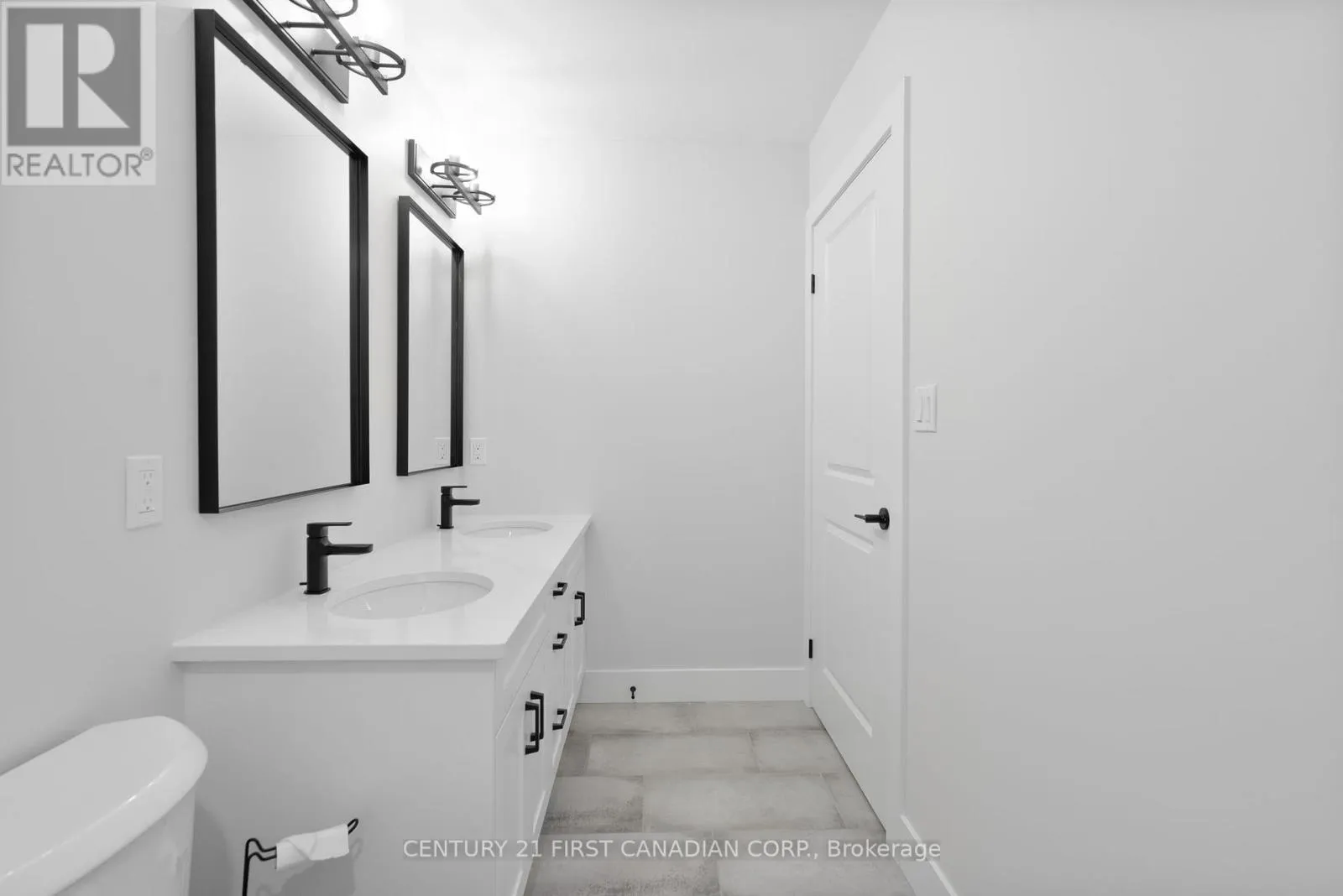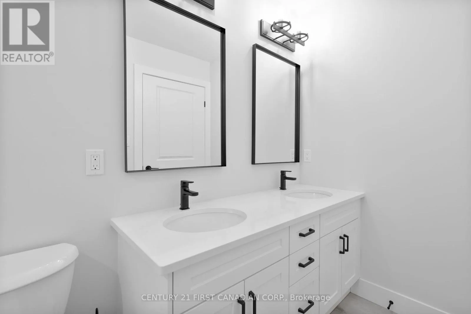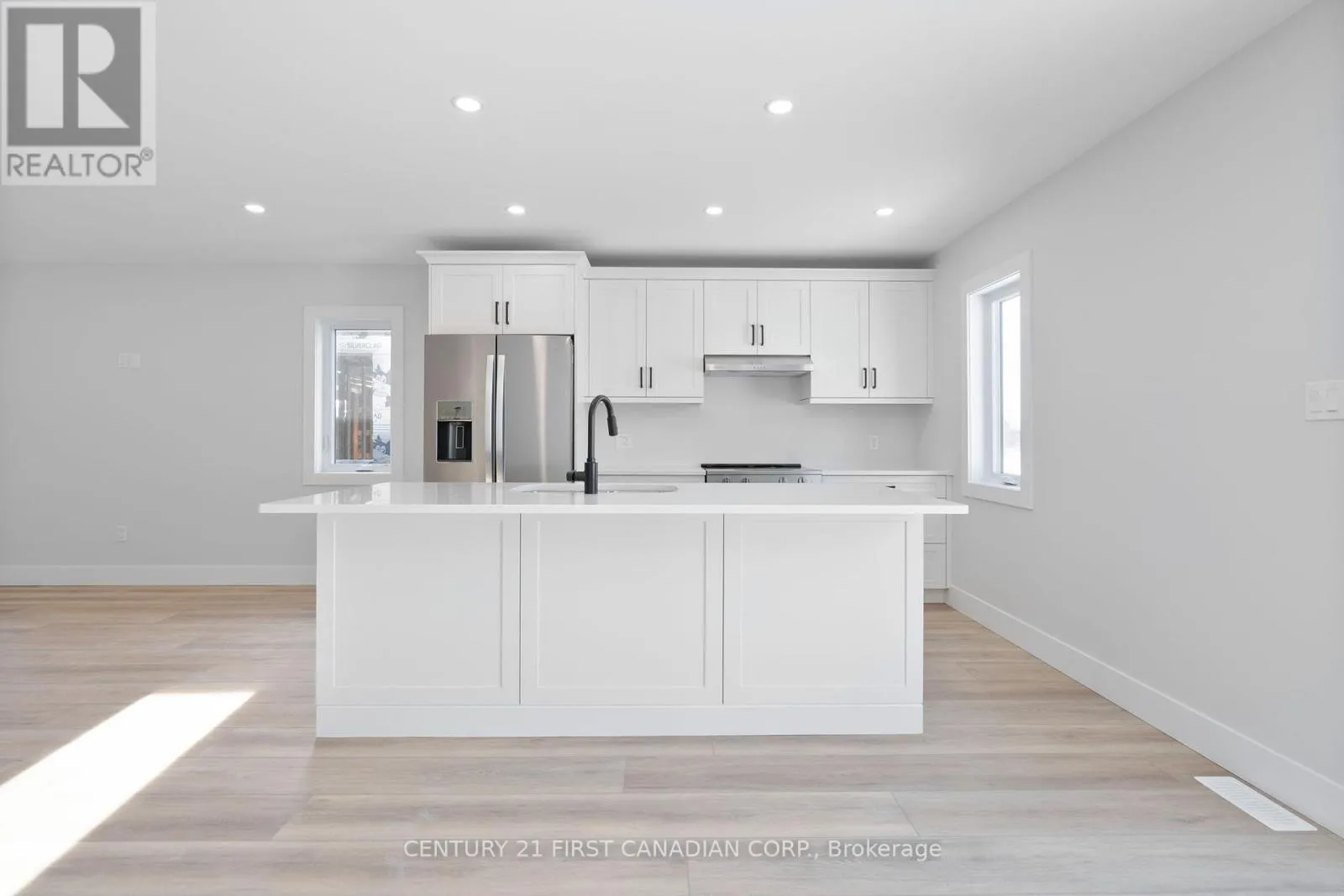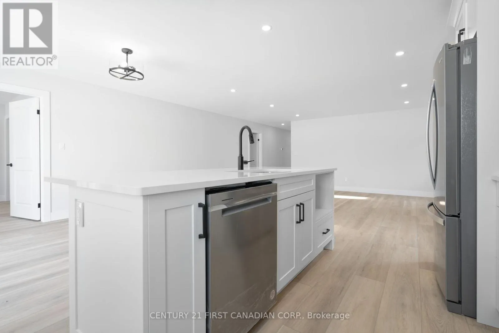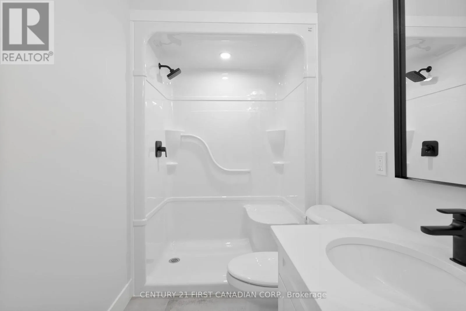 Cross Streets: Atkinson St. ** Directions: Travelling south on Queen St from Elginfield Rd, turn left onto Atkinson St. Turn right onto Sheldabren St. Property is on the right. (Lot 45). NEW GOVERNMENT REBATES - TO BE BUILT - Welcome to this beautifully built 1,585 sq ft bungalow by Robinson Carpentry, offering comfort, quality, and easy one-level living. Featuring 3 bedrooms and 2 full baths, the bright, open layout is perfect for everyday living and entertaining. The kitchen includes custom cabinetry, quartz countertops, and ample prep space, with luxury vinyl plank flooring throughout. The primary suite offers a walk-in closet and 4-piece ensuite, while two additional bedrooms provide flexibility for guests or a home office. Built with quality finishes, including 40-year shingles, a fully insulated garage, 200-amp service, and mudroom access. Enjoy the covered front porch, a 5-piece appliance package, and an owned on-demand hot water tank for added efficiency and savings. Perfect for first-time buyers or those looking to simplify with low-maintenance living. Ausable Bluffs is only 20 minutes away from north London, 15 minutes to east of Strathroy, and 25 minutes to the beautiful shores of Lake Huron. *Please note that pictures are from a previously built home & for illustration purposes only. Some finishes and/or upgrades shown may not be included in base model specs. Taxes & Assessed Value yet to be determined. List price reflects the anticipated benefit of a proposed Government HST rebate (not yet enacted). HST included with all applicable rebates assigned to the Builder. Price is contingent on Buyer eligibility and rebate implementation. (id:27476)