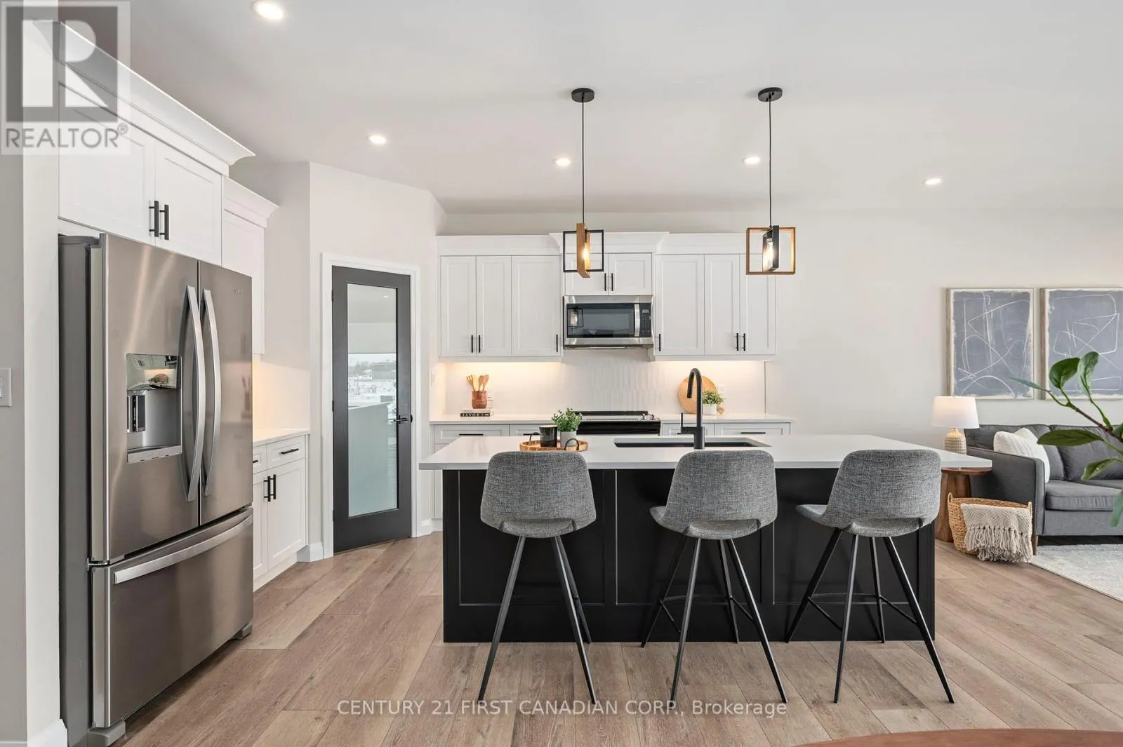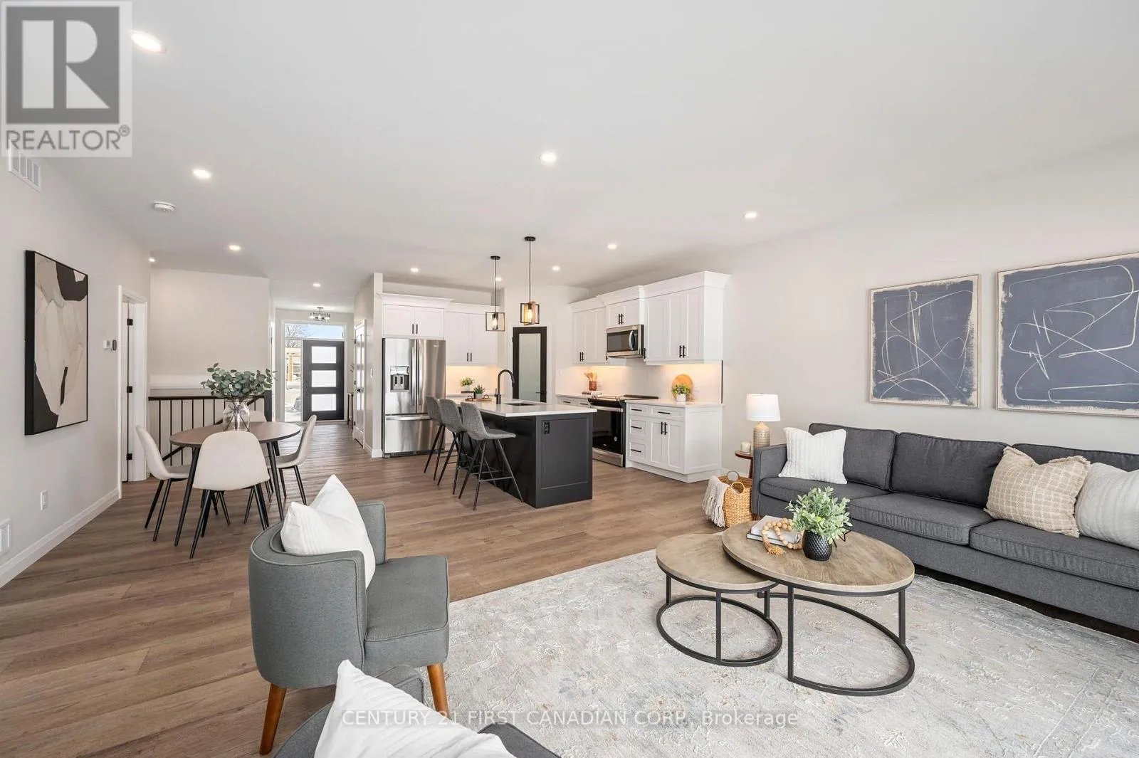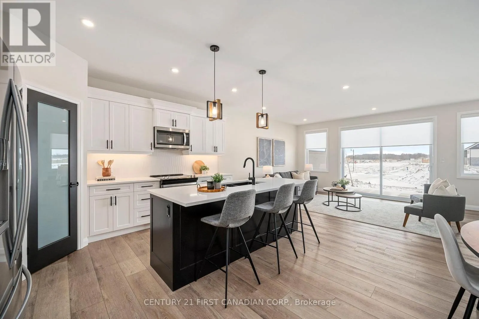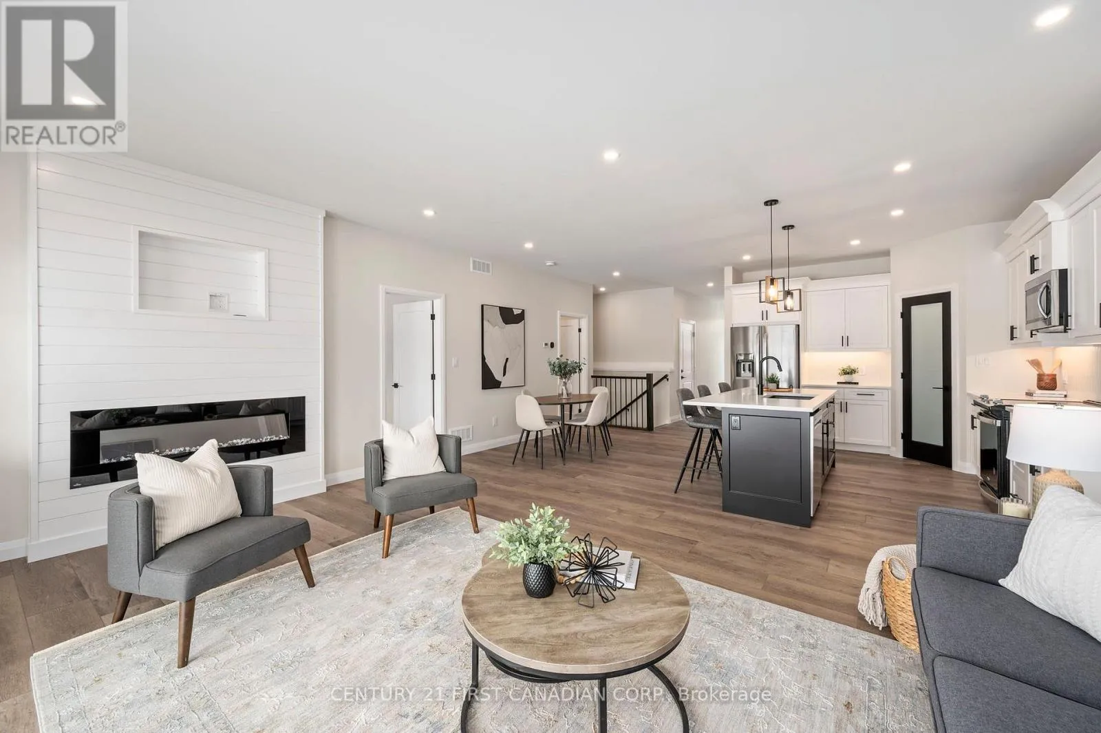Cross Streets: Hamilton St. ** Directions: Travelling south on Queen St, turn left onto Hamilton St. Turn left onto Postma Cres. Past the curve, enter 32 Postma. Unit 10 is straight ahead. Welcome to this exceptional interior-unit bungalow condo, where refined craftsmanship and modern elegance come together in the heart of Ailsa Craig. Thoughtfully designed with a focus on quality and detail, this residence offers sophisticated single-floor living with a seamless open-concept layout.Featuring 3 generously sized bedrooms and 3 beautifully appointed bathrooms, this home delivers both comfort and elevated design. The fully finished lower level extends the living space, offering a versatile retreat ideal for entertaining, guests, or a private lounge.At the heart of the home, the designer kitchen showcases premium quartz countertops, rich wood cabinetry. Where style and function come together to create a truly impressive culinary space. Throughout, luxury vinyl flooring provides a durable yet upscale finish, complementing the home's cohesive and polished aesthetic.Every element of this residence has been carefully curated to offer a balance of luxury, comfort, and low-maintenance living-an outstanding opportunity to experience upscale condo living in one of Ailsa Craig's most desirable communities.Taxes and assessed value yet to be determined. List price reflects the anticipated benefit of a proposed Government HST rebate (not yet enacted). HST included with all applicable rebates assigned to the Builder. Price is contingent on Buyer eligibility and rebate implementation. (id:27476)
