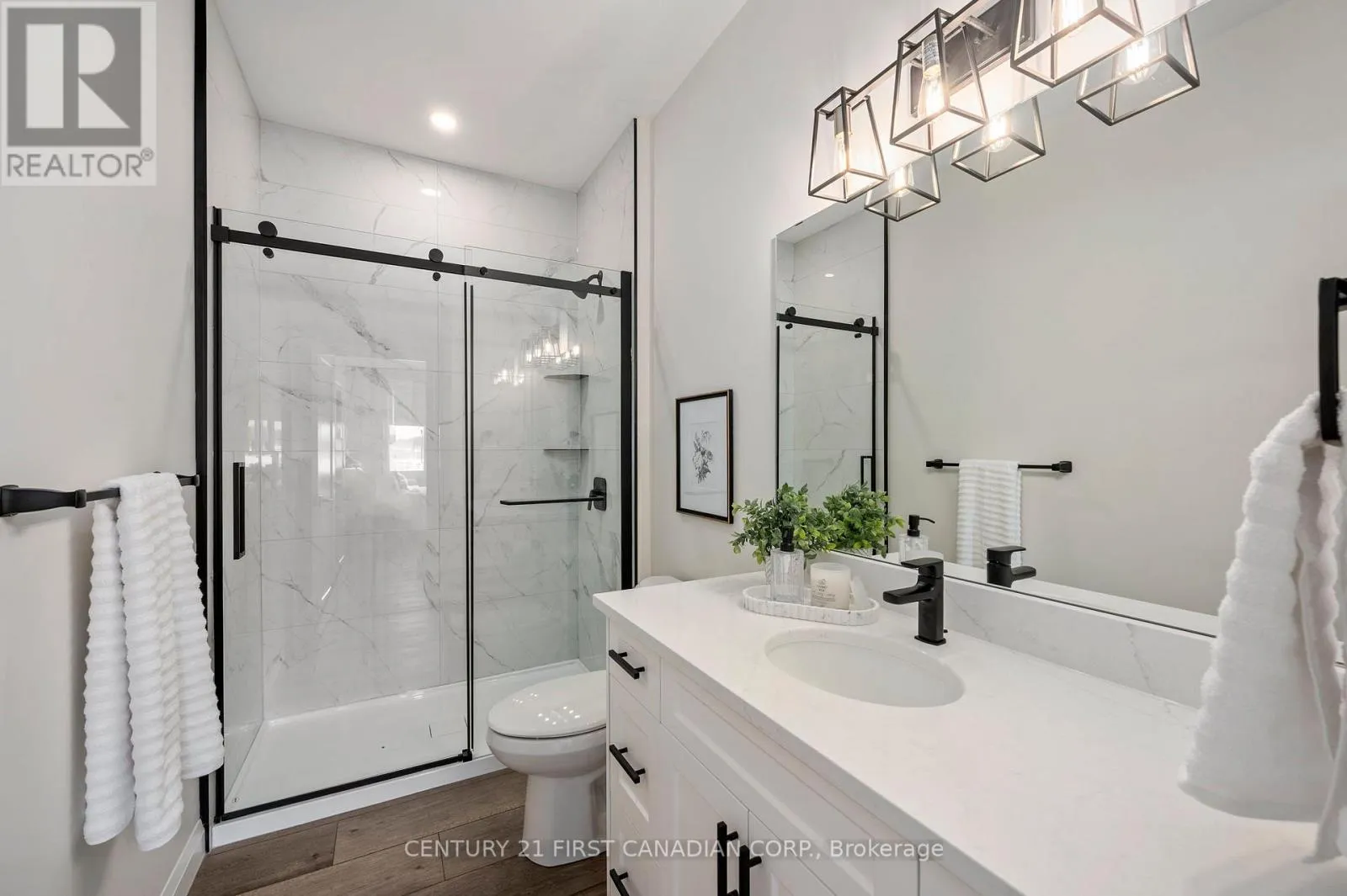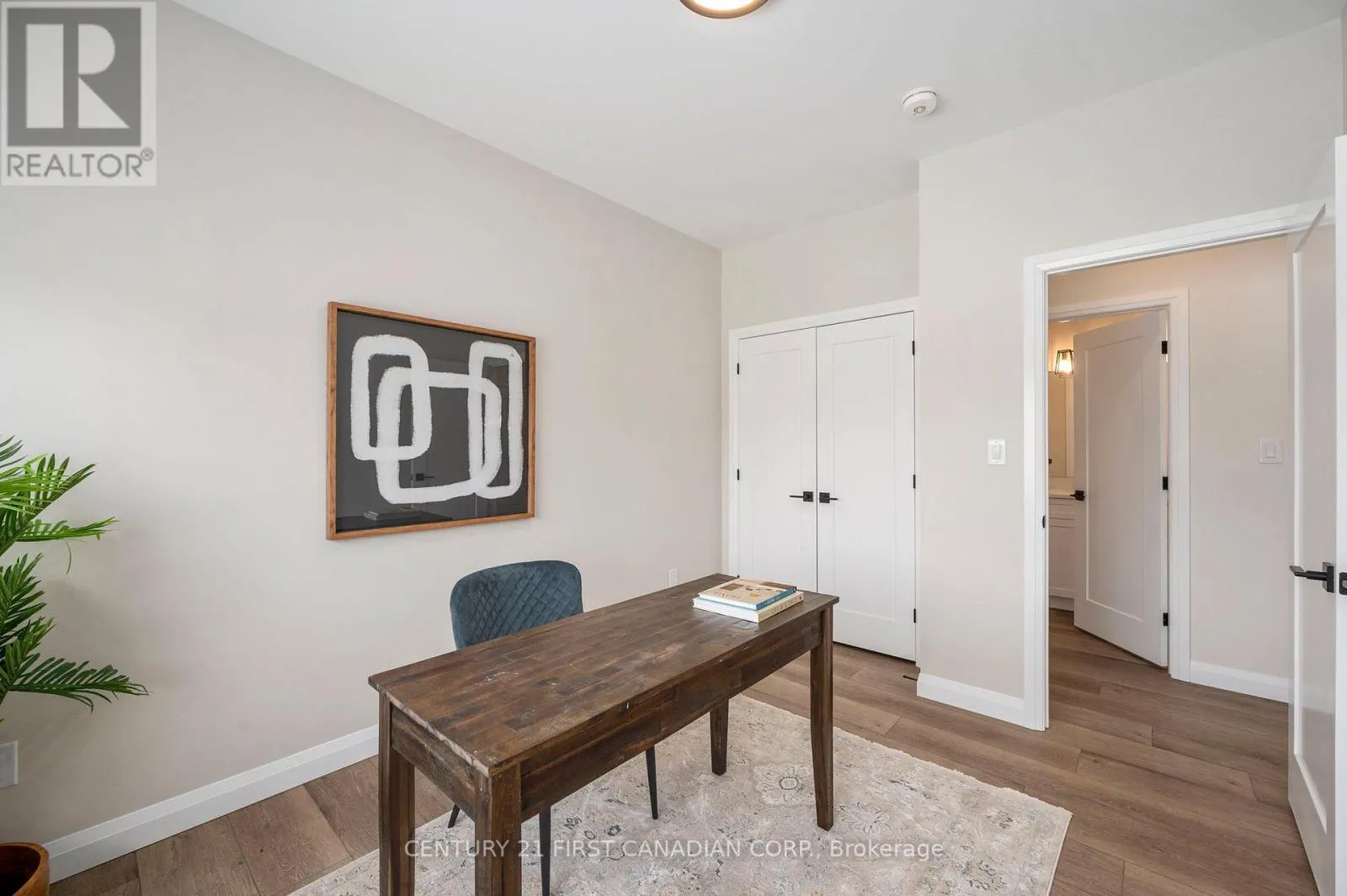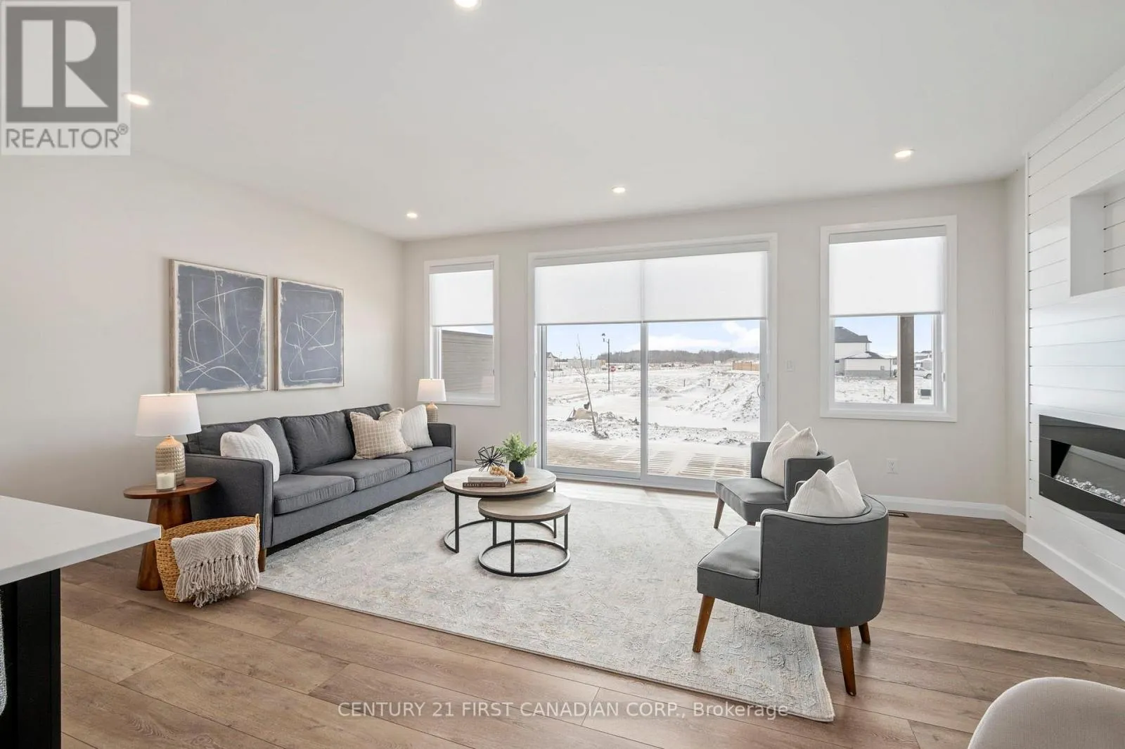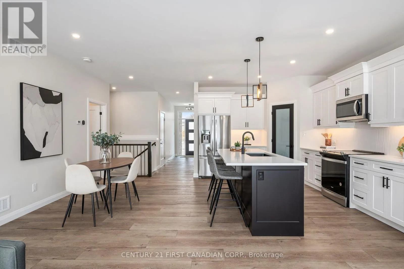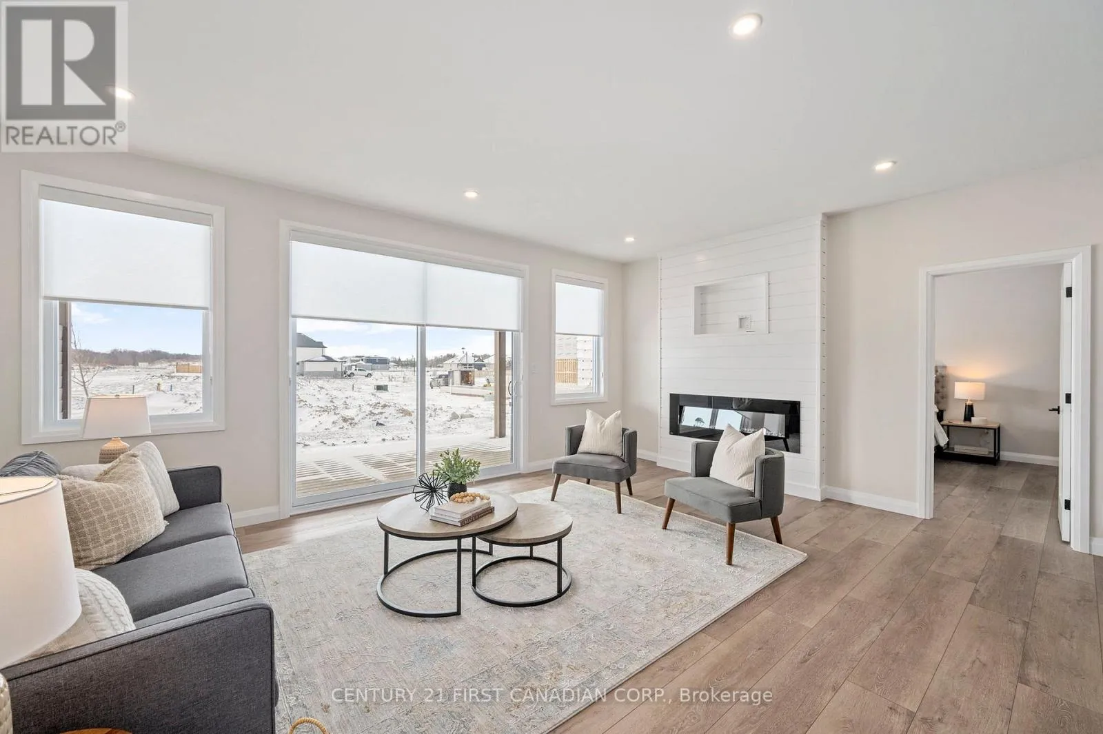 Cross Streets: Hamilton St. ** Directions: Travelling south on Queen St, turn left onto Hamilton St. Turn left onto Postma Cres. Past the curve, enter 32 Postma. Unit 10 is straight ahead. Welcome to this exceptional interior-unit bungalow condo, where refined craftsmanship and modern elegance come together in the heart of Ailsa Craig. Thoughtfully designed with a focus on quality and detail, this residence offers sophisticated single-floor living with a seamless open-concept layout.Featuring 3 generously sized bedrooms and 3 beautifully appointed bathrooms, this home delivers both comfort and elevated design. The fully finished lower level extends the living space, offering a versatile retreat ideal for entertaining, guests, or a private lounge.At the heart of the home, the designer kitchen showcases premium quartz countertops, rich wood cabinetry. Where style and function come together to create a truly impressive culinary space. Throughout, luxury vinyl flooring provides a durable yet upscale finish, complementing the home's cohesive and polished aesthetic.Every element of this residence has been carefully curated to offer a balance of luxury, comfort, and low-maintenance living-an outstanding opportunity to experience upscale condo living in one of Ailsa Craig's most desirable communities.Taxes and assessed value yet to be determined. List price reflects the anticipated benefit of a proposed Government HST rebate (not yet enacted). HST included with all applicable rebates assigned to the Builder. Price is contingent on Buyer eligibility and rebate implementation. (id:27476)