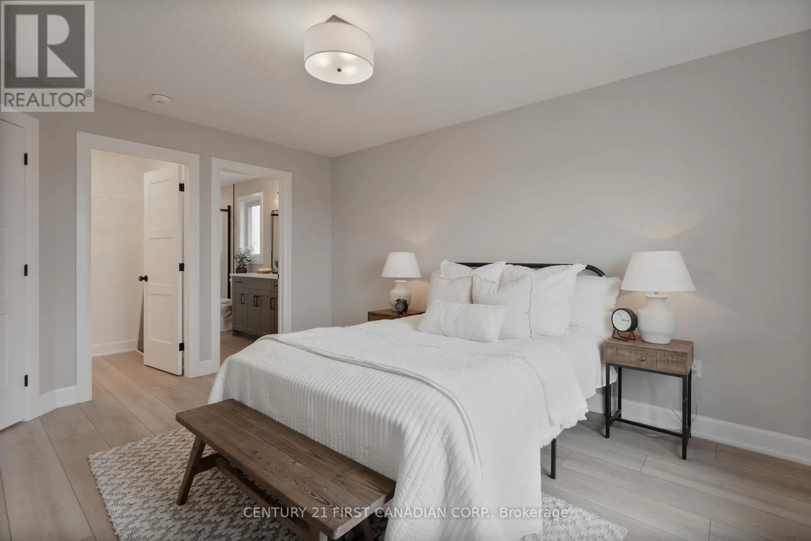 Cross Streets: Queen St. ** Directions: Travelling north on Queen St, turn right onto Hamilton St. Property on the right prior to Postma Cres. NEW GOVERNMENT REBATES - MOVE IN READY - Appliances Included - The James Model by Colden Homes is a beautifully crafted 1,350 sq ft bungalow that blends style and function, offering the perfect balance of elegance and practicality for those seeking a comfortable, low-maintenance lifestyle. Whether you're downsizing or starting a new chapter, this home is designed to meet your needs while creating a warm, welcoming environment. The open-concept main floor features a generous great room that flows seamlessly into the dinette and kitchen, creating an ideal space for both everyday living and entertaining. The kitchen is spacious and thoughtfully designed, complete with a large island that comfortably seats four, ample countertop space for meal prep, and high-quality cabinetry that extends to the ceiling-making it the true heart of the home. The primary suite offers a peaceful retreat with a walk-in closet and a well-appointed 3-piece ensuite. A second bedroom, full bathroom, and convenient main floor laundry provide added comfort and functionality for family or guests. The lower level extends your living space with a finished rec room, a third bedroom, and a 4-piece bathroom-perfect for guests, a growing family, or a private retreat-while still offering a large unfinished storage area for future use. Upgrades include a tiled ensuite shower, luxury vinyl plank flooring in the bedrooms, extended-height kitchen cabinetry, and upgraded board and batten exterior detailing and a finished basement. Located in Ausable Bluffs, you're just 20 minutes to north London, 15 minutes to Strathroy, and 25 minutes to the beautiful shores of Lake Huron. List price reflects the anticipated benefit of a proposed Government HST rebate (not yet enacted). HST included with all applicable rebates assigned to the Builder. (id:27476)