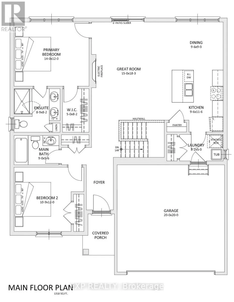 Parkhill Main St/Merritt Crt Introducing the newest bungalow by XO Homes, offering 1,318 sq. ft. of thoughtfully designed main-floor living. This home combines comfort, convenience, and contemporary style - perfect for anyone looking to simplify without compromise.Step inside to find an inviting open-concept layout that flows seamlessly from the kitchen to the dining area and great room. The kitchen features a centre island, walk-in pantry, and direct access to the mudroom and double car garage - a practical touch for unloading groceries with ease.The primary bedroom is tucked privately at the back of the home and includes a spacious 3-piece ensuite with a walk-in shower, double vanity, and linen closet for added storage. A second bedroom sits at the front of the home, offering the perfect space for guests or a bright home office with a view. Another full bathroom completes this well-designed layout.Built with XO Homes' signature quality and attention to detail, this bungalow perfectly balances functionality and style - a home you'll love for years to come. A limited number of ravine lots remain, offering added privacy and natural views. Please note, some lots are subject to premiums based on location and size. (id:27476)