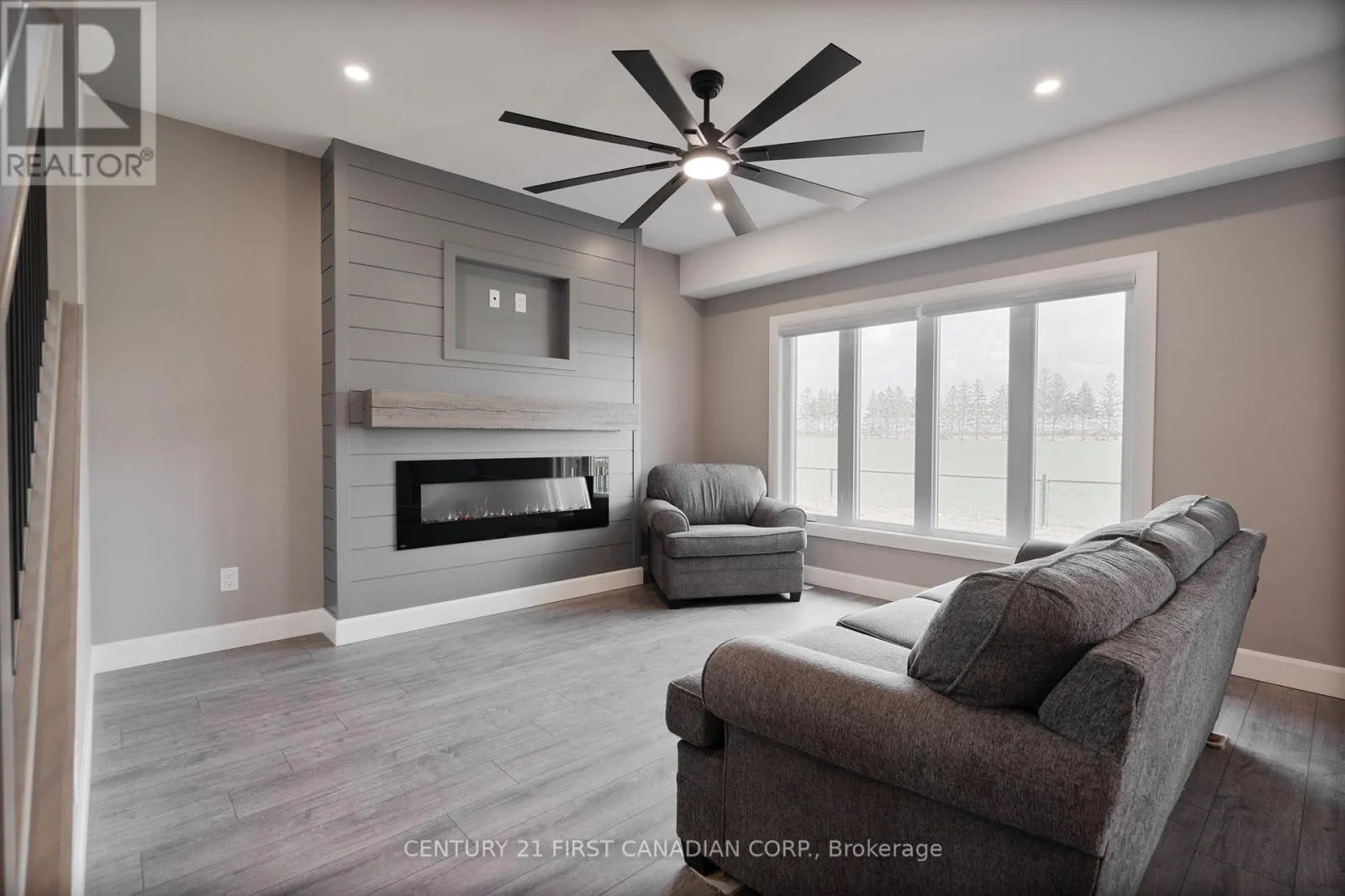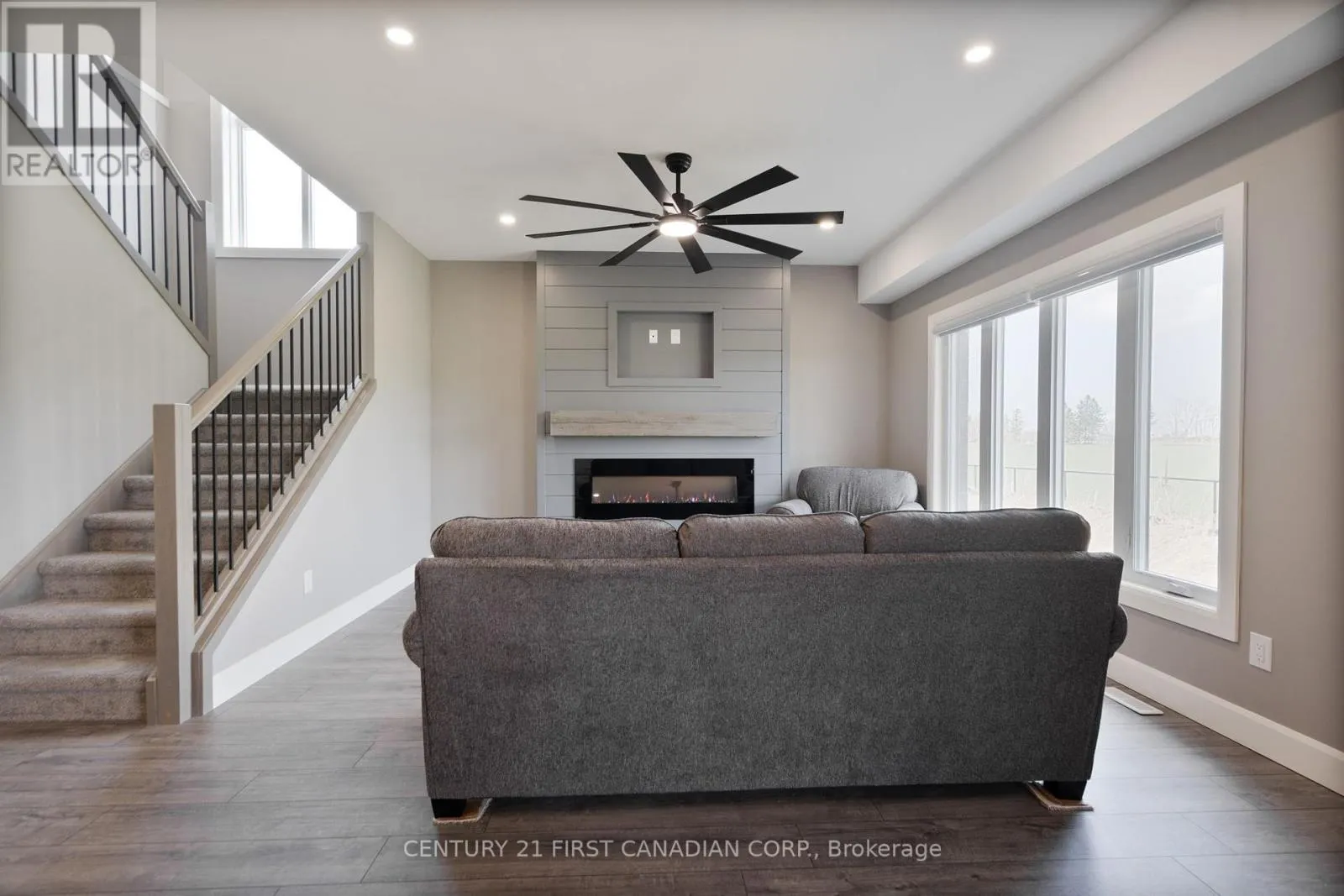 Cross Streets: Atkinson St. ** Directions: Travelling north on Queen St, turn right onto Atkinson St. Follow to the end, turning right onto Sheldabren St. Property is on the left. Welcome to 110 Sheldabren Street, this beautifully appointed storey home in the growing community of Ailsa Craig, offers exceptional curb appeal and set on a premium 50 ft lot backing onto open farmland with no rear neighbours. From the moment you step into the large, welcoming foyer, you'll appreciate the thoughtful design and quality finishes throughout. The open-concept main floor features 9 ft ceilings, expansive windows that flood the space with natural light, and a warm, inviting family room complete with an electric fireplace. The kitchen is both stylish and functional, showcasing granite countertops, a pantry, and seamless flow for everyday living and entertaining. A convenient powder room and laundry/mudroom complete the main level. Upstairs offers a versatile loft space-perfect for a home office, reading nook, or additional living area-along with two well-sized secondary bedrooms and a full 4-piece bathroom. The spacious primary suite is a true retreat, featuring a walk-in closet and a beautifully finished ensuite with an impressive double shower. The fully finished basement adds valuable living space with a rec room, bedroom, and full bathroom-ideal for guests, teens, or extended family. Enjoy outdoor living with a covered back deck, concrete pad, and uninterrupted country views. The impressive 3-car garage with tandem access to the backyard provides incredible flexibility for storage, hobbies, or easy backyard access. A perfect blend of style, space, and setting. You're just 20 minutes to north London, 15 minutes to Strathroy, and 25 minutes to the beautiful shores of Lake Huron. (id:27476)