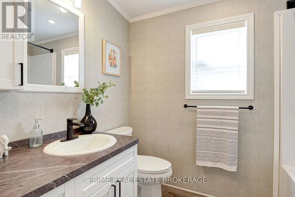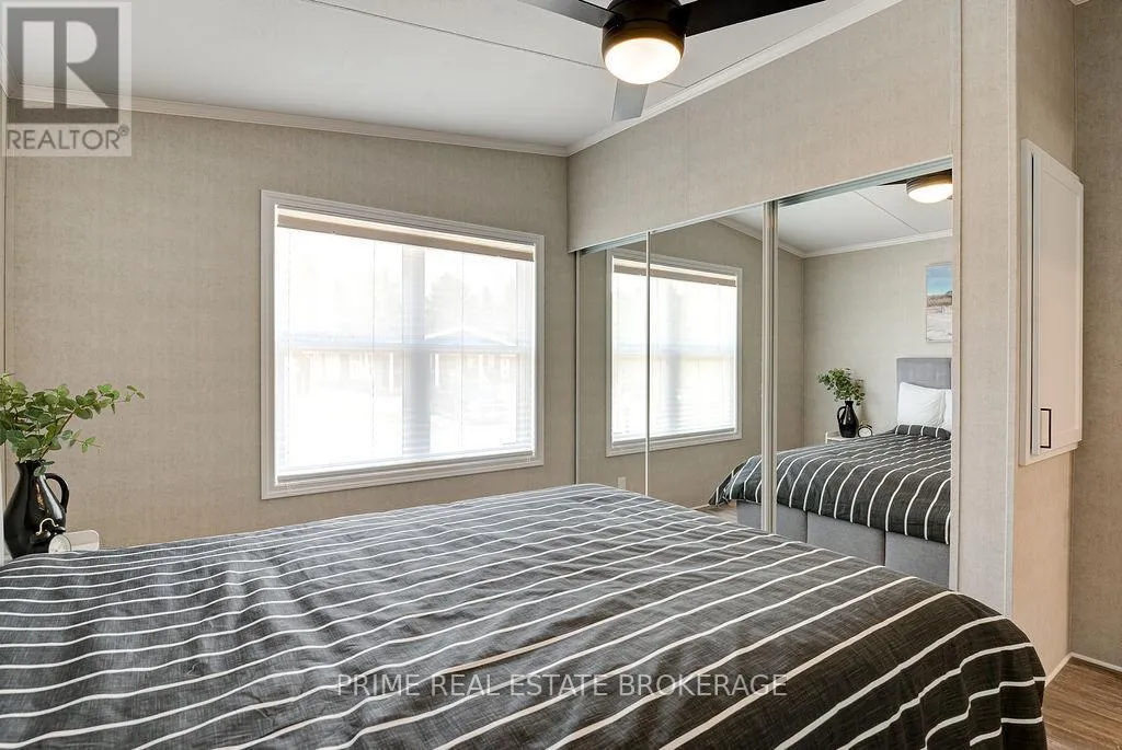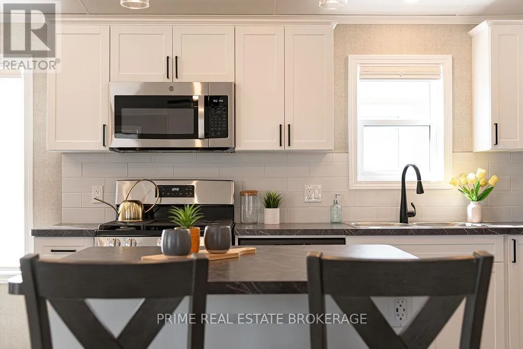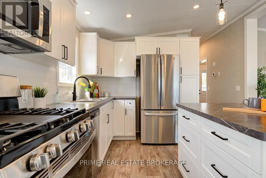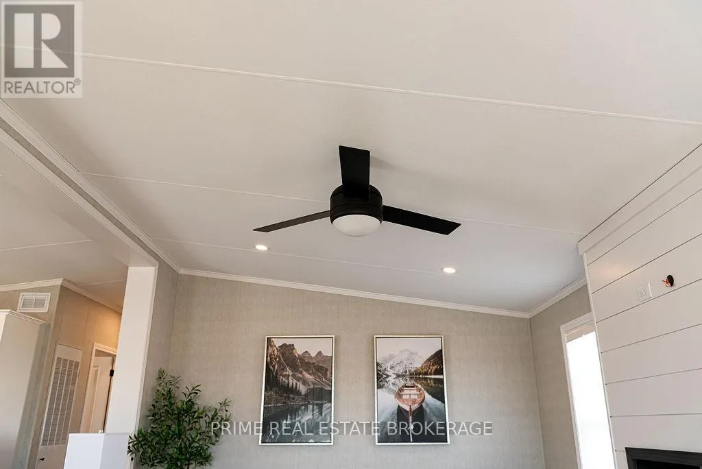 Head east out of Listowel on Hwy/Line 86. The Village is on the right. Turn into the Village, left at\r\nFairview Cres and follow until you can turn left on Meadowview Drive. Property is on the left. An exceptional Canadian custom-built Northlander manufactured home combines functionality and style on a newly developed lot in this well-maintained community,The Village, just east of Listowel. A 12' x 12' front porch provides opportunities to relax and enjoy the view in this 2 bedroom, 1 bathroom home, with a separate laundry room with a closet for additional storage. An open concept dining, kitchen and living area is illuminated with patio doors, windows and contemporary lighting.The kitchen boasts stunning cabinetry, stainless GE steel appliances, ceramic tile backsplash and an island for extra seating. A spacious living area with a beautiful built in cabinet showcases a fireplace, perfect for cozy winter evenings. Outdoors, there are trails for walking and paved streets throughout the park. The Village lifestyle includes a clubhouse on the premises which provides many social activities, while North Perth/ Listowel areas offers great shopping, golf, curling, a new community arena, delicious dining and cultural experiences. This is carefree, fine living at its best! (NOTE: Land is leased, modular home is owned. Utilize the owner's recommended mortgage specialist if financing is needed.) Live a life of leisure in this friendly, well-maintained community in North Perth's premier park,The Village. Ask about rent on the land lease promotion between now and November 15, 2025. (id:27476)