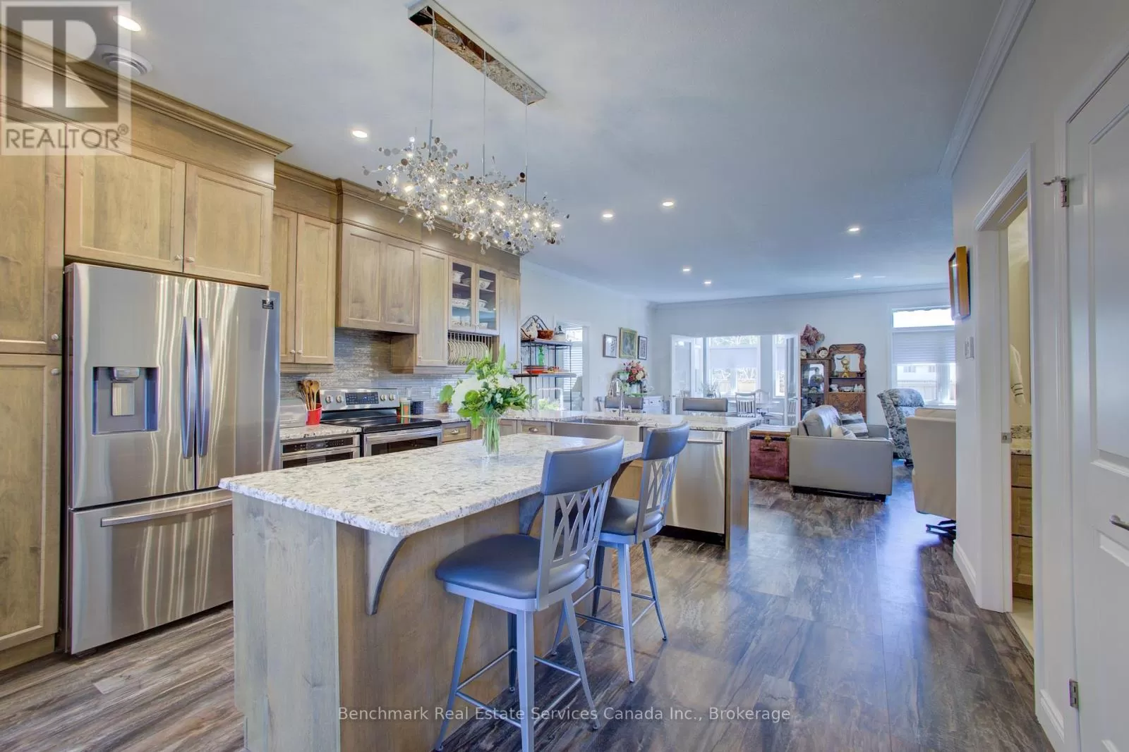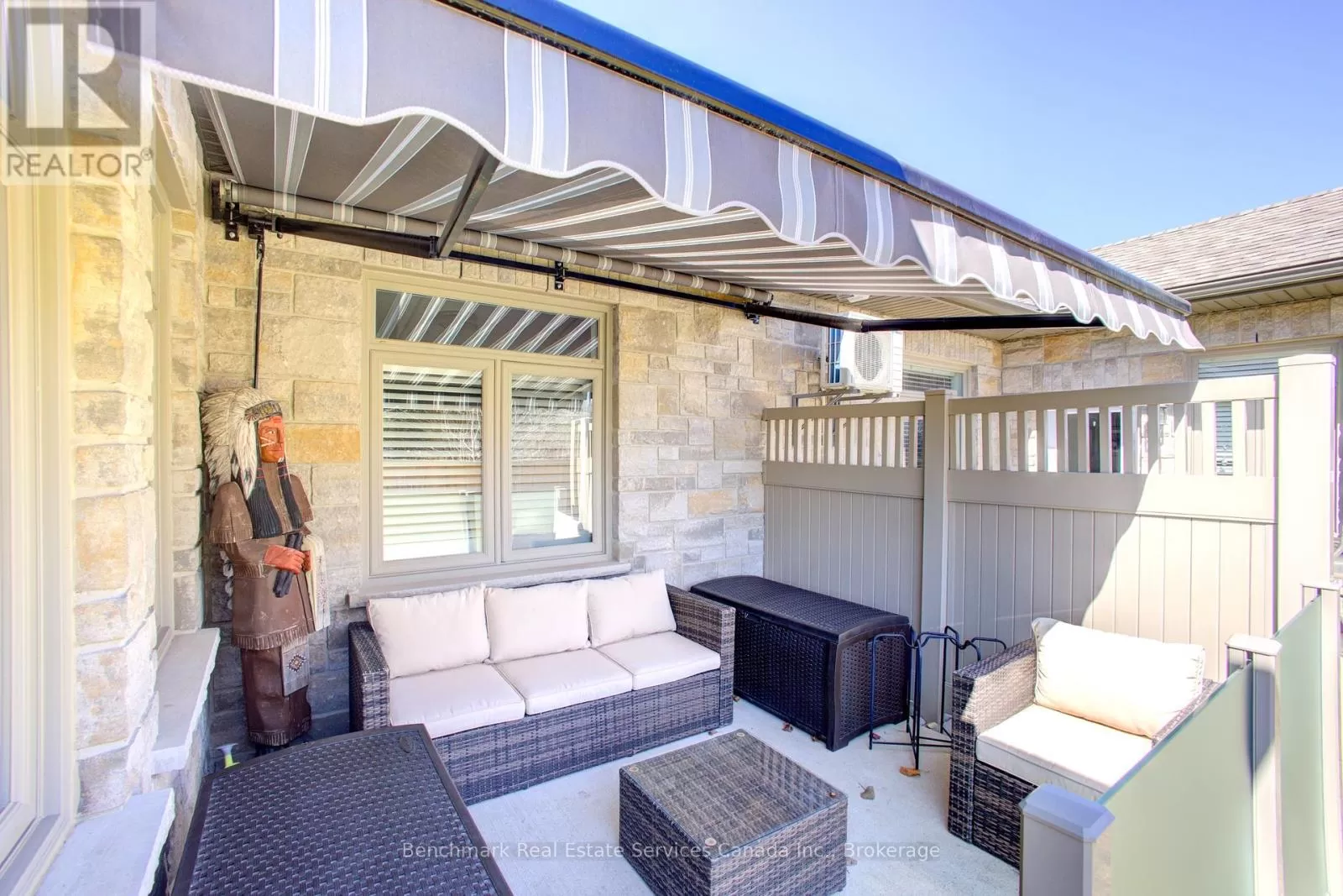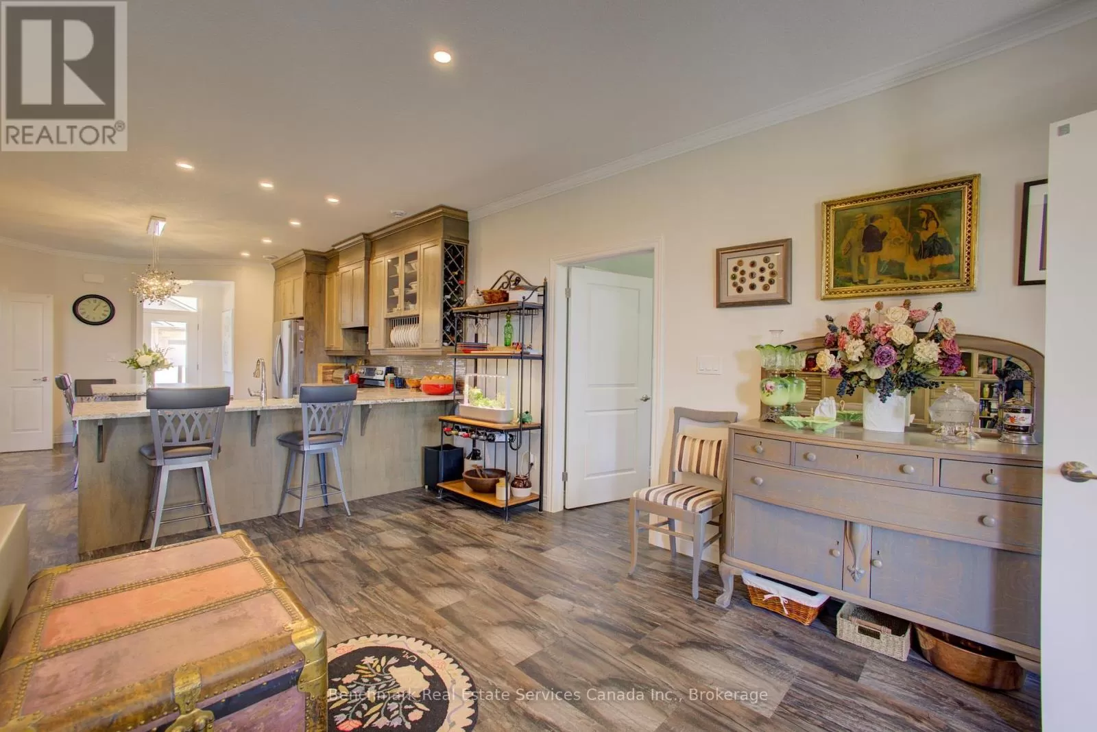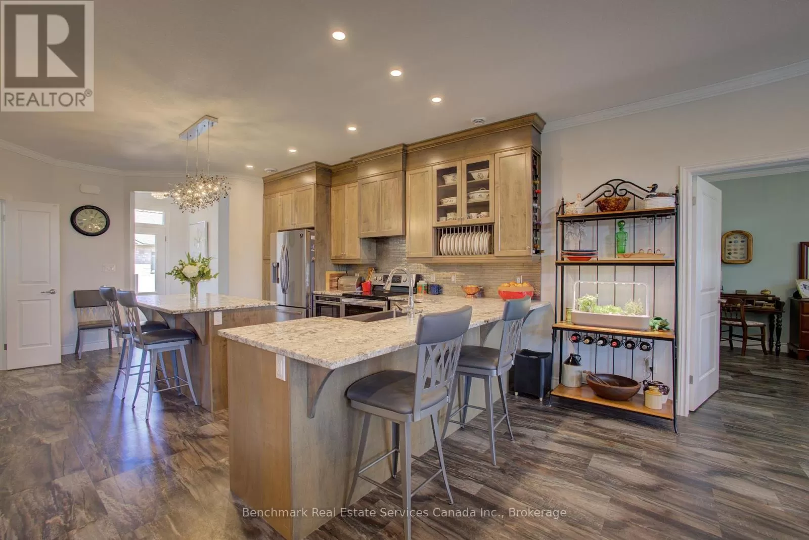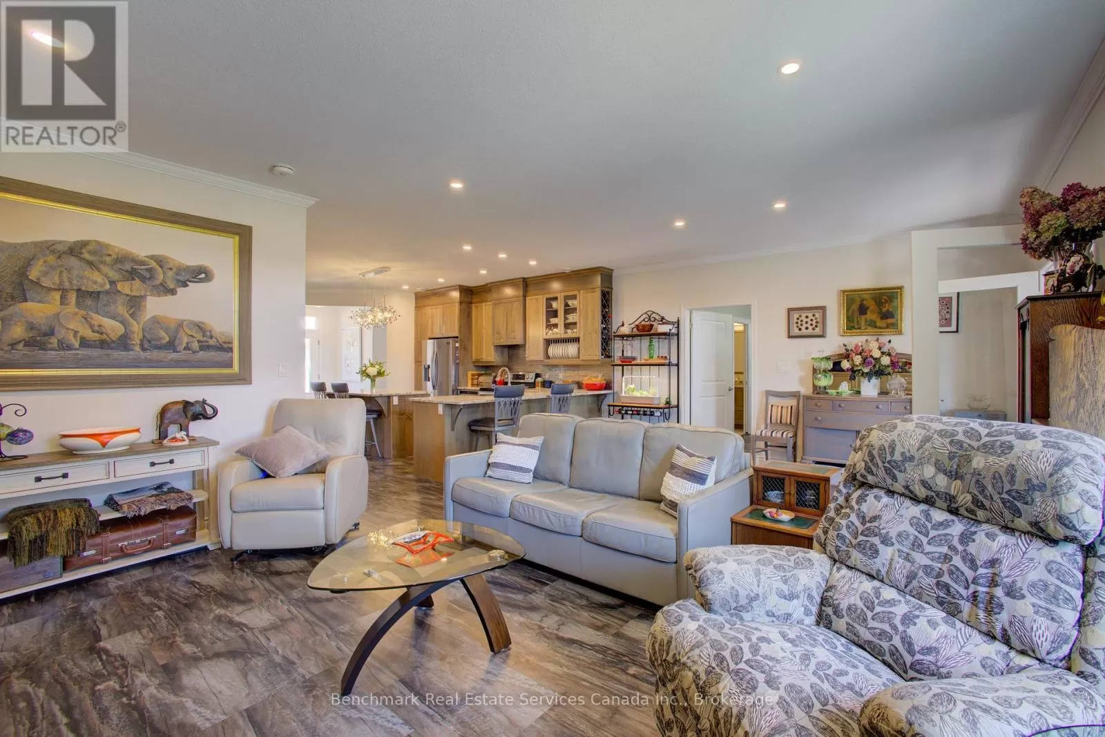 Cross Streets: Mitchell Road S and Kincaid St. ** Directions: From Mitchell Road South and Kincaid St, Head north through the lights, turn left at the carwash to enter the Sugarbush Private Road. Welcome to Sugarbush, Listowels newest retirement community, designed for folks 55 and over. This Sugarbush Aspen II model features extensive upgrades including crown mouldings throughout the main house, built in TV credenza & cabinets. Built in office desk and storage, Wilson Solutions customized closets. Kitchen upgrades include oversized island and granite counters, customized range hood, drawer microwave, farmhouse sink, to name a few. The home is heated with a Navien Natural Gas Boiler providing in floor, hot water heat for the ultimate comfort on cooler days. A Daikin mini split Air Conditioner bonnet/condenser with heat pump provides all season comfort. Outside you will be able to entertain or relax on one of the two cement patios, featuring a natural gas fire pit and natural gas hook up for your bbq, while the second patio offers a privacy glass enclosure for quieter times. Each patio provides shade at the touch of a button with automatic retractable awnings. This Aspen II home offers an oversize three piece bathroom with tiled shower as well as a three piece ensuite which also has a tiled shower. Situated in a desirable location within the Sugarbush community, offering a large exclusive use common area back yard with privacy fence, this home truly needs to be seen to be appreciated. (id:27476)