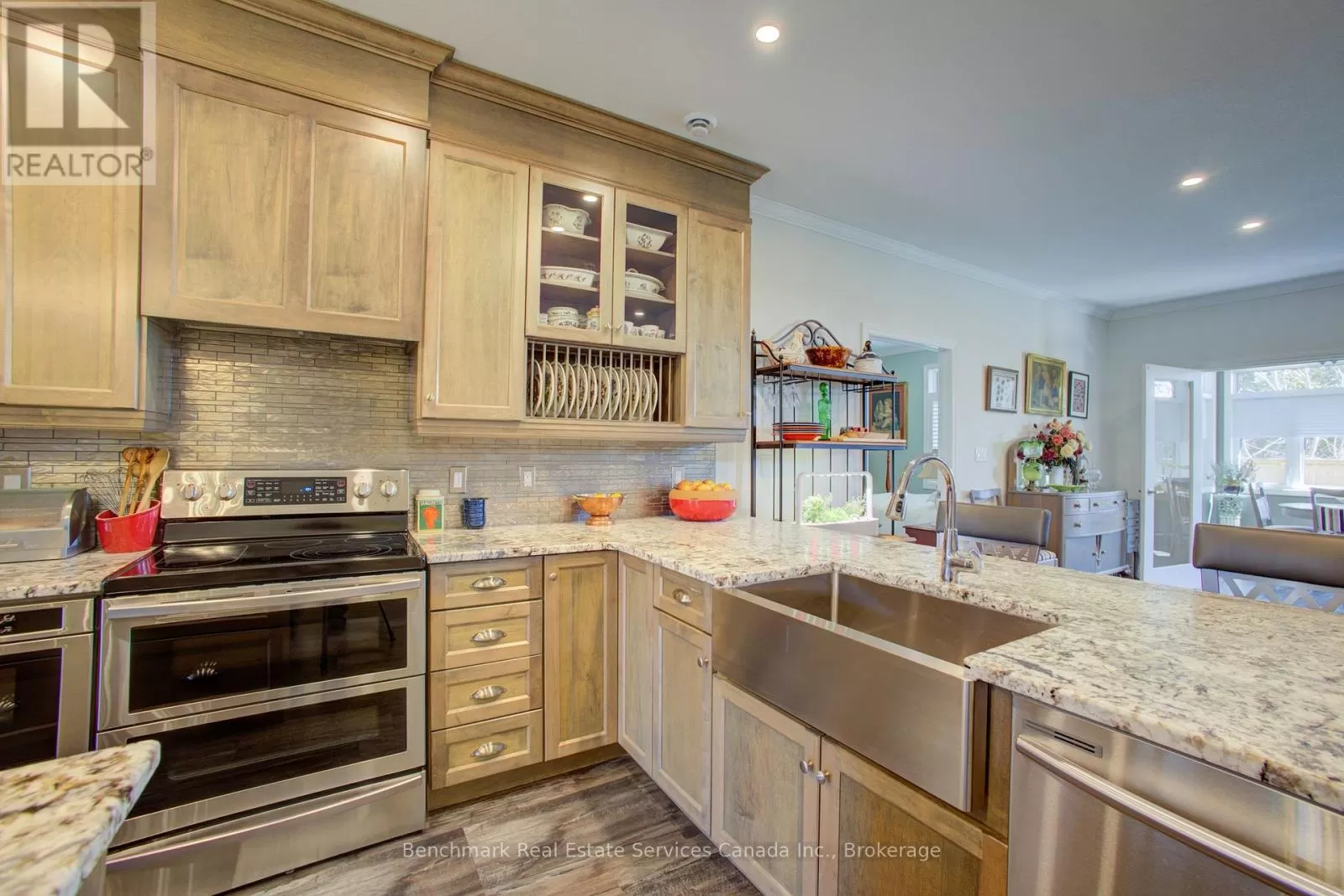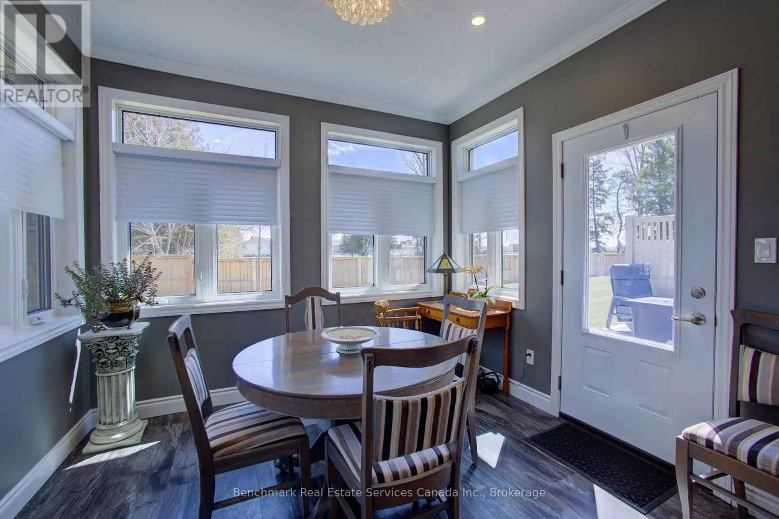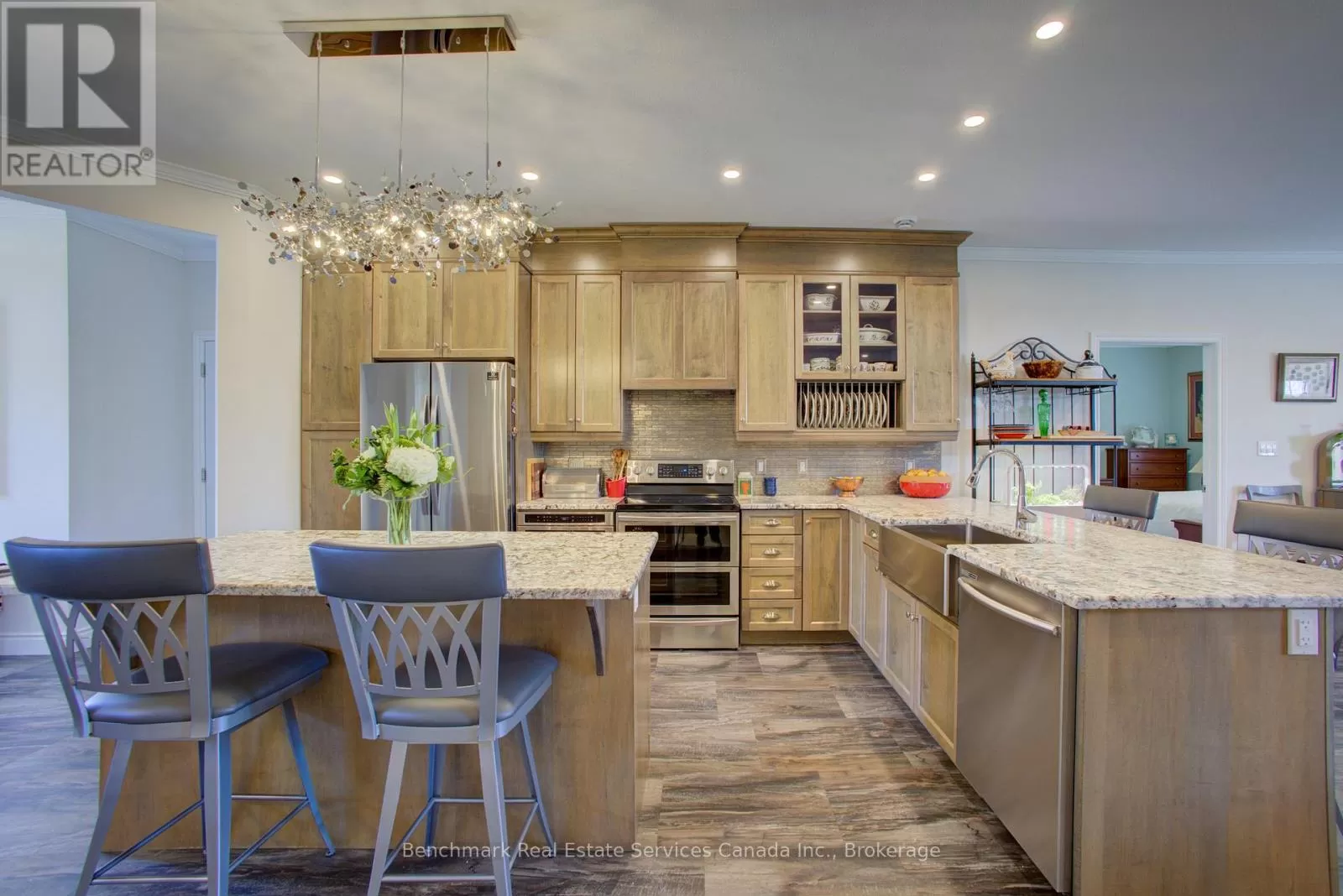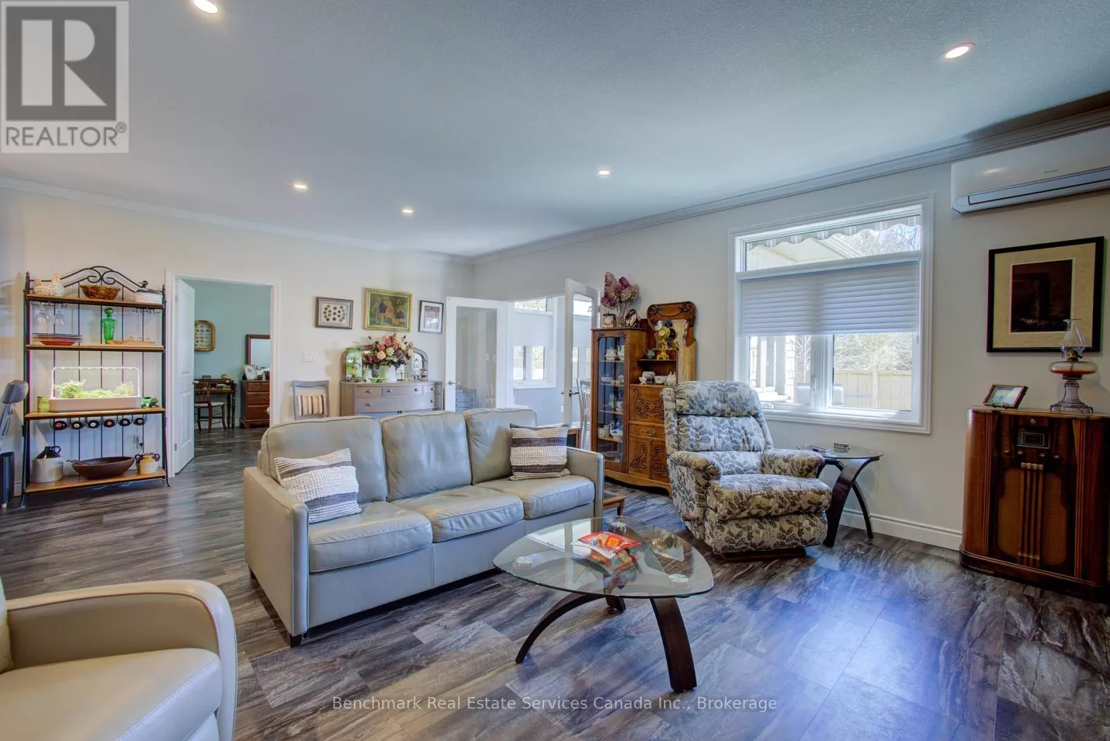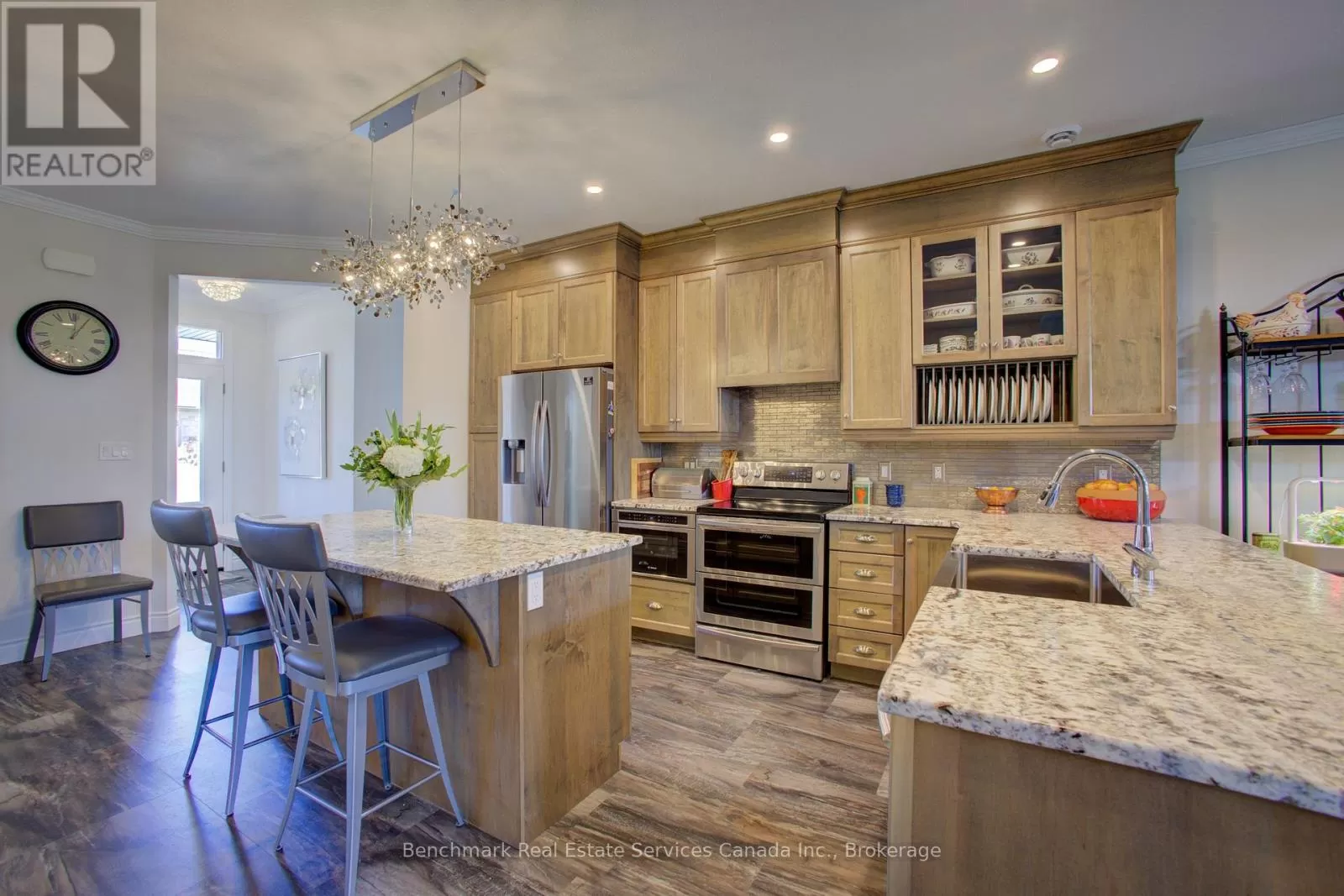 Cross Streets: Mitchell Road S and Kincaid St. ** Directions: From Mitchell Road South and Kincaid St, Head north through the lights, turn left at the carwash to enter the Sugarbush Private Road. Welcome to Sugarbush, Listowels newest retirement community, designed for folks 55 and over. This Sugarbush Aspen II model features extensive upgrades including crown mouldings throughout the main house, built in TV credenza & cabinets. Built in office desk and storage, Wilson Solutions customized closets. Kitchen upgrades include oversized island and granite counters, customized range hood, drawer microwave, farmhouse sink, to name a few. The home is heated with a Navien Natural Gas Boiler providing in floor, hot water heat for the ultimate comfort on cooler days. A Daikin mini split Air Conditioner bonnet/condenser with heat pump provides all season comfort. Outside you will be able to entertain or relax on one of the two cement patios, featuring a natural gas fire pit and natural gas hook up for your bbq, while the second patio offers a privacy glass enclosure for quieter times. Each patio provides shade at the touch of a button with automatic retractable awnings. This Aspen II home offers an oversize three piece bathroom with tiled shower as well as a three piece ensuite which also has a tiled shower. Situated in a desirable location within the Sugarbush community, offering a large exclusive use common area back yard with privacy fence, this home truly needs to be seen to be appreciated. (id:27476)