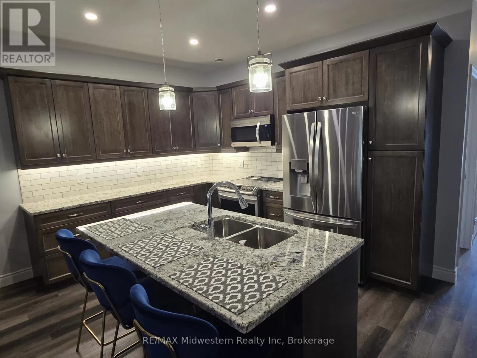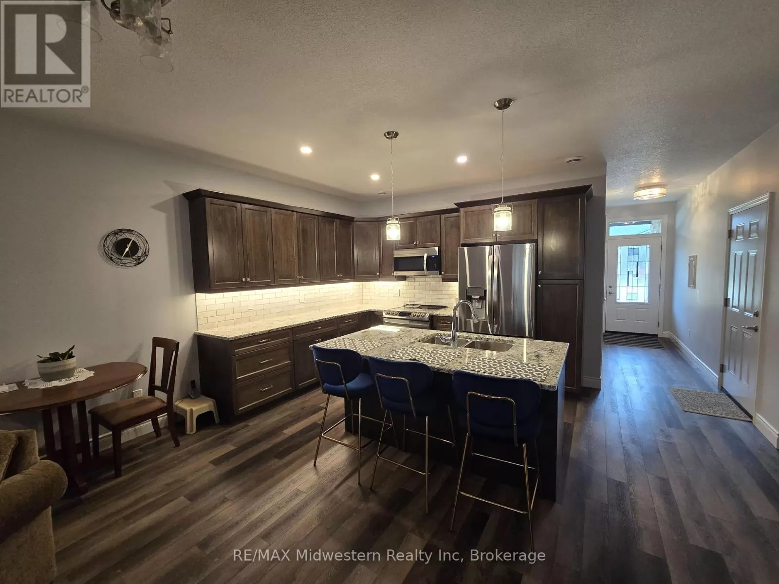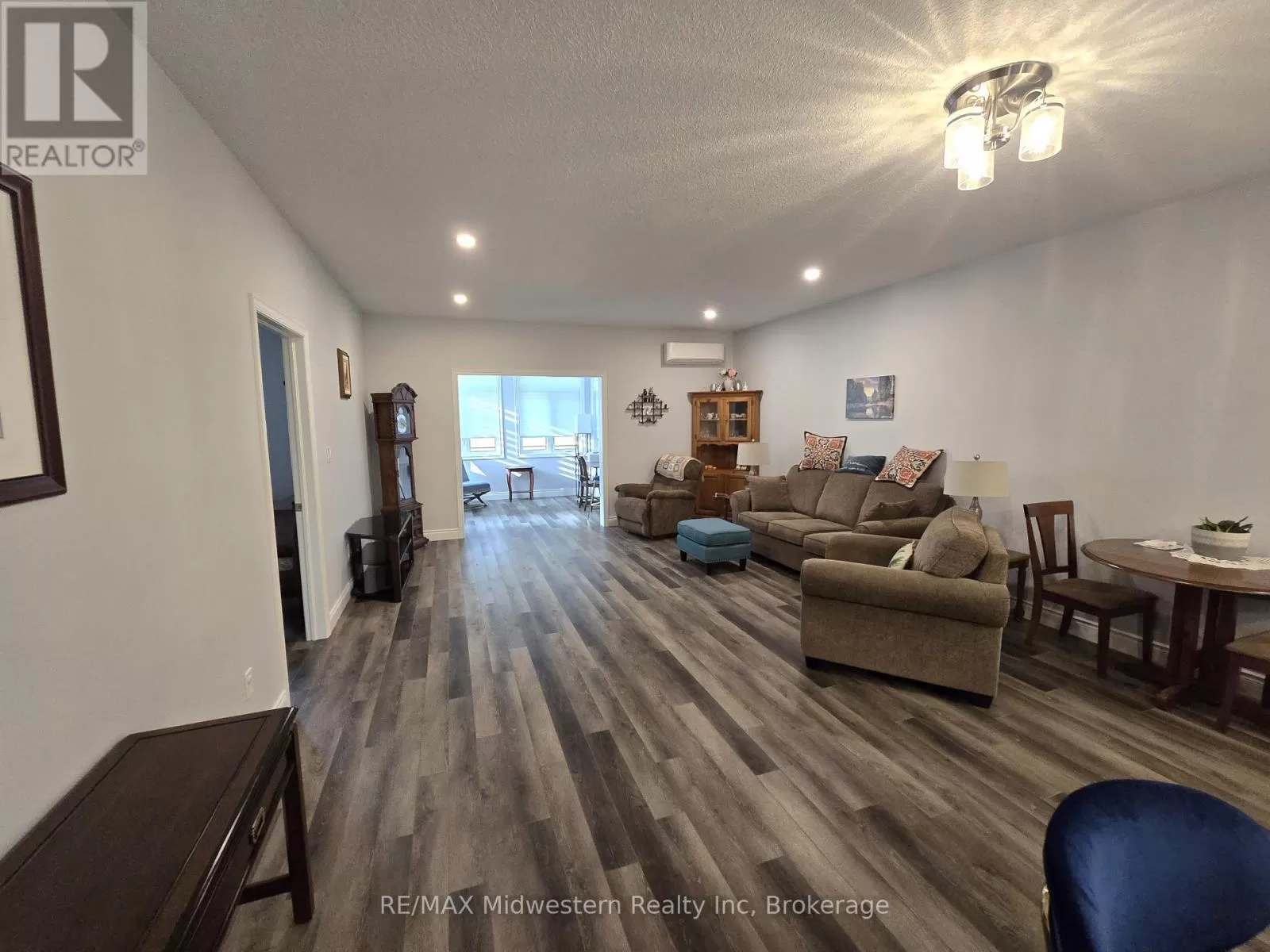 Cross Streets: Kincaid. ** Directions: take Kincaid St West off Mitchell Road S, turn right into Sugarbush Village and follow the street to the last crescent and follow to back of property .watch for sign and number . Welcome to Sugarbush Village, a 55 plus senior development close to shopping, medical and recreational facilities. Designed with accessibility in mind this home features a no step entrance into the unit and a no curb shower to name a couple of features. Another bonus of this unit is you have no neighbour in your backyard as it is located in the last row of units, plus its close to the walking trails through the bush and guest parking. This home offers efficient in floor heating and ductless air conditioning, a kitchen with ample cupboards and stone countertops and a bright 4 season sunroom with a concrete patio off of it. The life lease fee includes grass, flowerbed and snow removal from your drive taken care of for you. (id:27476)