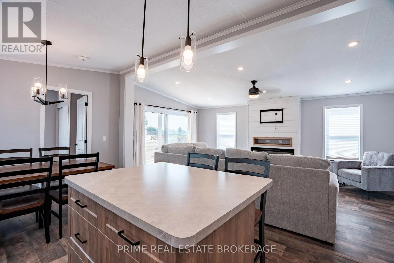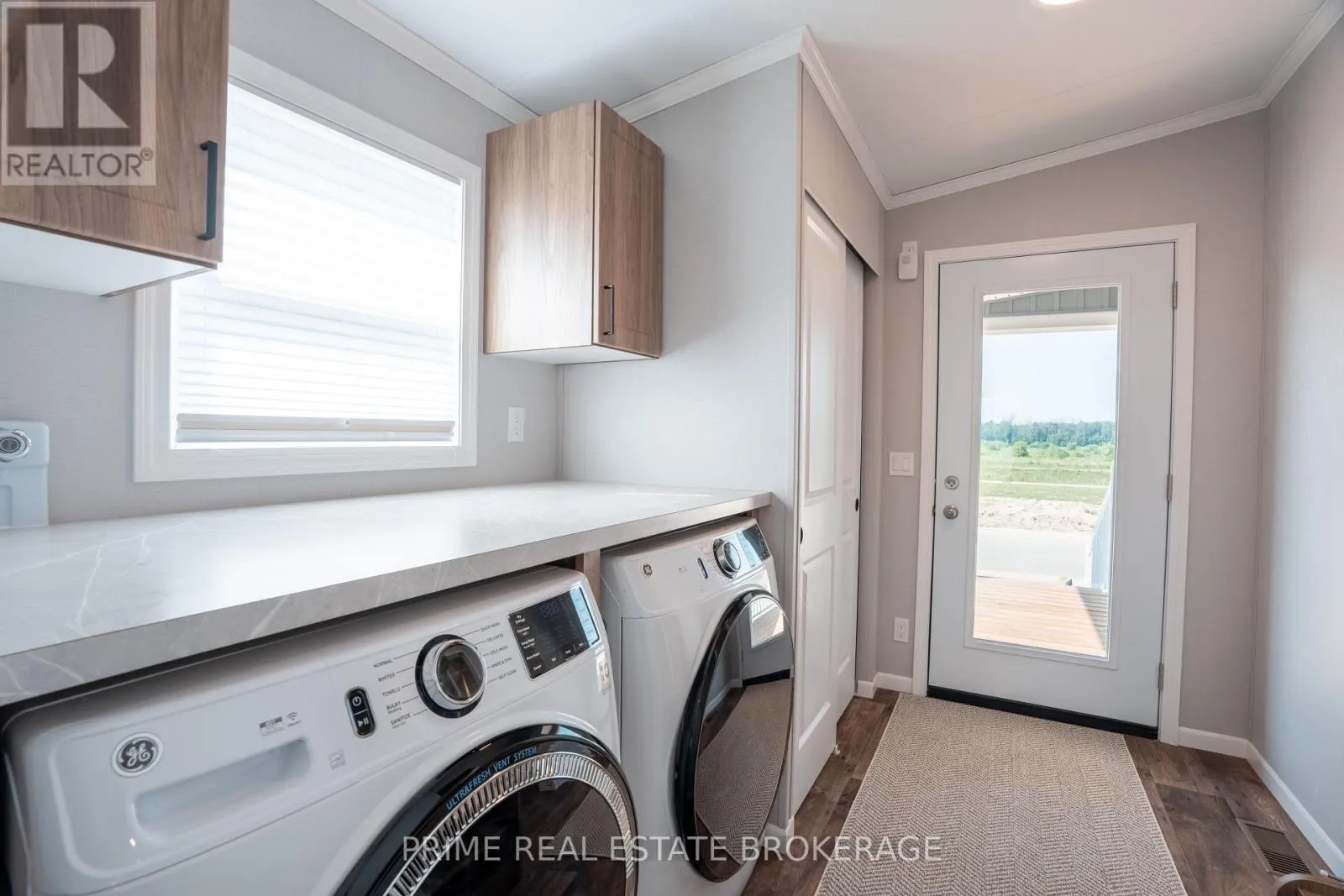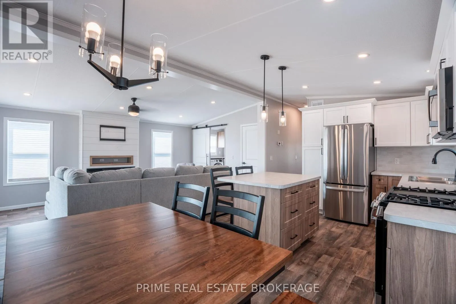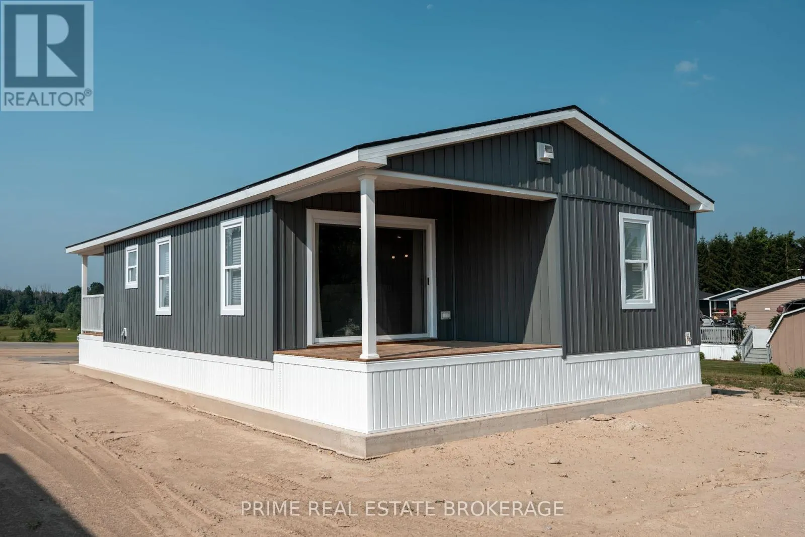 Cross Streets: Meadowview. ** Directions: Go east on Hwy 86 out of town, The Village is on the right, turn right on Village Ave., right on Fairview, right on Meadowview, left on Carolynn Way. Discover the perfect blend of style, comfort and simplicity in this beautifully crafted Canadian-built Northlander Aspire, nestled in The Village - a peaceful, well-maintained community just east of Listowel. This 2-bedroom, 1.5 bathroom newly constructed modular home offers thoughtful features throughout. Enjoy a morning beverage or unwind in the evening in a serene, natural setting on the charming 10' x 10' covered front porch. Inside, a bright and open-concept layout connects the kitchen, dining, and living areas, enhanced by large windows, patio doors, and modern lighting. The kitchen is both functional and stylish, featuring elegant, two-tone white/urban cabinetry, stainless steel GE appliances, a ceramic tile backsplash, and an island with seating ideal for casual meals or entertaining. The spacious living area features a built-in fireplace, creating a warm and inviting space during the winter months. Adjacent to the main living area is the 2 piece bathroom and a laundry room with storage for everyday convenience while a second bedroom ensures there is space for visitors or an alternate work area. The rear 8'x 10' covered porch provides the perfect setting for relaxation and casual enjoyment with neighbours and friends. Paved streets and walking trails along the perimeter of the community promote a healthy lifestyle and residents of The Village also benefit from a welcoming clubhouse offering social events and a sense of connection. With shopping, dining, curling, golf, and other amenities just minutes away in Listowel, this home offers an easy going lifestyle in a quiet and friendly setting. NOTE: Land is leased ($575/month). Modular home is owned-a mortgage specialist can be available, if desired. Grass to be planted by the owners as construction and set up are completed in this new area. (id:27476)