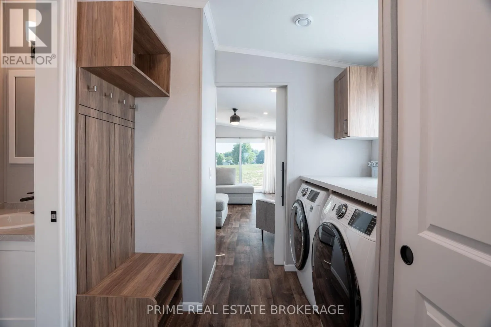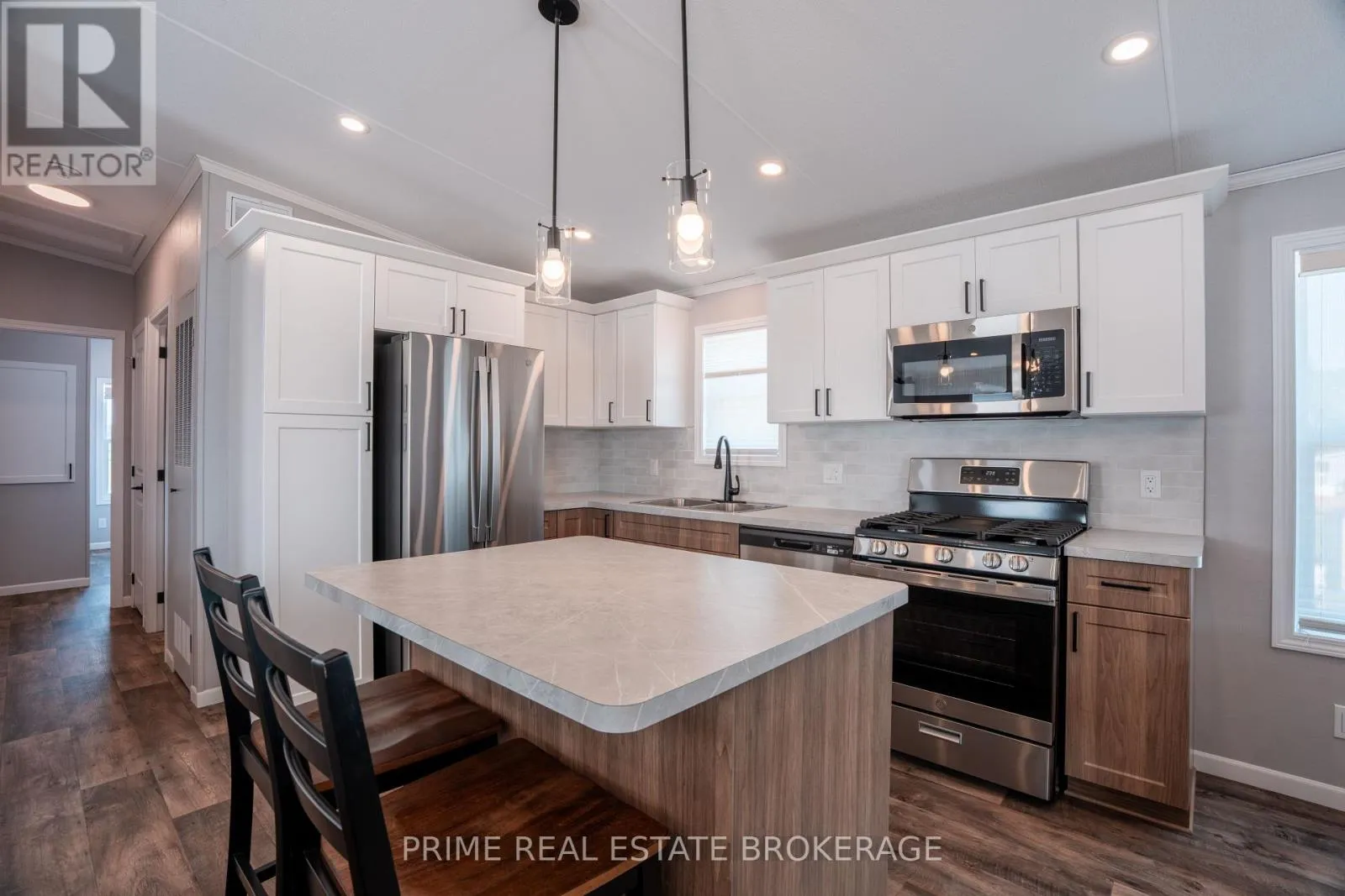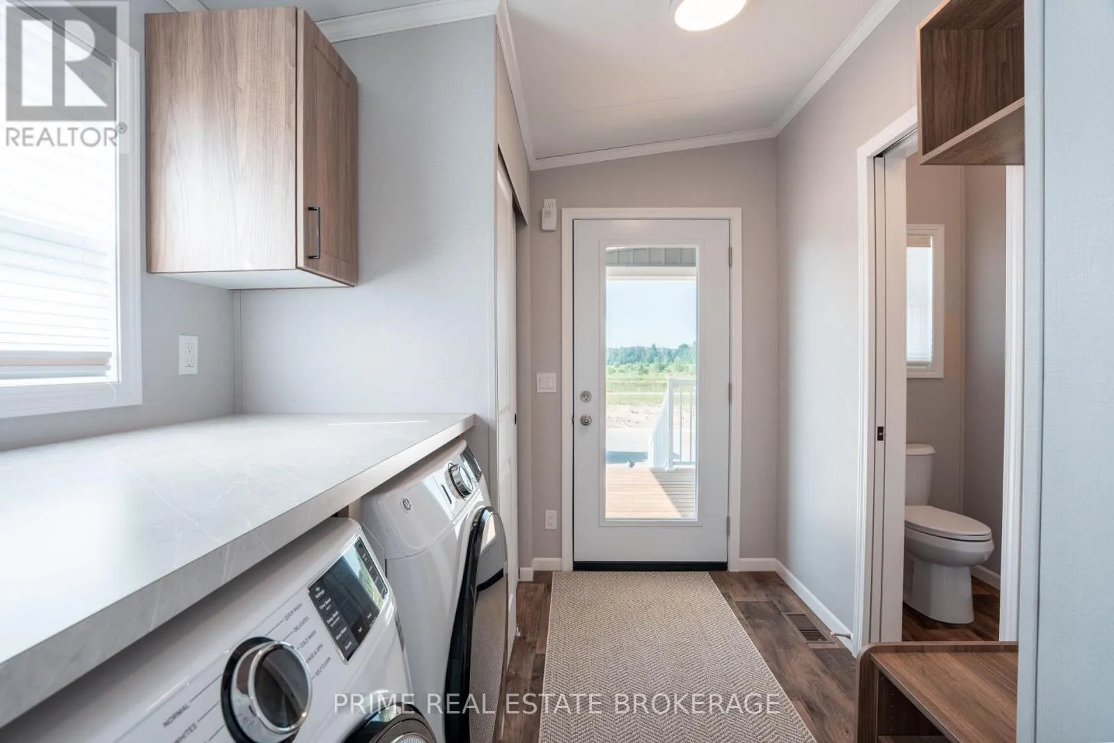 Cross Streets: Meadowview. ** Directions: Go east on Hwy 86 out of town, The Village is on the right, turn right on Village Ave., right on Fairview, right on Meadowview, left on Carolynn Way. Discover the perfect blend of style, comfort and simplicity in this beautifully crafted Canadian-built Northlander Aspire, nestled in The Village - a peaceful, well-maintained community just east of Listowel. This 2-bedroom, 1.5 bathroom newly constructed modular home offers thoughtful features throughout. Enjoy a morning beverage or unwind in the evening in a serene, natural setting on the charming 10' x 10' covered front porch. Inside, a bright and open-concept layout connects the kitchen, dining, and living areas, enhanced by large windows, patio doors, and modern lighting. The kitchen is both functional and stylish, featuring elegant, two-tone white/urban cabinetry, stainless steel GE appliances, a ceramic tile backsplash, and an island with seating ideal for casual meals or entertaining. The spacious living area features a built-in fireplace, creating a warm and inviting space during the winter months. Adjacent to the main living area is the 2 piece bathroom and a laundry room with storage for everyday convenience while a second bedroom ensures there is space for visitors or an alternate work area. The rear 8'x 10' covered porch provides the perfect setting for relaxation and casual enjoyment with neighbours and friends. Paved streets and walking trails along the perimeter of the community promote a healthy lifestyle and residents of The Village also benefit from a welcoming clubhouse offering social events and a sense of connection. With shopping, dining, curling, golf, and other amenities just minutes away in Listowel, this home offers an easy going lifestyle in a quiet and friendly setting. NOTE: Land is leased ($575/month). Modular home is owned-a mortgage specialist can be available, if desired. Grass to be planted by the owners as construction and set up are completed in this new area. (id:27476)