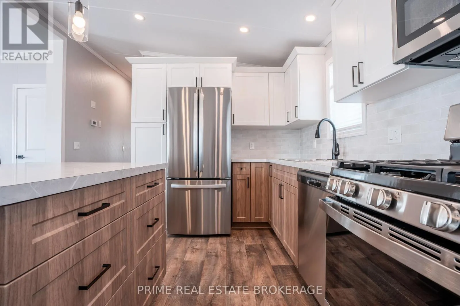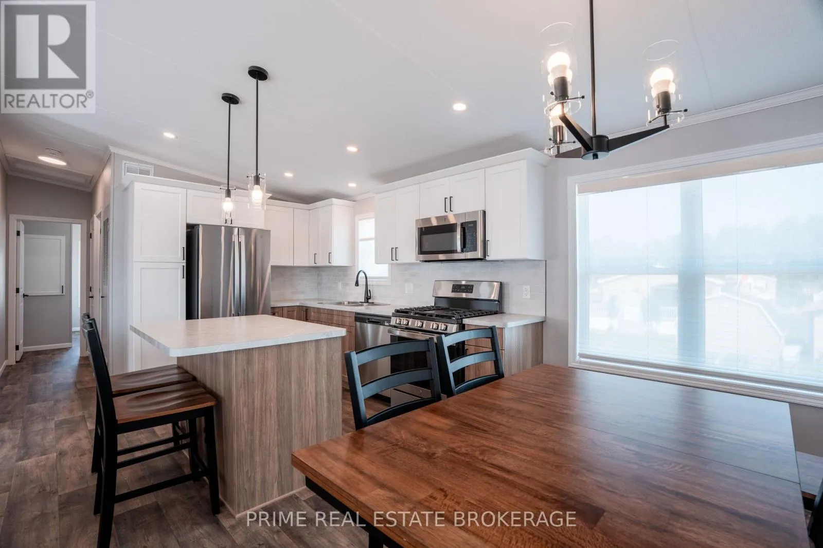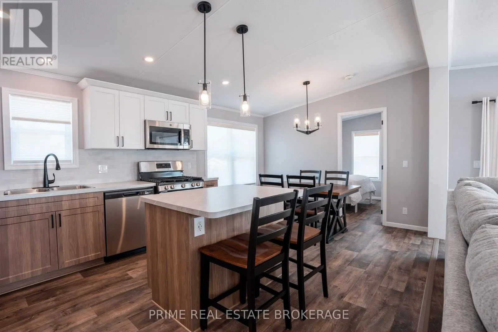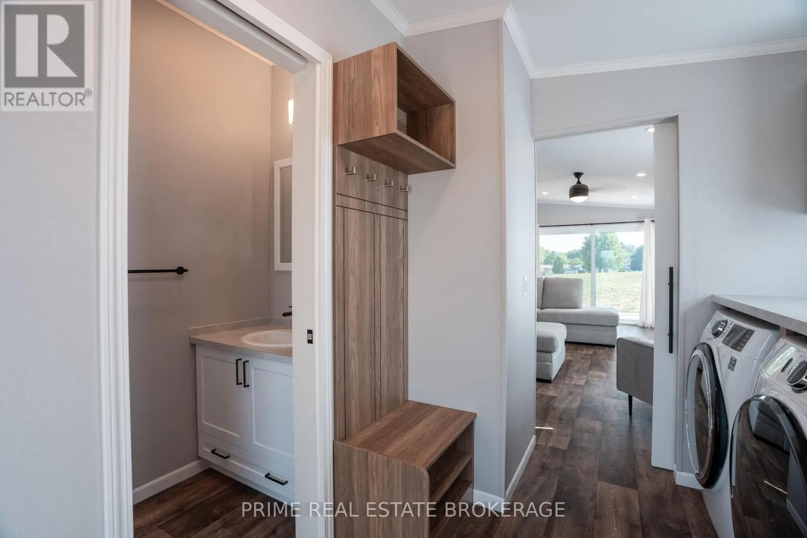 Cross Streets: Meadowview. ** Directions: Go east on Hwy 86 out of town, The Village is on the right, turn right on Village Ave., right on Fairview, right on Meadowview, left on Carolynn Way. Discover the perfect blend of style, comfort and simplicity in this beautifully crafted Canadian-built Northlander Aspire, nestled in The Village - a peaceful, well-maintained community just east of Listowel. This 2-bedroom, 1.5 bathroom newly constructed modular home offers thoughtful features throughout. Enjoy a morning beverage or unwind in the evening in a serene, natural setting on the charming 10' x 10' covered front porch. Inside, a bright and open-concept layout connects the kitchen, dining, and living areas, enhanced by large windows, patio doors, and modern lighting. The kitchen is both functional and stylish, featuring elegant, two-tone white/urban cabinetry, stainless steel GE appliances, a ceramic tile backsplash, and an island with seating ideal for casual meals or entertaining. The spacious living area features a built-in fireplace, creating a warm and inviting space during the winter months. Adjacent to the main living area is the 2 piece bathroom and a laundry room with storage for everyday convenience while a second bedroom ensures there is space for visitors or an alternate work area. The rear 8'x 10' covered porch provides the perfect setting for relaxation and casual enjoyment with neighbours and friends. Paved streets and walking trails along the perimeter of the community promote a healthy lifestyle and residents of The Village also benefit from a welcoming clubhouse offering social events and a sense of connection. With shopping, dining, curling, golf, and other amenities just minutes away in Listowel, this home offers an easy going lifestyle in a quiet and friendly setting. NOTE: Land is leased ($575/month). Modular home is owned-a mortgage specialist can be available, if desired. Grass to be planted by the owners as construction and set up are completed in this new area. (id:27476)