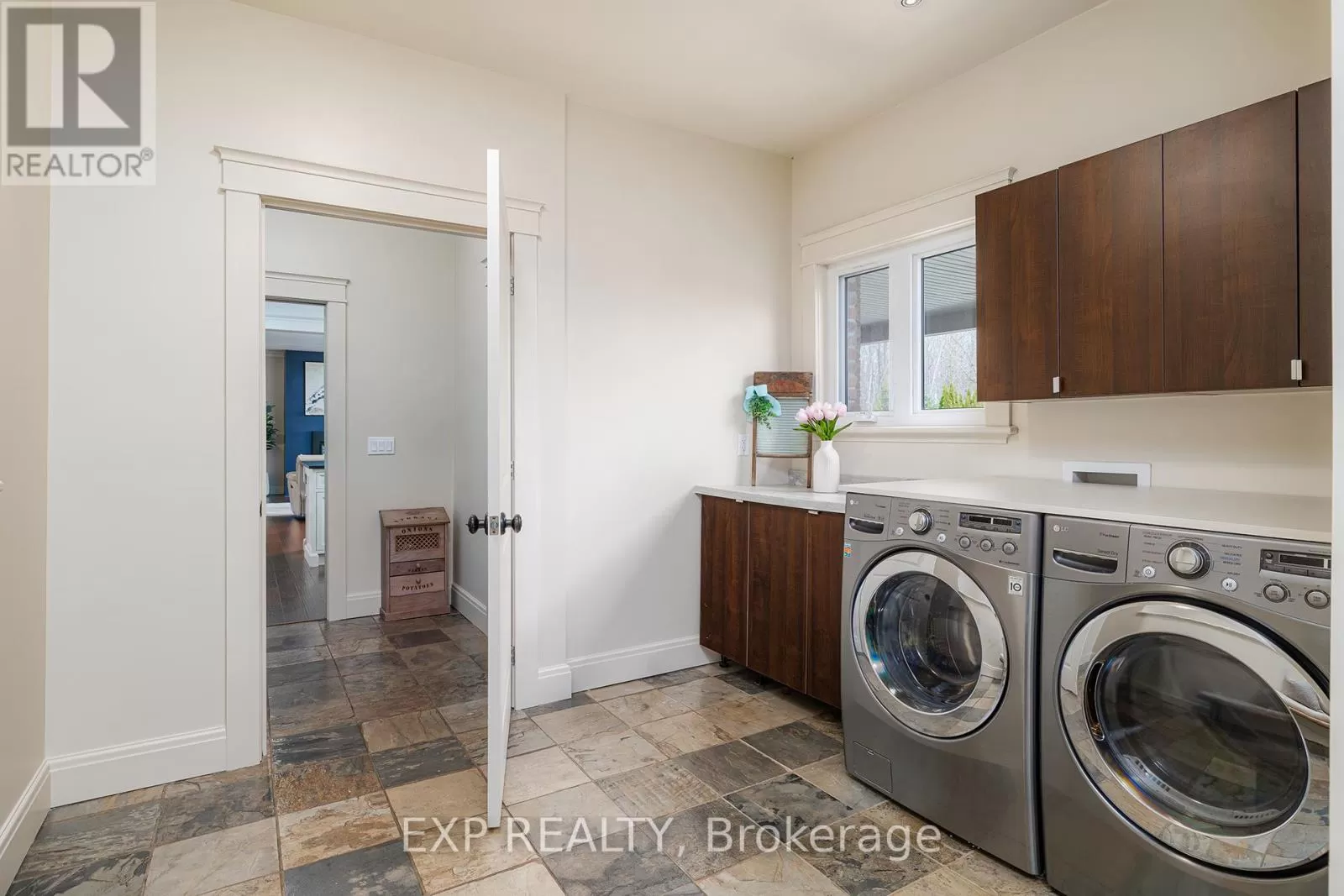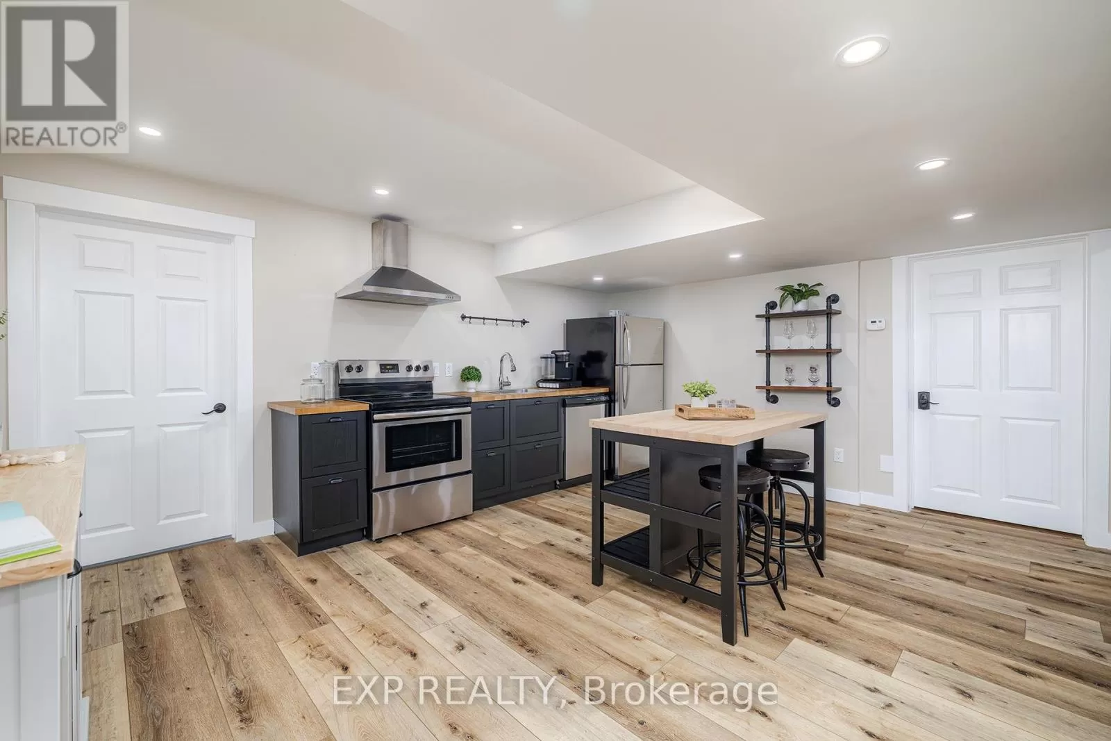 Cross Streets: WOOD Drive. ** Directions: Driving West down Krotz St East from Tremaine Av turn right onto Wood Drive, the home will come up on the right hand side. Discover 880 Wood Drive, which blends timeless elegance with modern comfort. A thoughtfully designed Georgian-style home set on a private 68 x 184 landscaped Premium lot with no rear neighbours. Ideally positioned near parks, schools, shopping, healthcare, and trails. The striking red brick exterior, crafted from reclaimed Detroit brick, pairs beautifully with durable 50-year shingles for timeless curb appeal. Step inside to an inviting open-concept layout where premium Engineered Hickory flooring flows seamlessly across the main level. Culinary enthusiasts will appreciate the chefs kitchen, featuring custom Heirloom cabinetry, a spacious 8-foot island topped with leathered granite, and a suite of luxury appliances: a Viking cooktop and double oven, two Bosch dishwashers, a Liebherr 48-inch fridge, a Krauss stainless steel sink, and garburators installed in both kitchens. The main level also includes upgraded lighting and a modernized bathroom, finished in warm, neutral tones. Custom-built shelving adds both beauty and functionality. The home offers in-floor radiant heating throughout, powered by an energy-efficient ICF foundation. The upper level hosts four large bedrooms, a versatile loft/den, and three full bathrooms, including a private primary suite designed as a personal retreat. The professionally finished lower level, completed in 2019, offers an in-law suite with its own entrance. This flexible space includes a second kitchen, living area, bathroom, two bedrooms, private laundry, and separate access from the mudroom. The basement also features new flooring, trim, an additional sump pump, and a second electrical panel. Outdoor amenities include a hot tub, new exterior lighting, and professional landscaping. The backyards eastern exposure means you can enjoy beautiful sunrises right from your porch. With thoughtful upgrades, superior craftsmanship, and a private setting, 880 Wood Drive delivers a lifestyle of comfort and distinction. (id:27476)