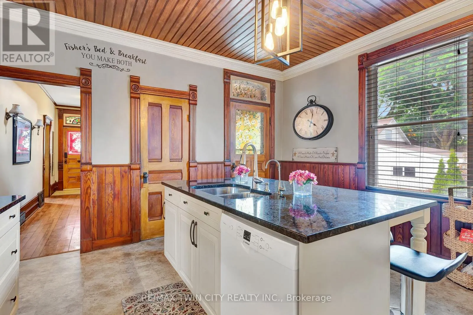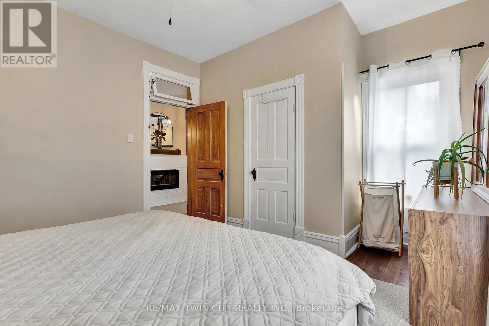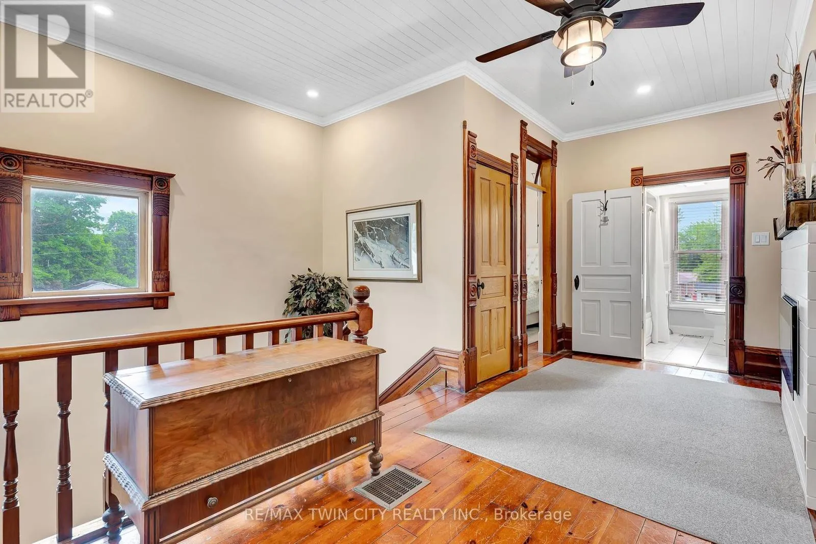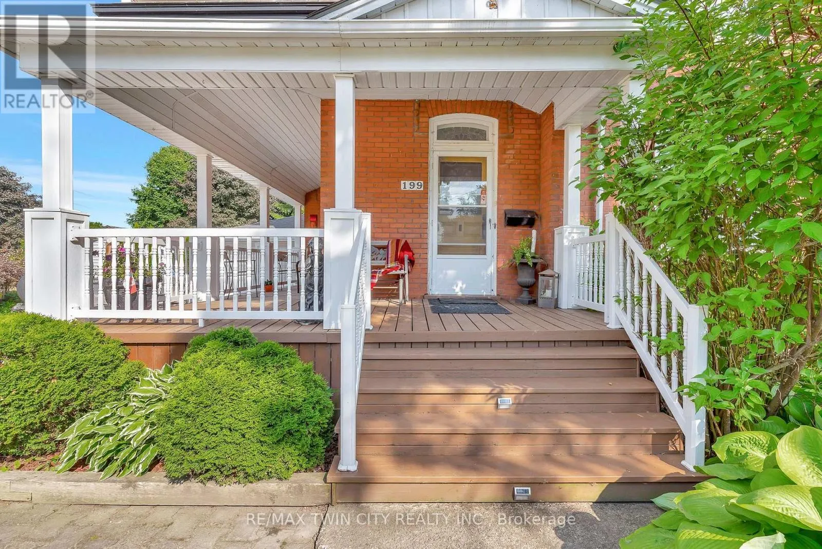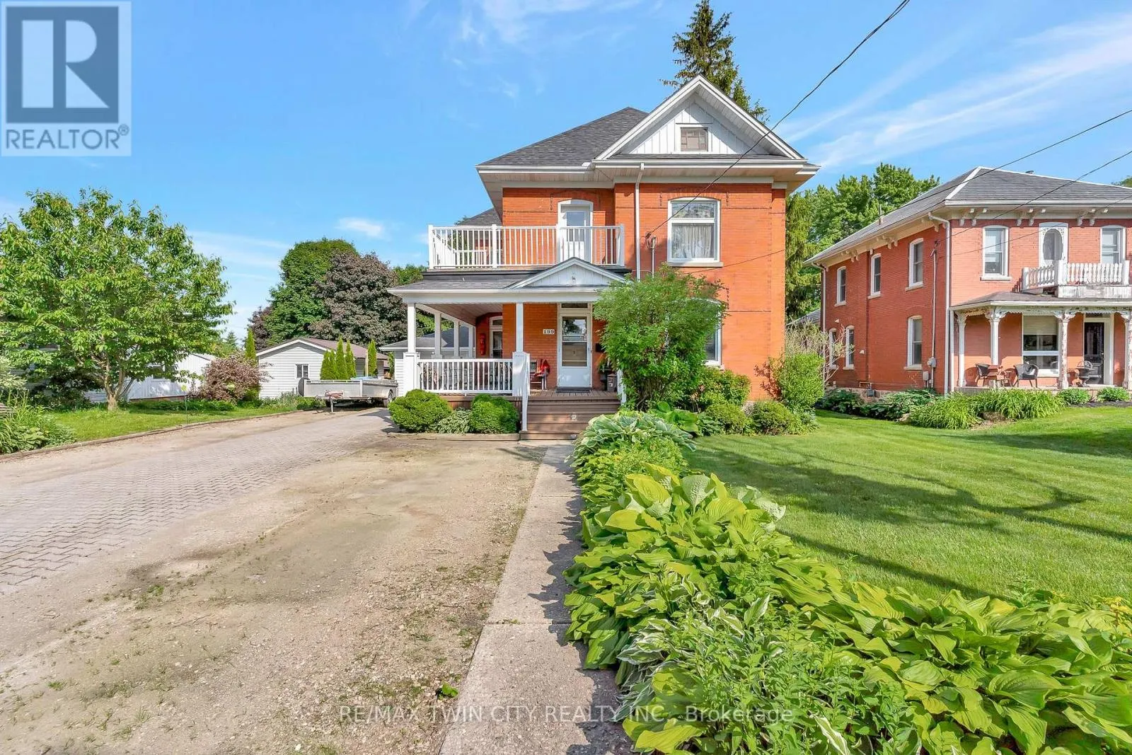 Cross Streets: Blair. ** Directions: Hwy. 23 South to Main St., to Blair St., to Ellen. Welcome to 199 Ellen St, a charming century home overflowing with character located in the quiet family friendly town of Atwood, just a 45 min drive to Kitchener/Waterloo. This 5 bed, 2 bath, 2.5 story has beautiful curb appeal with an inviting wrap-around porch, solid red brick, lush landscaping, and a stone driveway to fit 6+ cars. Inside, the timeless appeal is seamlessly blended with modern upgrades from the elegant detail of the wood trim, some original stained glass windows and hardwood throughout to the classically renovated kitchen and bathrooms. The large entryway takes you to a cozy living room with large windows to let in plenty of natural light, and a gas fireplace where you will love to relax after a long day. From here you can separate the large formal dining room with traditional pocket doors. You will also find a den/office on this main level which is big enough to use to create a 6th bedroom on the main floor. Down the hall from the foyer is the gorgeous, modern-meets-rustic kitchen, with custom cream cabinetry and island, black granite countertops, gas stove and wood paneled ceiling, combining tradition and luxury. From here you can head through the mudroom where you'll find main floor laundry and a modern updated 3 pce bath. The oversized sliders will lead you to the peace and tranquility of the huge, treed backyard where you can enjoy the stunning gardens or relax on the private, well designed deck with a bar, or under the canopy where you can cool off under the fan. Store your toys and tools in the custom crafted shed. Upstairs there is an exquisitely designed electric fireplace with white shiplap, another fully updated 4 pce bathroom and 5 spacious bedrooms with one leading to your upper balcony, a great place to enjoy a morning coffee. If you're looking for more space or extra storage, there's a staircase to an attic with 500 sq feet to make your own. A perfect place to raise your children, close to community center/pool, schools and more! (id:27476)