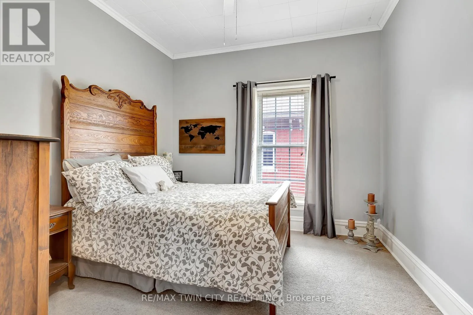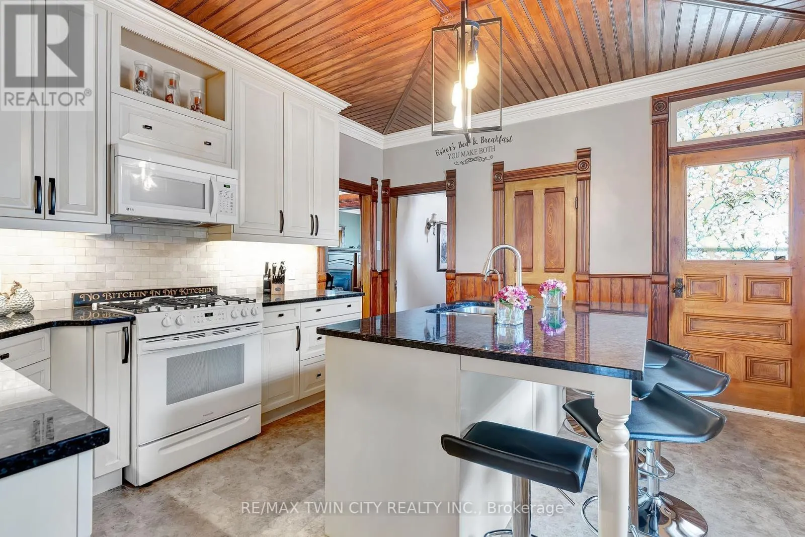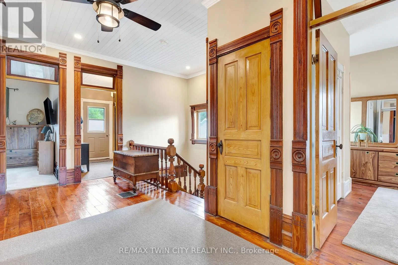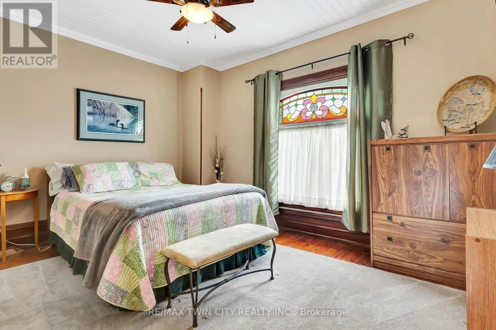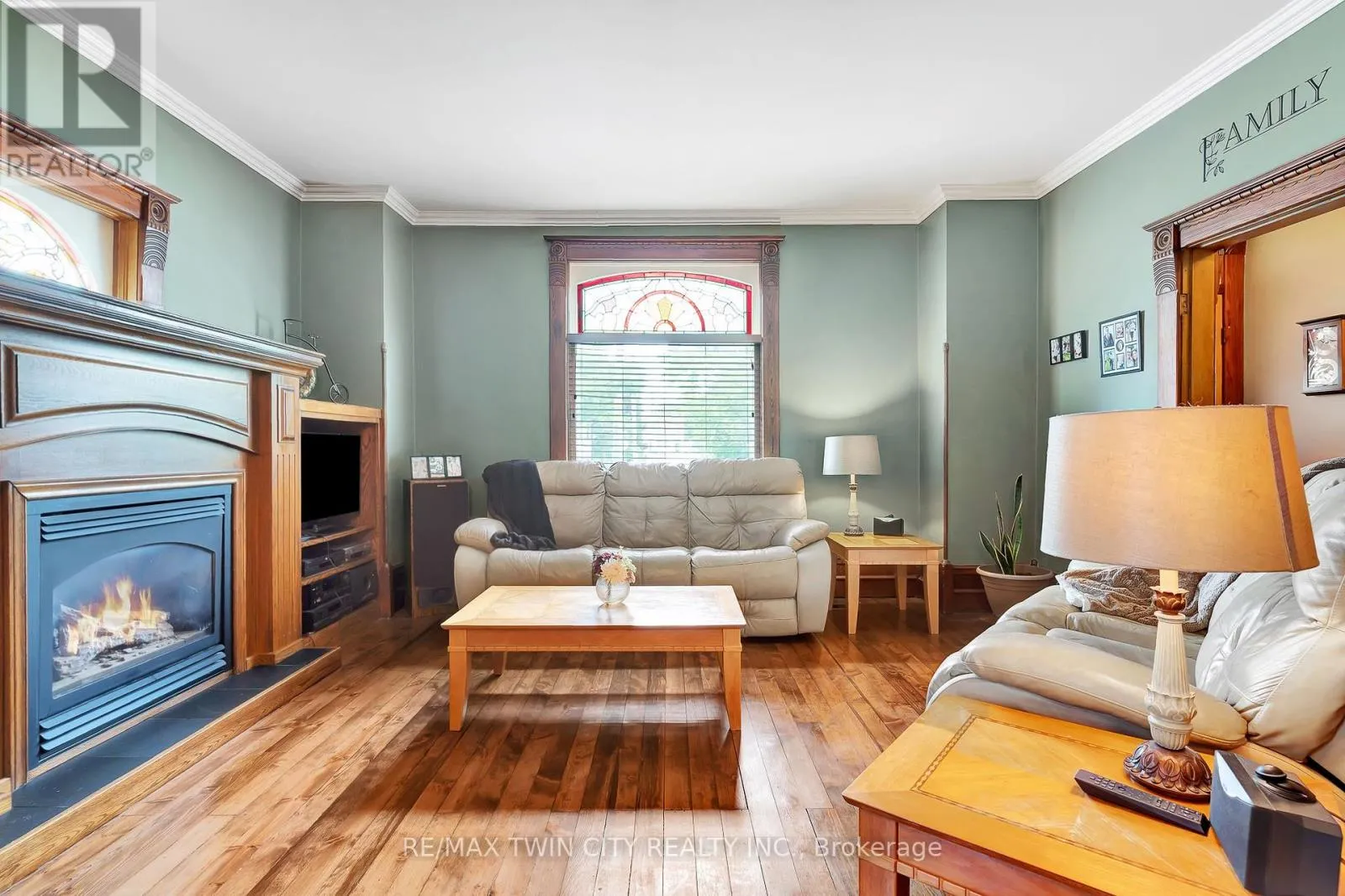 Cross Streets: Blair. ** Directions: Hwy. 23 South to Main St., to Blair St., to Ellen. Welcome to 199 Ellen St, a charming century home overflowing with character located in the quiet family friendly town of Atwood, just a 45 min drive to Kitchener/Waterloo. This 5 bed, 2 bath, 2.5 story has beautiful curb appeal with an inviting wrap-around porch, solid red brick, lush landscaping, and a stone driveway to fit 6+ cars. Inside, the timeless appeal is seamlessly blended with modern upgrades from the elegant detail of the wood trim, some original stained glass windows and hardwood throughout to the classically renovated kitchen and bathrooms. The large entryway takes you to a cozy living room with large windows to let in plenty of natural light, and a gas fireplace where you will love to relax after a long day. From here you can separate the large formal dining room with traditional pocket doors. You will also find a den/office on this main level which is big enough to use to create a 6th bedroom on the main floor. Down the hall from the foyer is the gorgeous, modern-meets-rustic kitchen, with custom cream cabinetry and island, black granite countertops, gas stove and wood paneled ceiling, combining tradition and luxury. From here you can head through the mudroom where you'll find main floor laundry and a modern updated 3 pce bath. The oversized sliders will lead you to the peace and tranquility of the huge, treed backyard where you can enjoy the stunning gardens or relax on the private, well designed deck with a bar, or under the canopy where you can cool off under the fan. Store your toys and tools in the custom crafted shed. Upstairs there is an exquisitely designed electric fireplace with white shiplap, another fully updated 4 pce bathroom and 5 spacious bedrooms with one leading to your upper balcony, a great place to enjoy a morning coffee. If you're looking for more space or extra storage, there's a staircase to an attic with 500 sq feet to make your own. A perfect place to raise your children, close to community center/pool, schools and more! (id:27476)