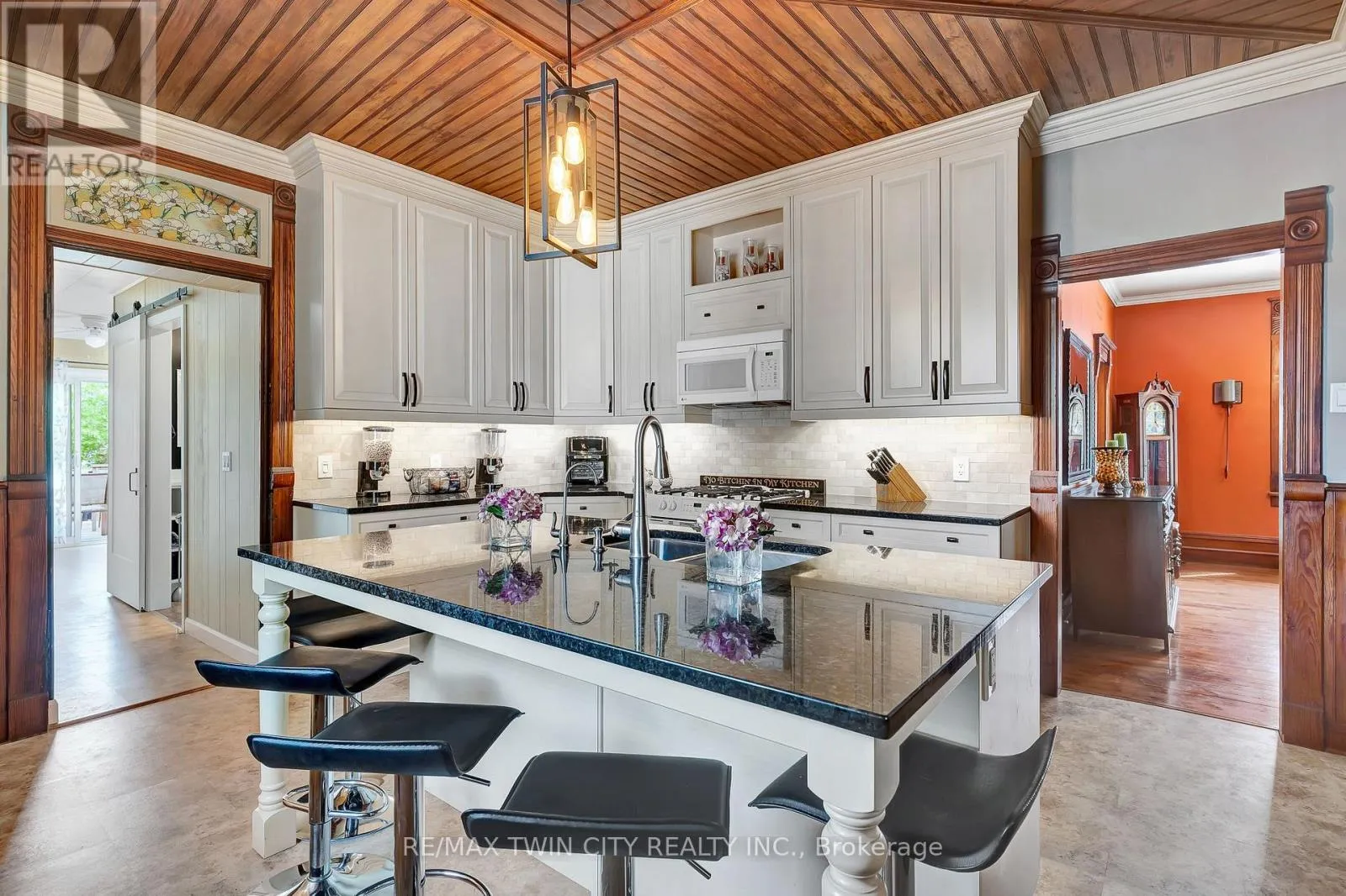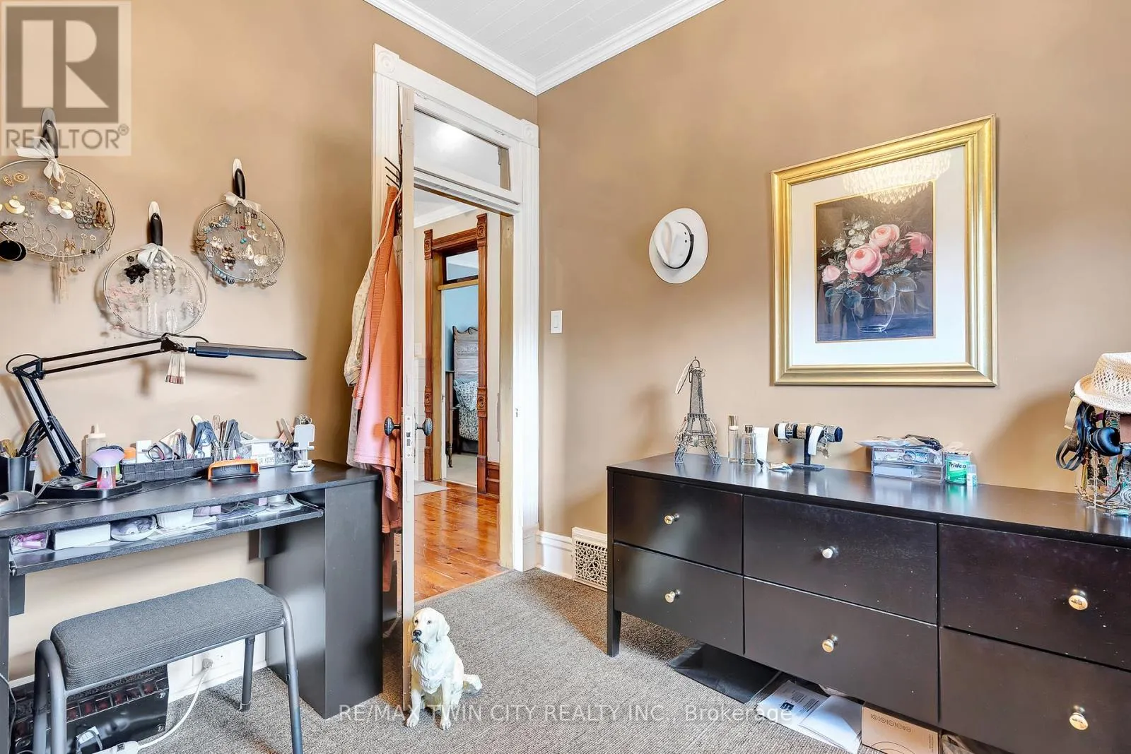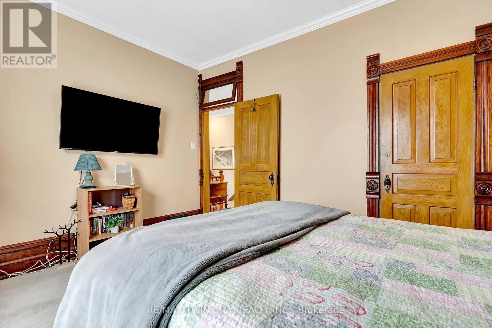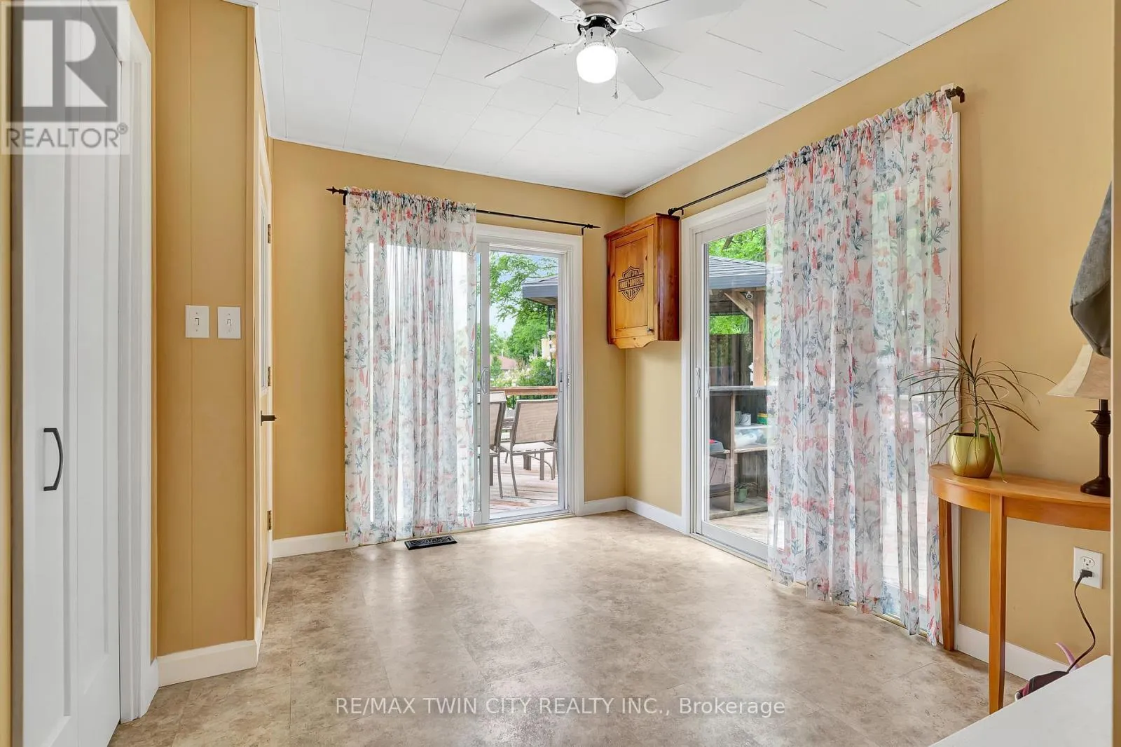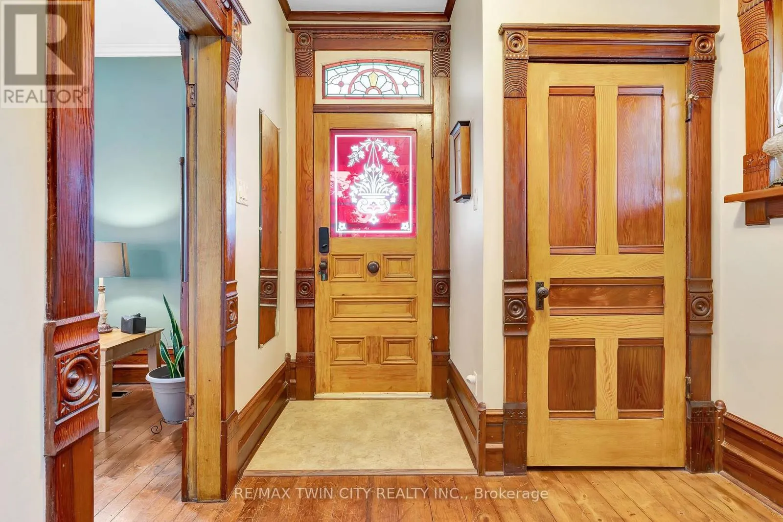 Cross Streets: Blair. ** Directions: Hwy. 23 South to Main St., to Blair St., to Ellen. Welcome to 199 Ellen St, a charming century home overflowing with character located in the quiet family friendly town of Atwood, just a 45 min drive to Kitchener/Waterloo. This 5 bed, 2 bath, 2.5 story has beautiful curb appeal with an inviting wrap-around porch, solid red brick, lush landscaping, and a stone driveway to fit 6+ cars. Inside, the timeless appeal is seamlessly blended with modern upgrades from the elegant detail of the wood trim, some original stained glass windows and hardwood throughout to the classically renovated kitchen and bathrooms. The large entryway takes you to a cozy living room with large windows to let in plenty of natural light, and a gas fireplace where you will love to relax after a long day. From here you can separate the large formal dining room with traditional pocket doors. You will also find a den/office on this main level which is big enough to use to create a 6th bedroom on the main floor. Down the hall from the foyer is the gorgeous, modern-meets-rustic kitchen, with custom cream cabinetry and island, black granite countertops, gas stove and wood paneled ceiling, combining tradition and luxury. From here you can head through the mudroom where you'll find main floor laundry and a modern updated 3 pce bath. The oversized sliders will lead you to the peace and tranquility of the huge, treed backyard where you can enjoy the stunning gardens or relax on the private, well designed deck with a bar, or under the canopy where you can cool off under the fan. Store your toys and tools in the custom crafted shed. Upstairs there is an exquisitely designed electric fireplace with white shiplap, another fully updated 4 pce bathroom and 5 spacious bedrooms with one leading to your upper balcony, a great place to enjoy a morning coffee. If you're looking for more space or extra storage, there's a staircase to an attic with 500 sq feet to make your own. A perfect place to raise your children, close to community center/pool, schools and more! (id:27476)