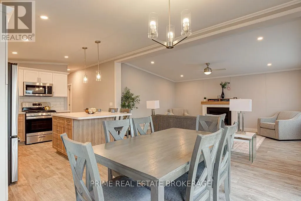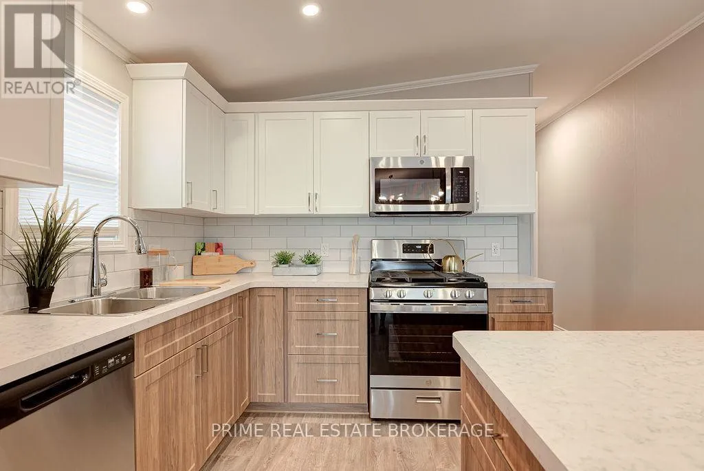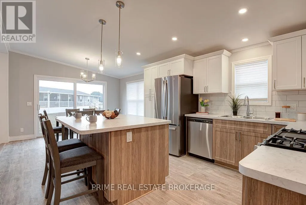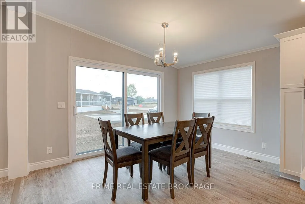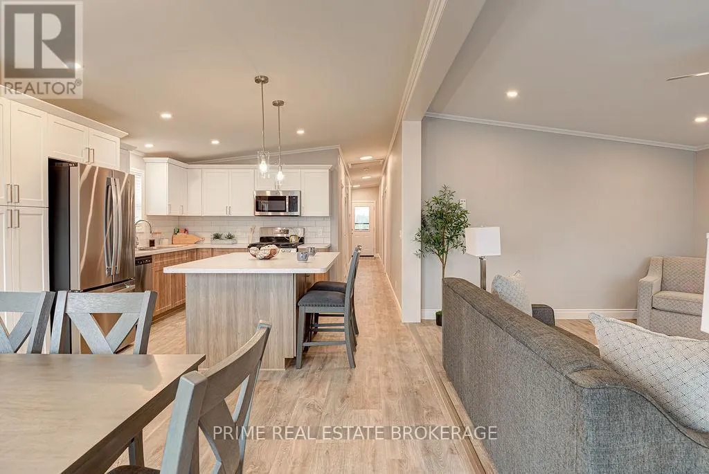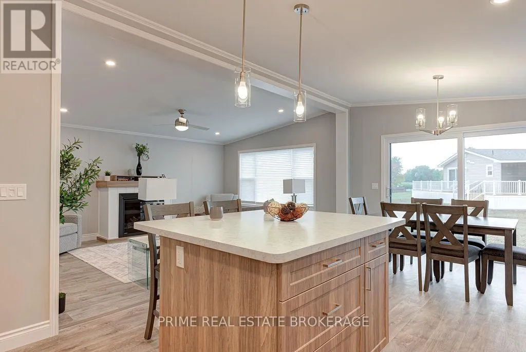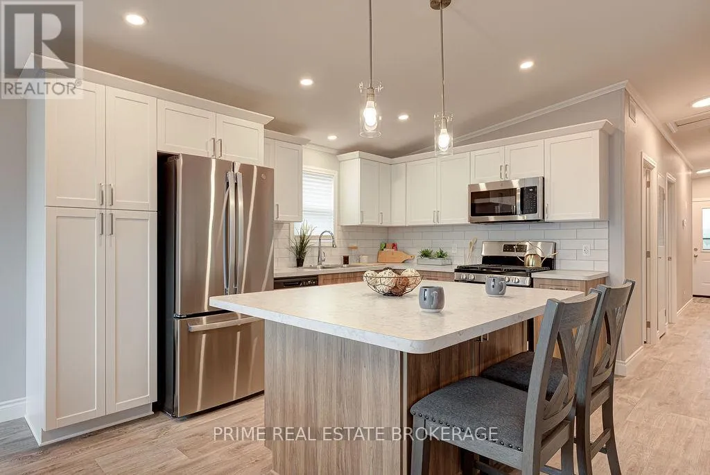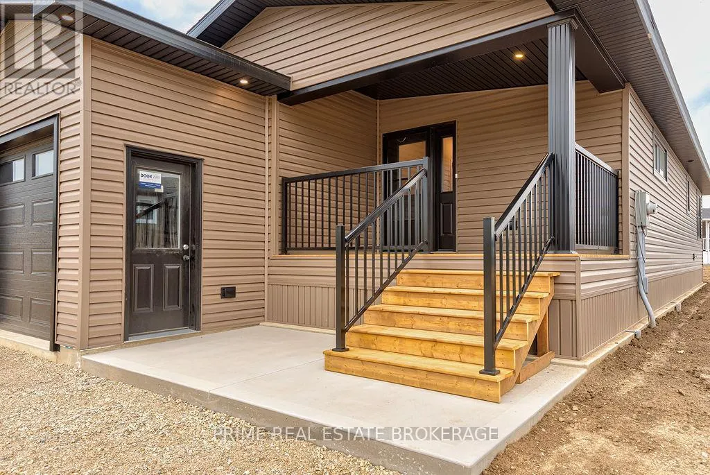 Cross Streets: Meadowview. ** Directions: Go east on Hwy 86 out of Listowel, The Village is on the right, turn right on Village Ave., right onFairview, right on Meadowview, left on Carolynn Way. Experience the perfect fusion of style, comfort, and simplicity in this newly constructedCanadian-built Northlander modular home, ideally located in The Village: a peaceful, well-maintained community just east of Listowel. This thoughtfully designed 2-bedroom,2-bathroom home boasts a 12'x 24' garage, and offers a welcoming layout with high-end features and modern convenience. An inviting 13' x 5' covered front porch is ideal for relaxing and enjoying the community's serene setting. Inside, a bright, open-concept interior where the kitchen, dining, and living area flow seamlessly, is highlighted by large windows, a patio door, and contemporary lighting. The stylish kitchen is equipped with elegant two-tone cabinetry, stainless steel GE appliances, a ceramic tile backsplash, and a functional island with seating for casual dining or entertaining guests.The spacious living room is anchored by a built-in natural gas fireplace, providing warmth and ambiance during cooler months. A primary bedroom retreat features a wall to wall closet and a3-piece ensuite. The second bedroom and additional 3-piece guest bathroom provide plenty of space for visiting family and friends. Access the garage through the laundry room, with an abundance of storage space. Paved streets and walking trails along the perimeter of the community offer a healthy lifestyle for residents, who also benefit from a welcoming clubhouse offering social events and a sense of connection. With shopping, dining, curling, golf, and other amenities just minutes away in Listowel, this community provides a lifestyle that is as busy or as flexible as desired, in a friendly and relaxing setting. NOTE: Land is leased($575/month). Modular home is owned-a mortgage specialist can assist, if needed. (id:27476)