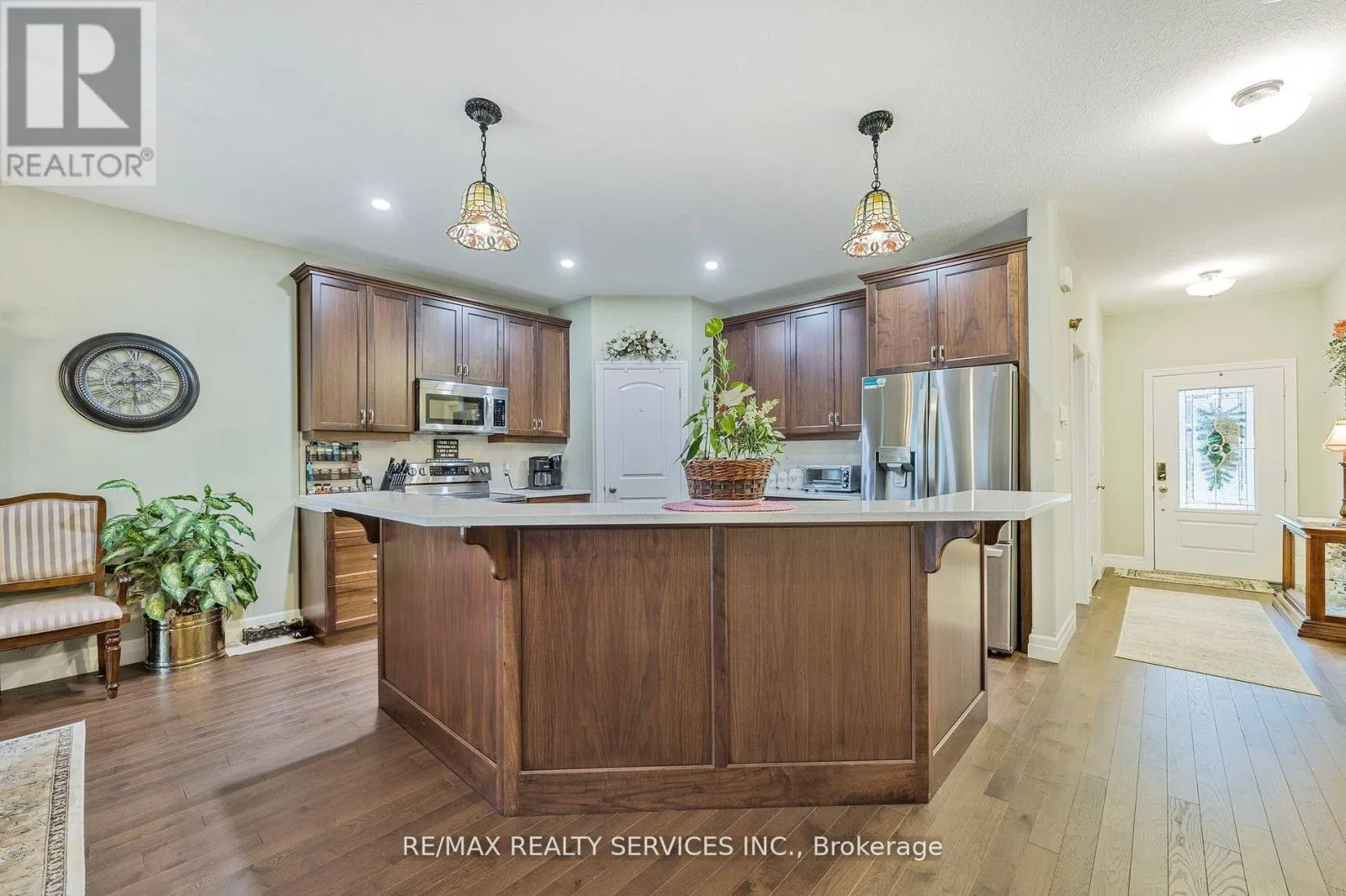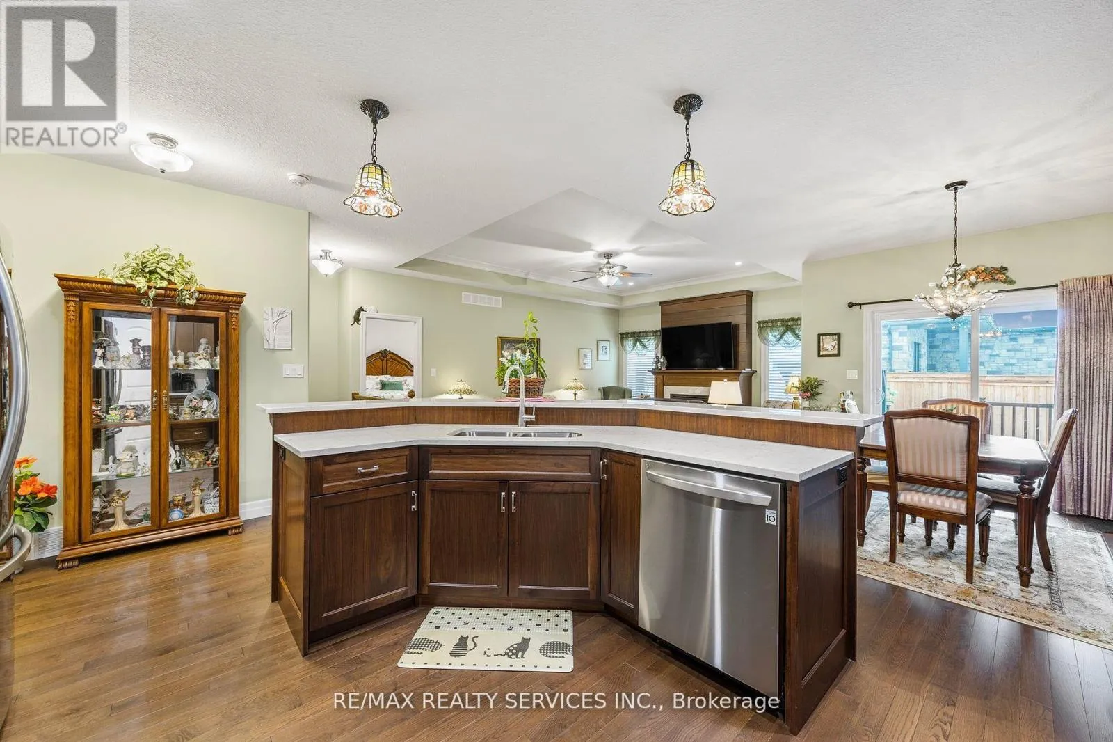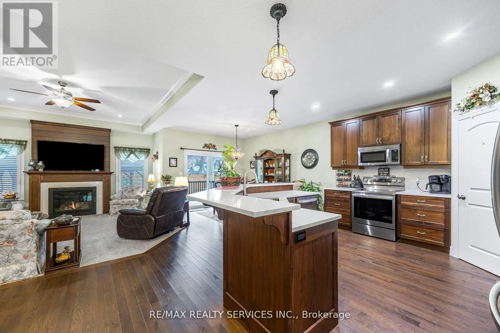 Cross Streets: Wallace Ave/Main St E. ** Directions: Wallace Ave to Main St E. Ready for bungalow living in a small town with all the amenities? This is your sign to visit this three-year-new O'Malley-built bungalow offering style, comfort, and convenience of main-floor living. Set on a premium corner lot with a four-car driveway and double garage, this home is nestled on a quiet street just steps behind the Listowel Golf Club. A welcoming front porch leads into a bright, open-concept layout designed with accessibility and flow in mind. Soaring 9' ceilings, hardwood floors, and generous windows create a warm, airy feel throughout. The gourmet kitchen is a chefs delight, featuring a two-tier island, stainless-steel appliances, pot lighting, and a walk-in pantry. Seamlessly connected, the dining area opens onto a spacious covered deck and patio with large gazebo, perfect for entertaining and relaxing. The fully fenced backyard offers welcomed privacy and security.The living room is both inviting and elegant with a tray ceiling, pot lights, and a striking gas fireplace feature, an ideal spot to unwind. The spacious primary suite offers a walk-in closet and a private four-piece ensuite with a walk-in shower for comfort and ease. Two additional bedrooms and a full bath provide flexibility for guests, hobbies, or a home office, all on the same level for ultimate convenience.Downstairs, the partially finished basement with oversized windows and a full three-piece bath is ready for your personal touch.Whether you're a downsizer wanting a manageable, modern space, or simply appreciate the simplicity of one-level living, this home makes everyday life easier without compromising on style. Walking distance to the Kinsmen Trail and minutes from shopping, dining, schools, and parks. (id:27476)