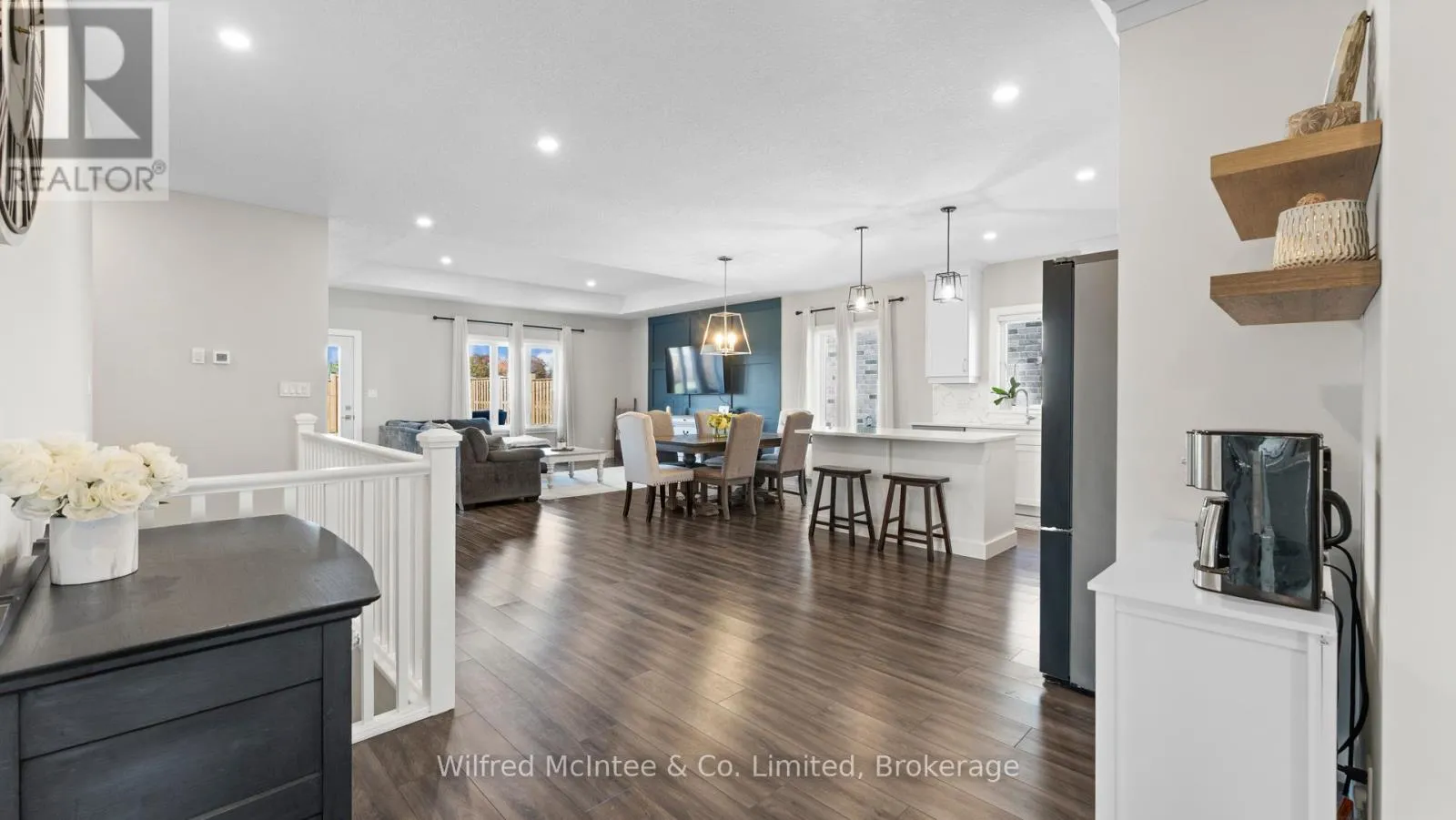 Cross Streets: Evans Street. ** Directions: Going South on Highway 23 turn West on Kincaid St and turn South on Winchester Ave. S. Welcome to this beautiful detached bungalow nestled in a newer subdivision in the vibrant community of Listowel. This move-in ready home offers an ideal blend of comfort, functionality, and modern living. The main level features a bright and spacious open-concept layout with a stylish kitchen complete with an island - perfect for entertaining or casual family meals. Adjacent to the kitchen are the dining area and cozy living room, creating a seamless flow for everyday living. Three generous bedrooms and two full bathrooms, including a primary ensuite, complete the main floor. The recently renovated lower level adds incredible value with two additional bedrooms, a full 4-piece bathroom, a large laundry room with ample storage, and a spacious family room featuring a built-in entertainment unit with even more storage. Outside, enjoy the fully fenced backyard from the comfort of your wood deck ideal for BBQs or quiet evenings. Additional features include a double-car garage, a paved driveway, and modern finishes throughout. Don't miss your chance to own this fantastic family home in one of Listowel's most sought-after areas! (id:27476)