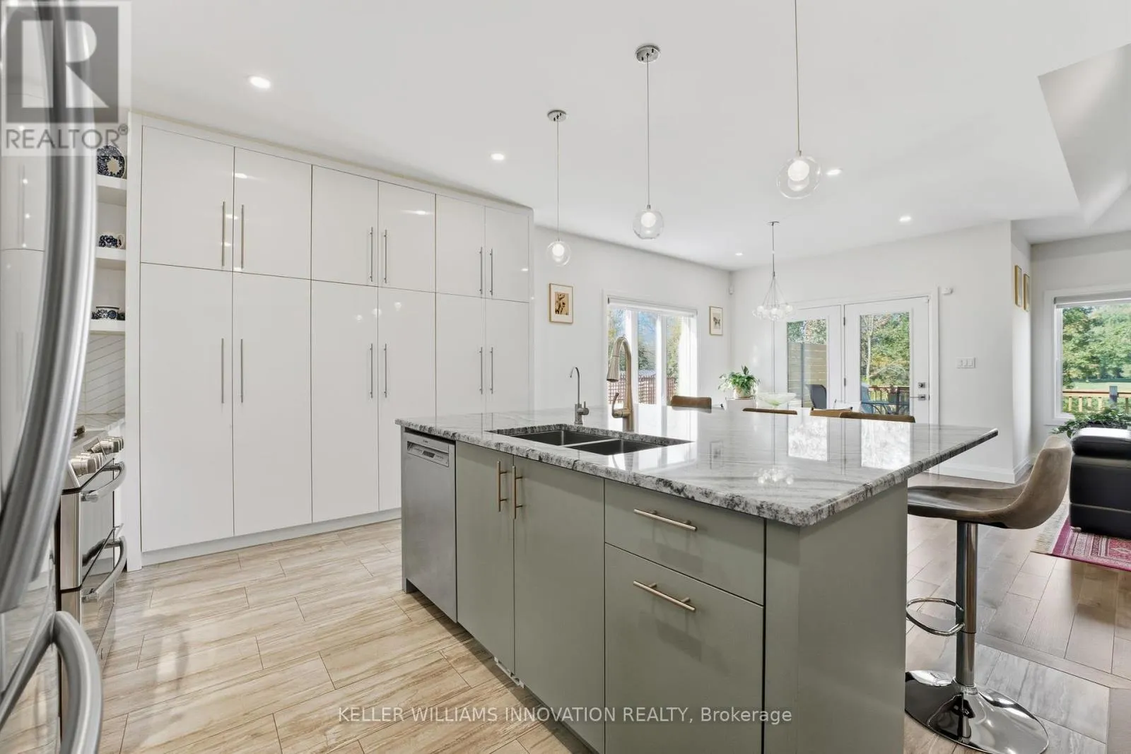 Cross Streets: Cilmer Crescent/Rogers Rd. ** Directions: Gilmer Crescent/Rogers Rd. Welcome to 19 Gilmer Crescent, Listowel - Backing Onto the Golf Course! This beautifully maintained home, built in 2019, offers the perfect blend of modern design and everyday comfort all while enjoying scenic views of the golf course from your own backyard. Step out onto the stunning two-tier deck, complete with an awning, ideal for entertaining or relaxing in style. Inside, you'll find a bright and spacious main level featuring hardwood flooring, a tray ceiling in the living room, and a cozy gas fireplace. The modern kitchen is a showstopper with flat panel cabinets offering ample storage, granite countertops, a stylish backsplash, and an oversized island with seating for four. The primary bedroom includes a large walk-in closet and a spa-like ensuite bathroom with double sinks, abundant storage, floor-to-ceiling tile, and a walk-in shower. Main-floor laundry adds convenience to daily living. The fully finished basement offers even more living space, with a generous rec room, two additional bedrooms, a full bathroom, and oversized windows that let in plenty of natural light. Throughout the home, bright neutral walls and pot lights enhance the modern, airy feel. This home is complete with a charming front porch and a double car garage. (id:27476)