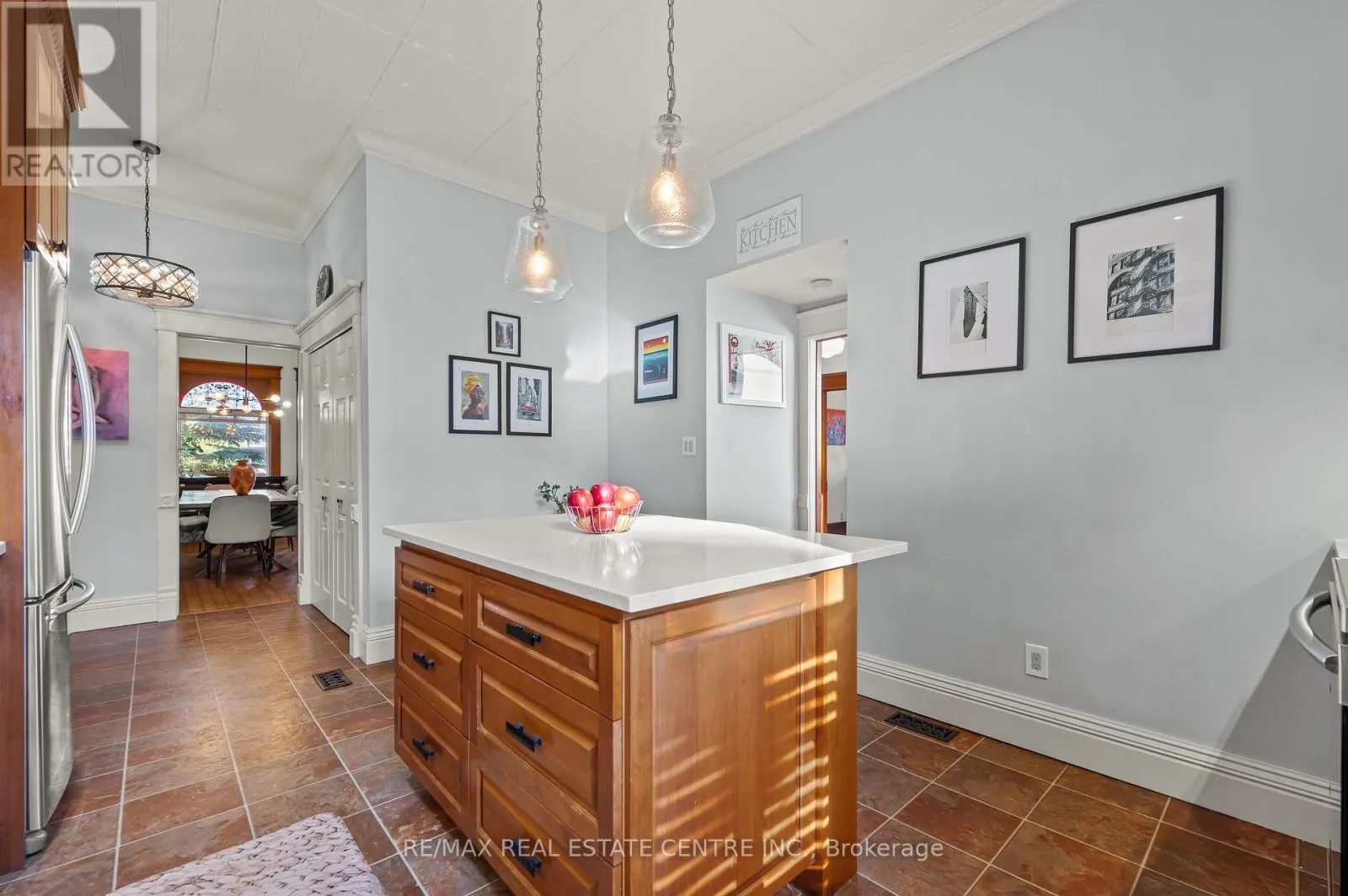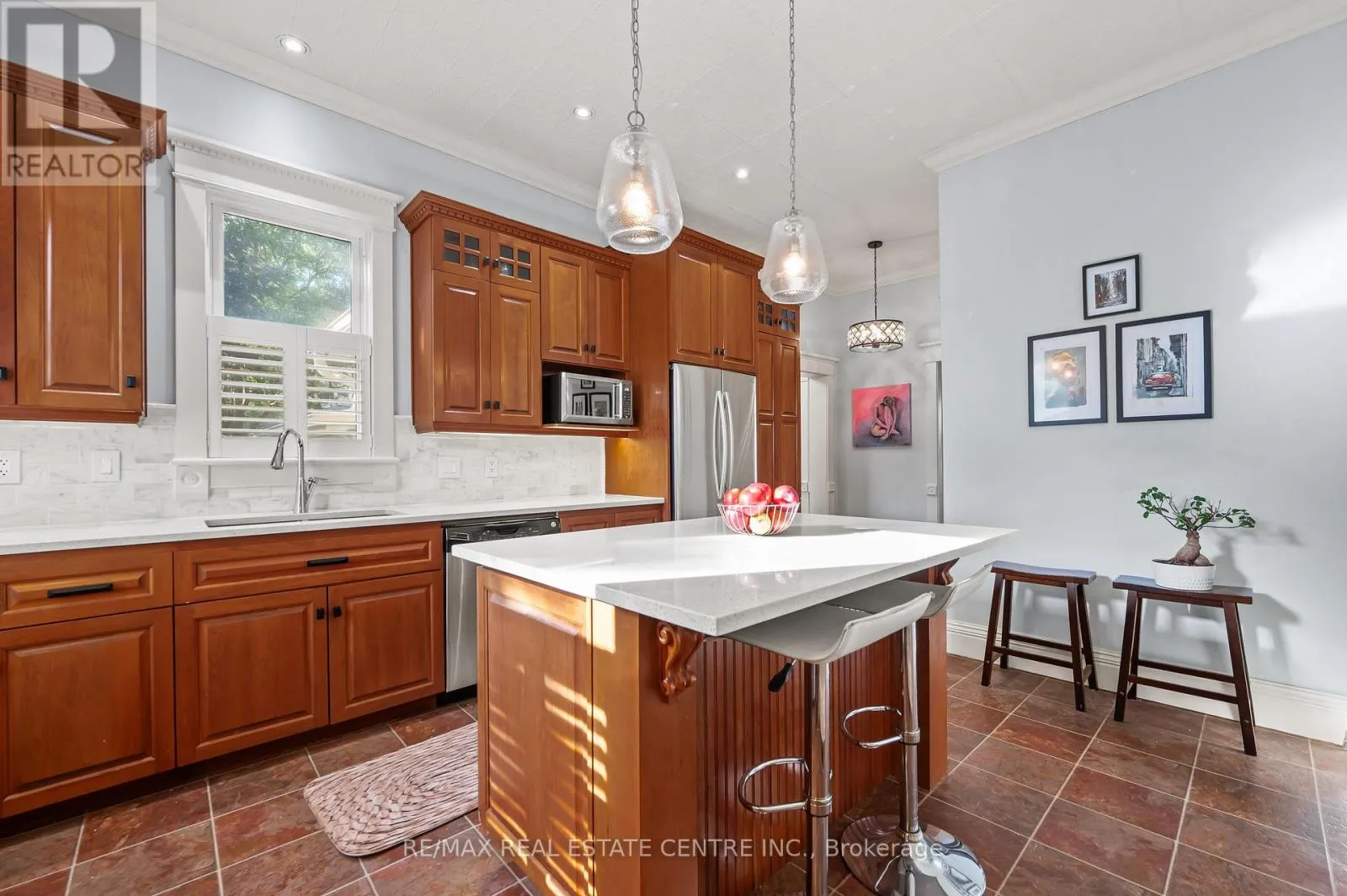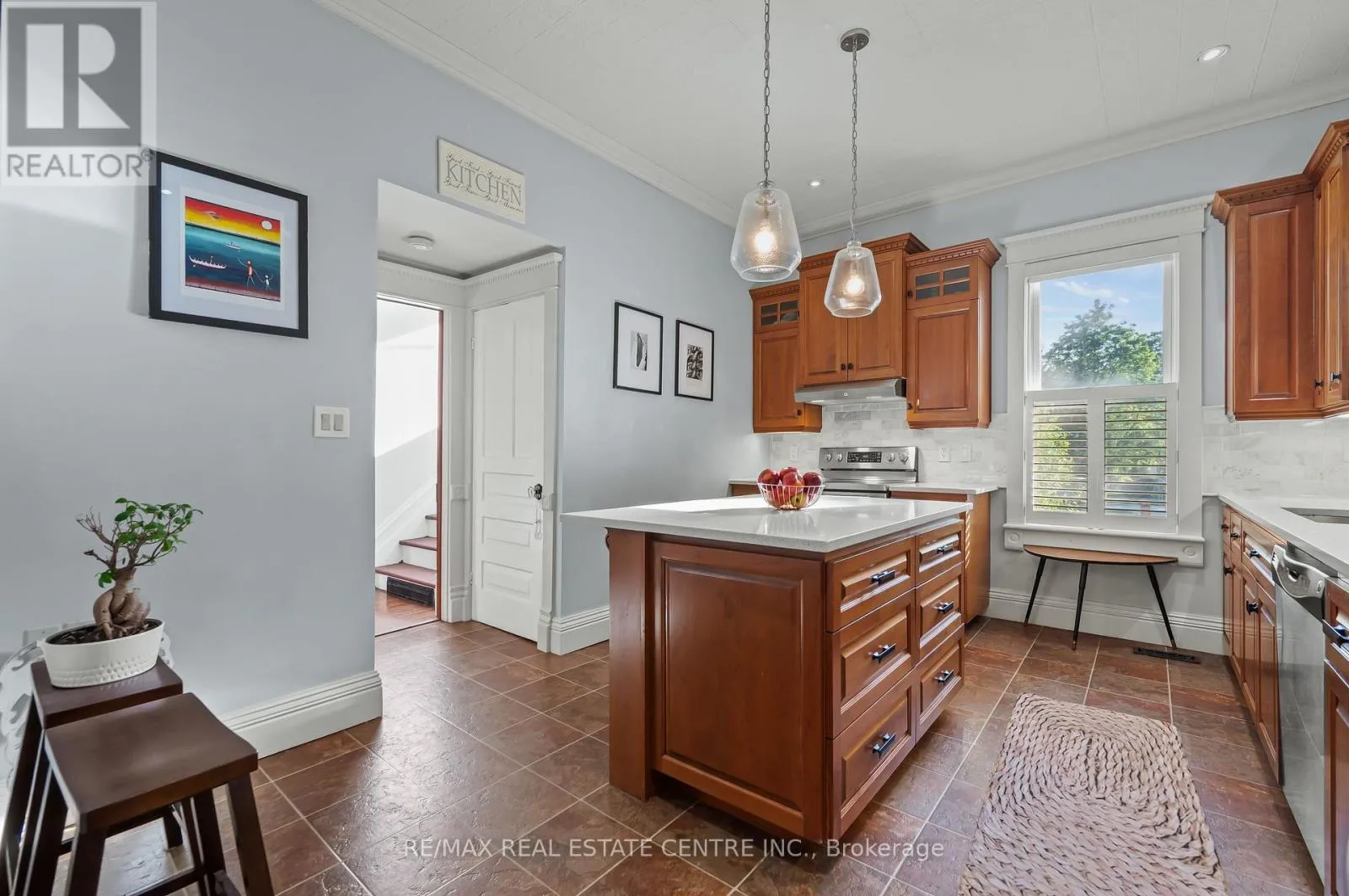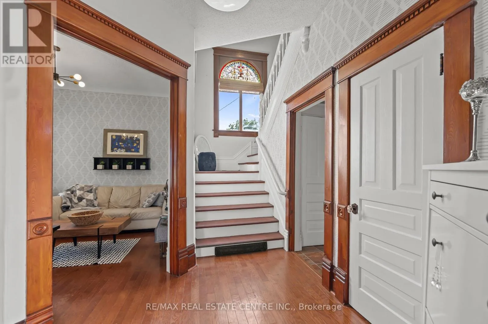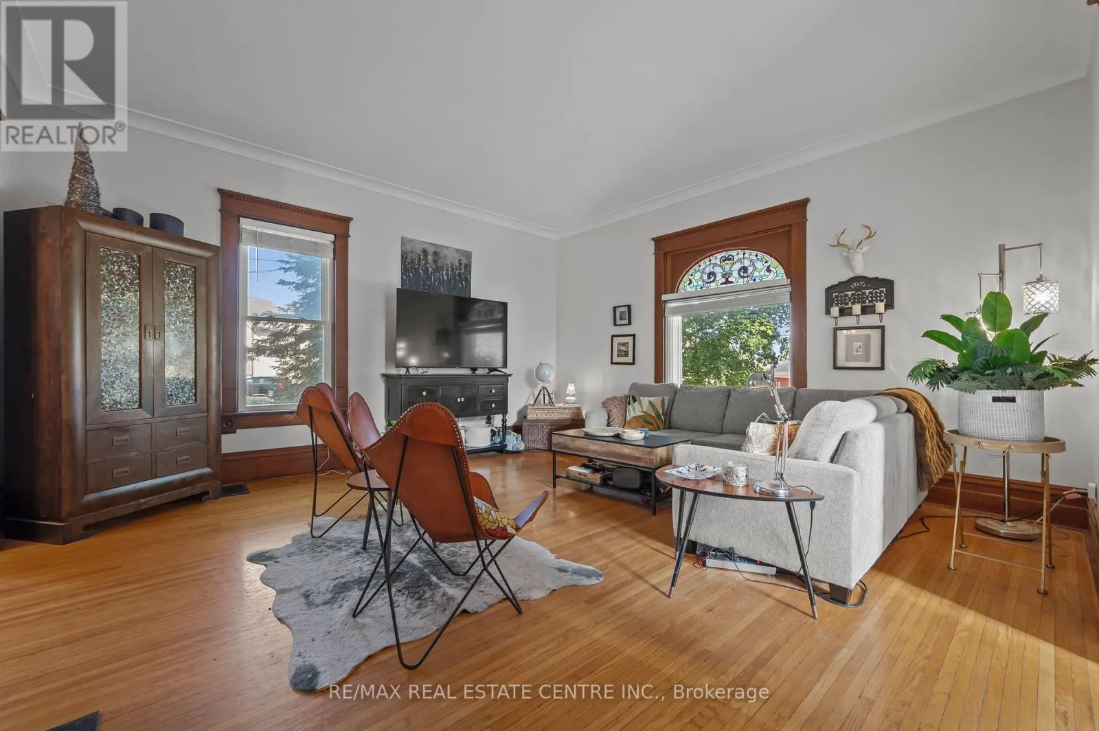 Cross Streets: Binning St W. ** Directions: Corner of Wallace Ave N and Binning St W. Step into timeless elegance with this beautifully preserved century home, offering over 3,500 sq ft of finished living space and brimming with charm and character. Located in the vibrant heart of Listowel on a spacious corner lot, this 5-bedroom, 2-bathroom home blends historic detail with thoughtful updates, making it ideal for families, or those looking to run a home-based business - there's a dedicated space conveniently located on the main floor perfect for an office. Rich in historic detail, the home features stunning stained glass throughout, soaring ceilings, and generous room sizes that reflect its heritage. The kitchen has been tastefully updated with solid oak cabinets, new stainless steel appliances (2025), a pantry, and a striking hand-cut Turkish marble backsplash. The main bathroom was converted in 2024 from a laundry room into a stylish and functional 4-piece bath. Additional updates include new lighting throughout the home, some newer double-hung windows, fully parged interior walls, and sprayed urethane insulation for added comfort and efficiency. Enjoy your mornings on the large covered front porch and host summer evenings under the backyard gazebo. Located along the school walking route, snow removal on the sidewalks is conveniently handled by the town - just one of the many perks of this unique corner lot location. Full of warmth, space, and possibility, this home is a rare gem waiting to welcome its next chapter. This is your chance to own a piece of Listowels history. Don't miss it! (id:27476)