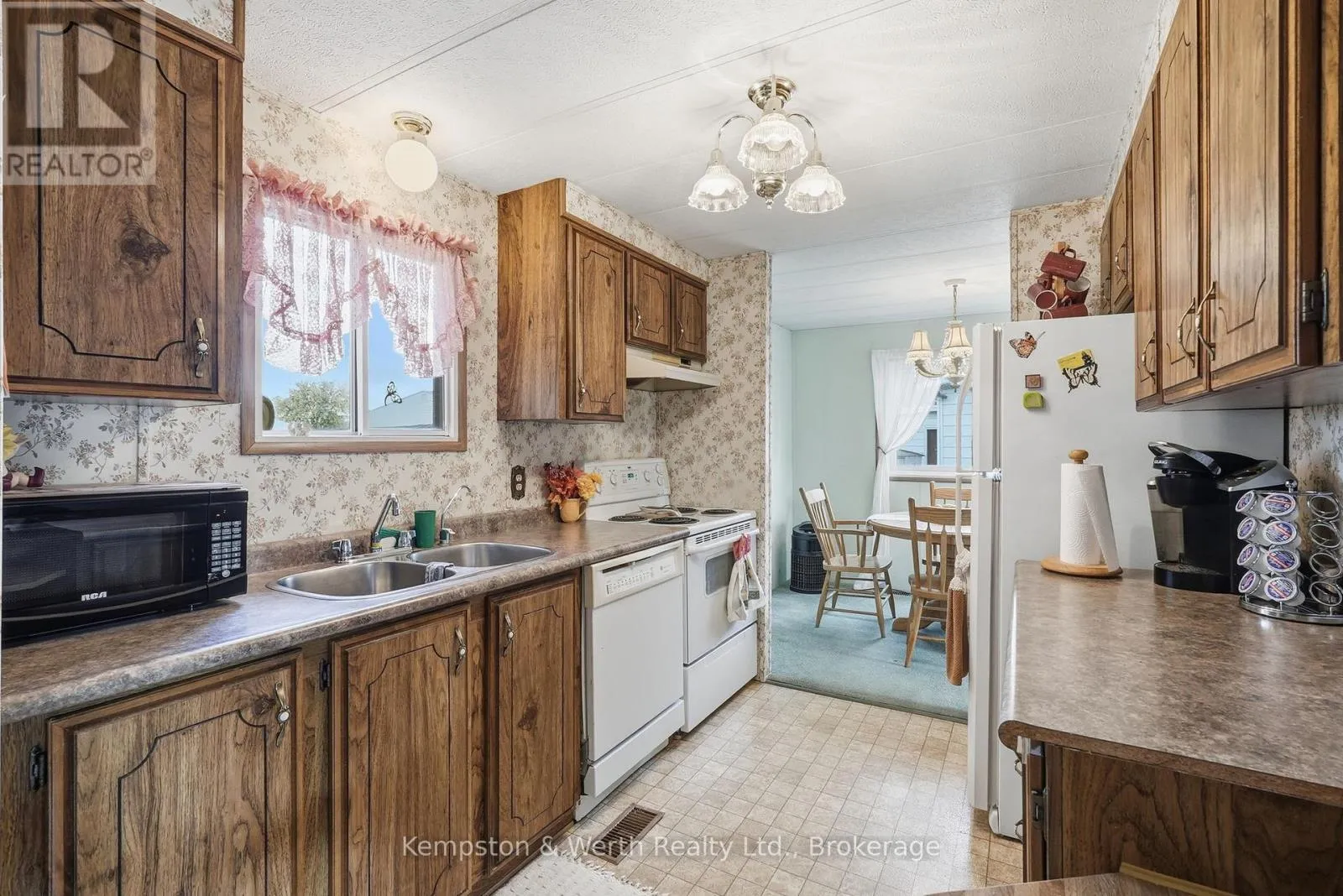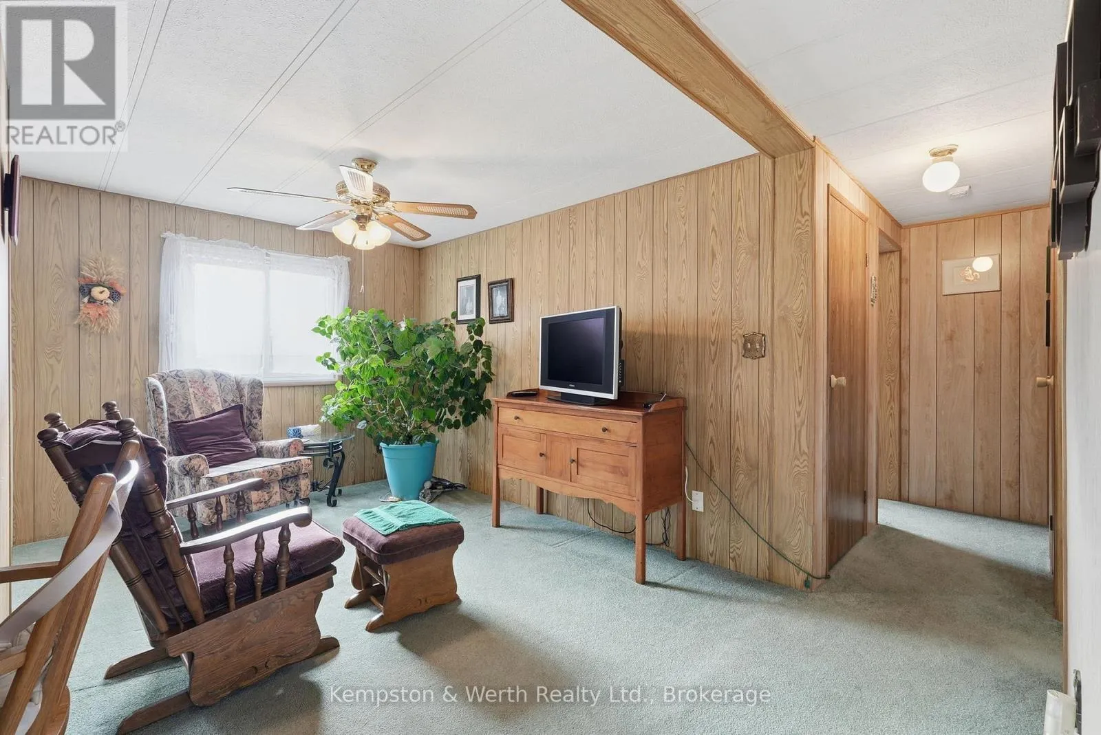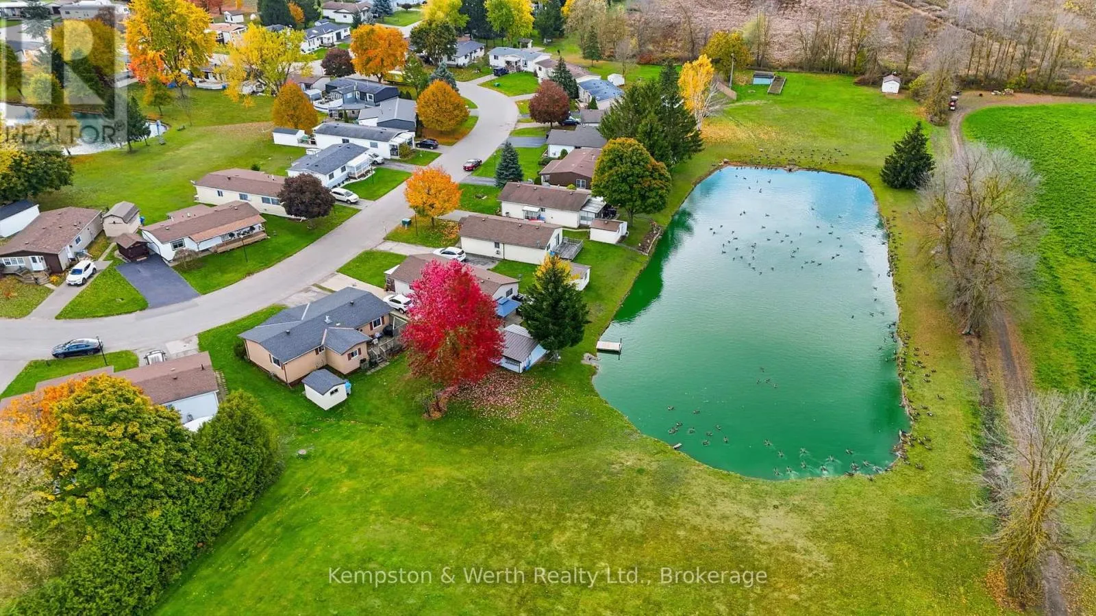Cross Streets: Hwy 86. ** Directions: Highway 86 East of Listowel. Welcome to your charming two bedroom modular home located in The Village just on the edge of Listowel. This inviting residence is designed with comfort and convenience in mind, offering all the essentials you need on one level. Step inside to discover a spacious layout that maximizes every square foot. The home features ample storage throughout, ensuring that you have plenty of room for your belongings without sacrificing living space. One of the standout features of this property is the picturesque view as it backs onto a tranquil pond, providing peaceful backdrop to your daily life. Move in ready this home has been wall maintained with a new roof installed in 2020 and new furnace added in 2022. Embrace the relaxing lifestyle in this home where every detail has been considered for your ease and enjoyment. (id:27476)