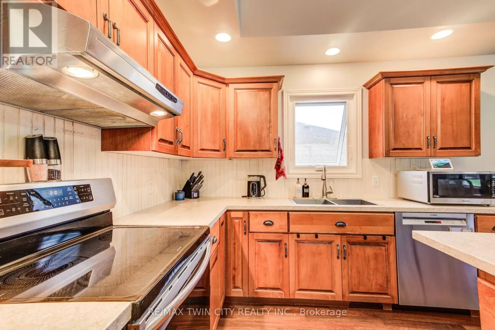 Cross Streets: Elma. ** Directions: Main street to Elma to Boyne. Backs Onto a Private Park - No Rear Neighbours! Welcome to this beautifully updated bungalow that combines comfort, quality, and a one-of-a-kind setting. Perfectly positioned backing onto a private park, this home offers peace, privacy, and scenic views with no rear neighbours! Step inside to a bright open-concept main floor featuring a spacious living and dining area that flows effortlessly into a modern kitchen with maple cabinetry, a large island, and a convenient pantry-ideal for family meals and entertaining. The main level offers three comfortable bedrooms and a fully renovated five-piece bathroom (2023) designed for today's busy family. The fully finished lower level expands your living space with two additional bedrooms, a beautifully updated three-piece bathroom (2023) with in-suite laundry, and a warm, inviting recreation room featuring a cozy gas fireplace-perfect for movie nights or relaxing with friends. This home is truly move-in ready, with major updates already completed: Roof (2021), Windows (2021), Furnace and A/C (2019), Water Softener (2018), Tankless On-Demand Hot Water Heater (2023), Garage Door (2022), Bathrooms (2023), and Front Landscaping (2024). Step outside to enjoy your newer deck (2020) overlooking your private backyard oasis-a serene space for barbecues, morning coffee, or simply unwinding in nature. Located close to shopping, grocery stores, restaurants, walking trails, and top-rated schools, this property offers both convenience and tranquility. With its impressive list of updates, desirable layout, and unbeatable park setting, this park-backing bungalow is the perfect place to call home. (id:27476)