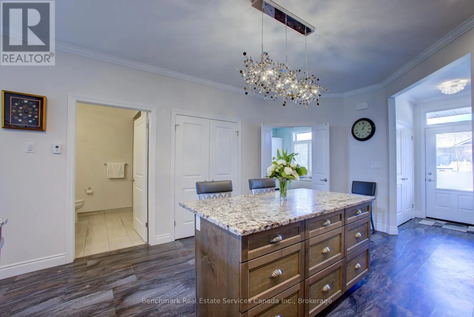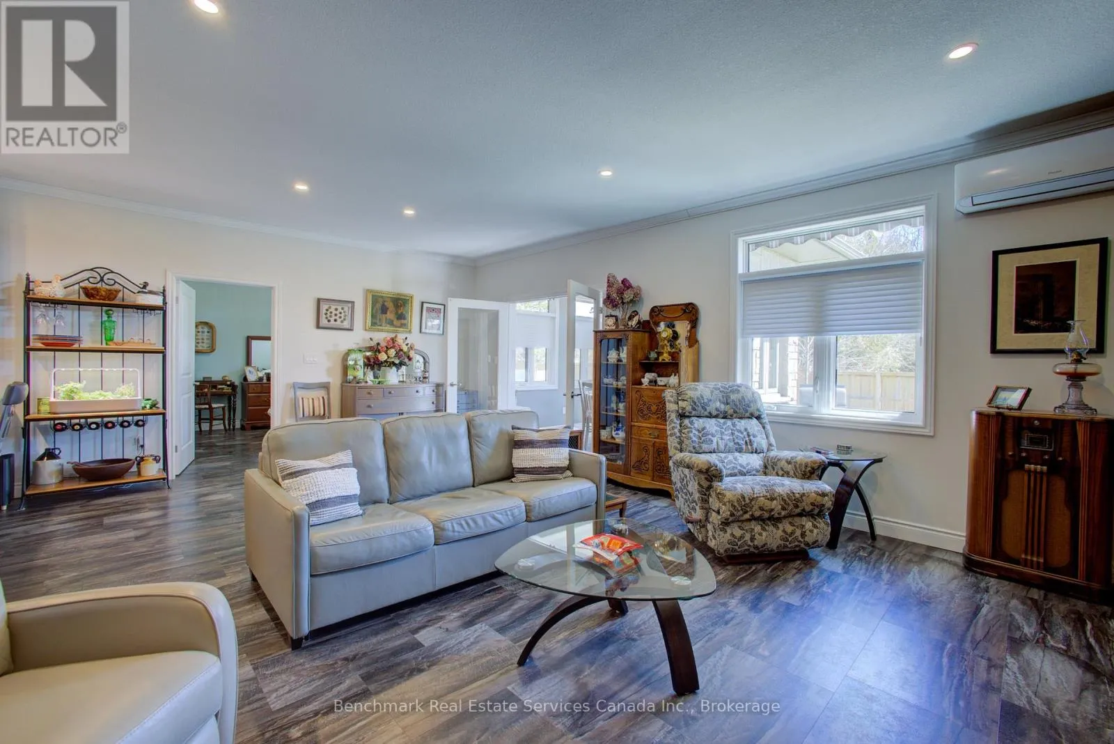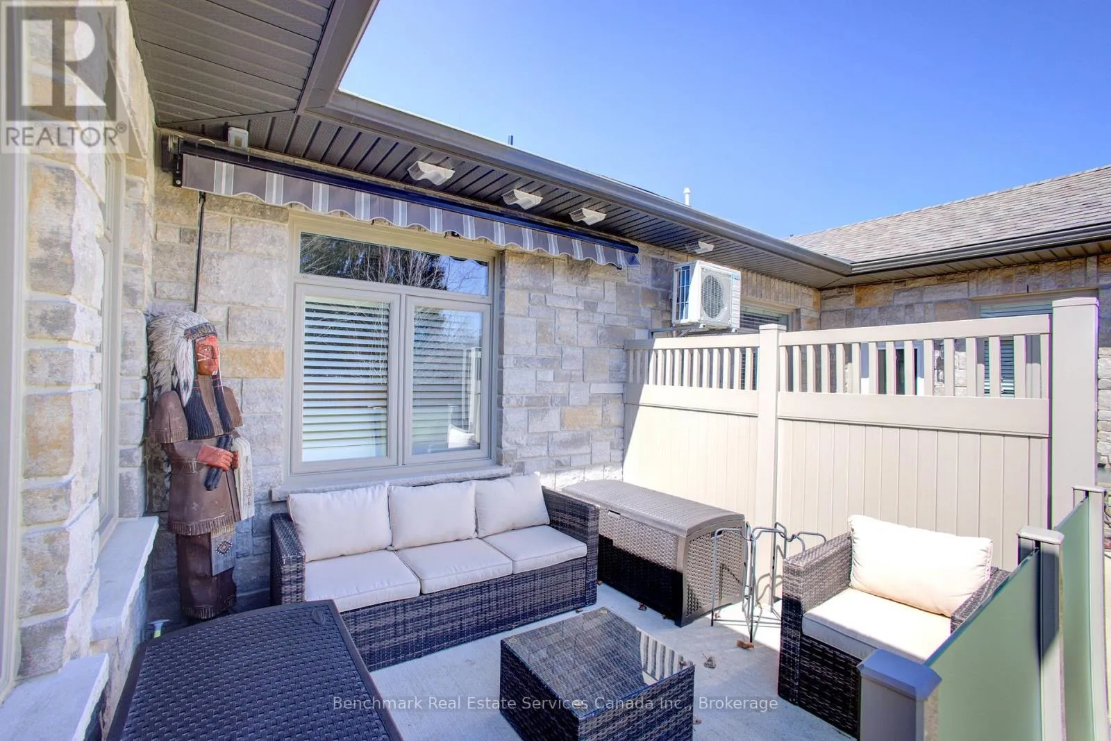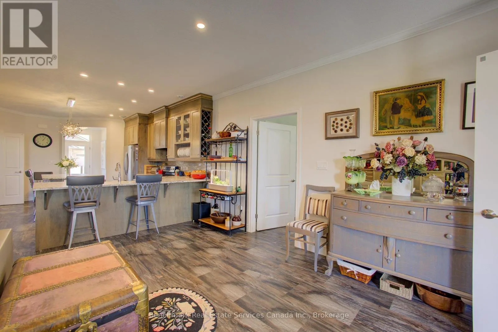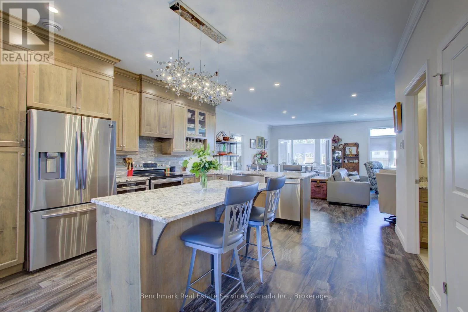 Cross Streets: Mitchell Road S and Kincaid St. ** Directions: From Mitchell Road South and Kincaid St, Head north through the lights, turn left at the carwash to enter the Sugarbush Private Road. Welcome to Sugarbush, Listowels newest retirement community, designed for folks 55 and over. This Sugarbush Aspen II model, the largest of the Sugarbush model homes, features extensive upgrades including crown mouldings throughout the main house, built in TV credenza & cabinets. Built in office desk and storage, Wilson Solutions customized closets. Kitchen upgrades include oversized island and granite counters, customized range hood, drawer microwave, farmhouse sink, to name a few. The home is heated with a Navien Natural Gas Boiler providing in floor, hot water heat for the ultimate comfort on cooler days. A Daikin mini split Air Conditioner bonnet/condenser with heat pump provides all season comfort. Outside you will be able to entertain or relax on one of the two cement patios, featuring a natural gas fire pit and natural gas hook up for your bbq, while the second patio offers a privacy glass enclosure for quieter times. Each patio provides shade at the touch of a button with automatic retractable awnings. This Aspen II home offers an oversize three piece bathroom with tiled shower as well as a three piece ensuite which also has a tiled shower. Situated in a desirable location within the Sugarbush community, offering a large exclusive use common area back yard with privacy fence, this home truly needs to be seen to be appreciated. (id:27476)