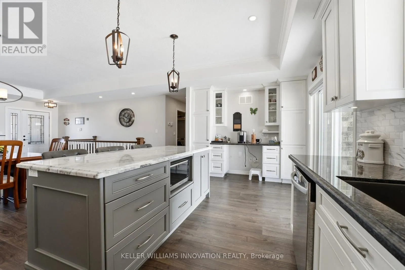 Krotz St W/Wallace Ave S WALK-UP, FIREPLACE, & MAIN FLOOR LAUNDRY. This custom-built bungalow offers exceptional curb appeal and an impressive 6-car driveway, along with a double car garage and convenient walk-up access from the basement to the garage. Step inside to the open-concept main floor designed for both everyday living and entertaining. The inviting living room features a cozy fireplace and flows seamlessly into the dining area and stunning custom kitchen. You'll love the thoughtful details, including granite countertops, a quartz-topped island with built-in microwave shelf, and an elegant tray ceiling that adds a touch of sophistication. The main level offers two spacious bedrooms and two full bathrooms, including a beautiful primary retreat complete with a walk-in closet and a luxurious 4-piece ensuite showcasing a double vanity and glass shower. A convenient laundry/mud room with folding counter adds everyday practicality and direct functionality to the space. Downstairs, the fully finished basement expands your living area with a generous rec room featuring an electric fireplace, two additional bedrooms, and a full bathroom. Enjoy outdoor living in the fully usable backyard featuring a covered concrete deck plus a handy storage shed for all your tools and toys. This thoughtfully designed home blends comfort, style, and functionality in a desirable location. (id:27476)