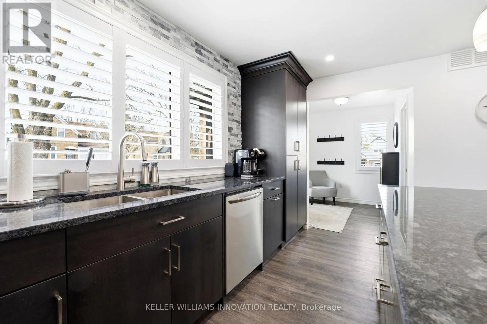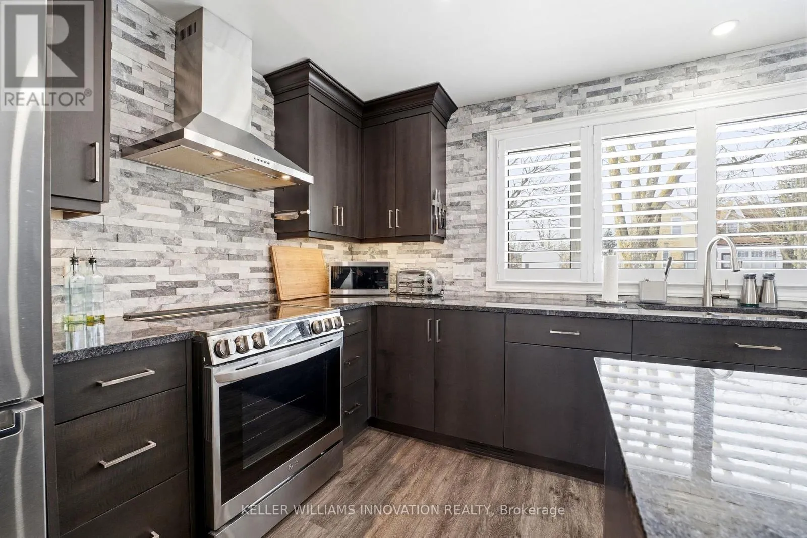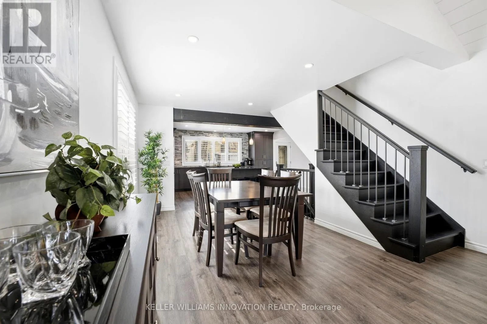 Tanner Ct/Campbell St W VAULTED CEILING, OVERSIZED KITCHEN, AMPLE BEDROOMS. Set on a quiet corner lot, this inviting home at 475 Campbell St W offers comfort, charm, and plenty of space for everyday living. A welcoming front porch sets the tone, while major updates-including the roof, windows, appliances, bathrooms, kitchen, and A/C-have all been completed within the past 5-6 years. Inside, the warm and cozy vaulted living room features exposed beams and a striking stone fireplace. Massive sliding doors open onto a covered back deck, creating a seamless blend of indoor and outdoor living. Large windows throughout the home fill the space with an abundance of natural light. The oversized kitchen is both functional and inviting, complete with ample cabinetry, an eat-in island, and newer appliances. Windows overlooking the front of the home add even more brightness to this central gathering space. A main floor bedroom and laundry add everyday convenience and flexibility. The second level offers two bedrooms and a full bathroom, and in total, the home features five bedrooms and three full bathrooms-ideal for a growing family or hosting guests. The finished basement includes two additional bedrooms, a spacious rec room, and a cozy electric fireplace, perfect for movie nights or relaxed weekends. Outside, the corner lot provides extra room and privacy on a peaceful street, along with a concrete driveway for added convenience. Located in Listowel, you're close to schools, trails, and local shops and restaurants-everything you need for comfortable small-town living. (id:27476)