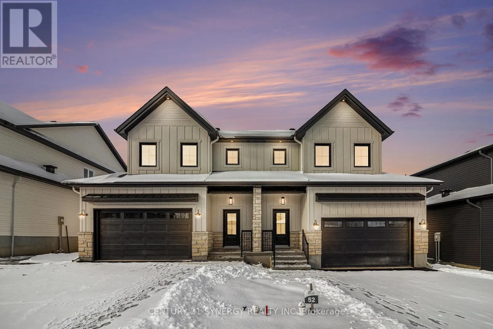 Cross Streets: McLean/Villeneuve. ** Directions: From Trans-Canada Hwy/ON-417 E, Take exit 58 toward Moose Creek/Monkland/Cornwall, merge onto ON-138 S, Turn right onto McLean Rd, Turn left onto Jen Ave, becomes Calco Cres, becomes Villeneuve street. Beautiful Modern Farmhouse! Built by a trusted local builder, this stunning semi-detached 2-storey home offers approximately 1,761 sq. ft. of thoughtfully designed living space. Featuring 3 bedrooms, 3 bathrooms, and a spacious double-car garage, there's plenty of room for your vehicles and country toys. The main floor boasts an open-concept layout with quartz countertops, a large 9-ft island with breakfast bar, and a walk-in pantry-perfect for cooking, entertaining, or family gatherings. Enjoy luxury vinyl flooring throughout the entryway, living room, dining room, kitchen, bathroom, and hallway, while plush carpeting adds comfort to the upstairs bedrooms. The primary suite features a generous walk-in closet and a 4-piece ensuite. The second and third bedrooms are spacious and include ample closet space. A full bathroom and convenient second-floor laundry complete the upper level. Outside, unwind on the massive covered porch-a perfect spot to enjoy peaceful country evenings. Complete with central A/C for year-round comfort & eavestrough. No Appliances included. (id:27476)
