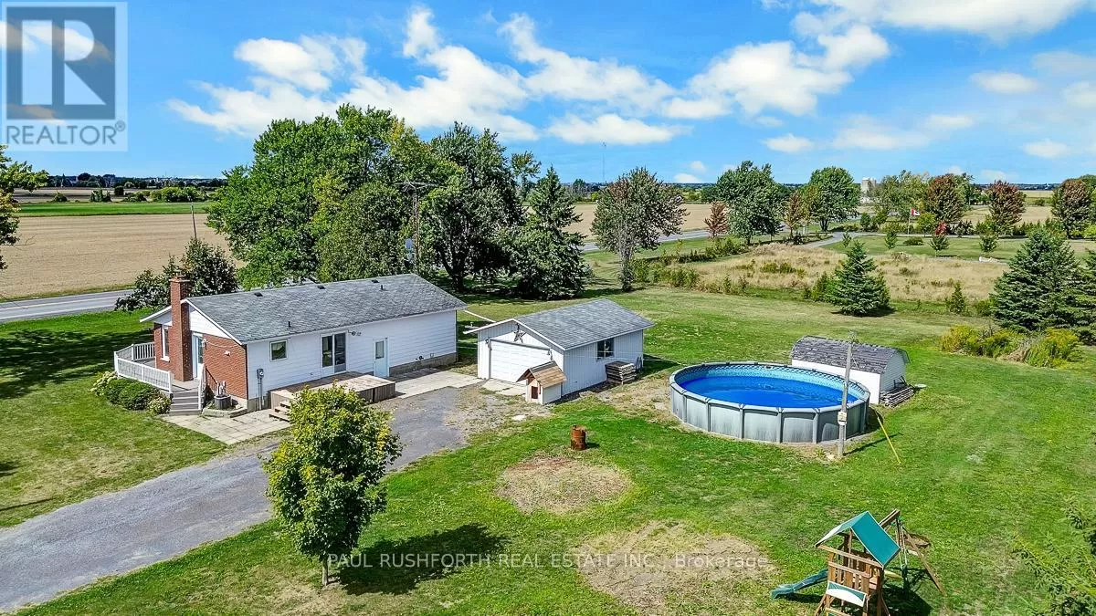 Highway 11 and Concession 1-2 Rd Welcome to this charming 3+1 bedroom bungalow, nestled on a quiet country acre. Bursting with potential, this home offers a wonderful opportunity for someone ready to add their personal touch and bring new life to a solid country property. The main floor features three spacious bedrooms, a full bathroom, newer windows and hardwood floors. The open-concept kitchen and dining area flow into a bright and welcoming living room - an ideal space to gather with family and friends. Step outside to the wraparound composite deck and take in the peaceful country views. The fully finished basement includes a cozy wood stove, an additional bedroom and plenty of room for hobby space, or a home office. Outside, with one acre, you'll find a detached 2-car garage with lots of space for vehicles, tools, or projects, plus a 25ft above-ground pool (2023) ready for summer enjoyment. With a little TLC and a few updates, this country bungalow could truly become your dream home - peaceful, private, and full of potential, all just minutes from conveniences. The roof will be replaced November 2025. Book your private showing today! Some photos have been virtually staged/enhanced. (id:27476)