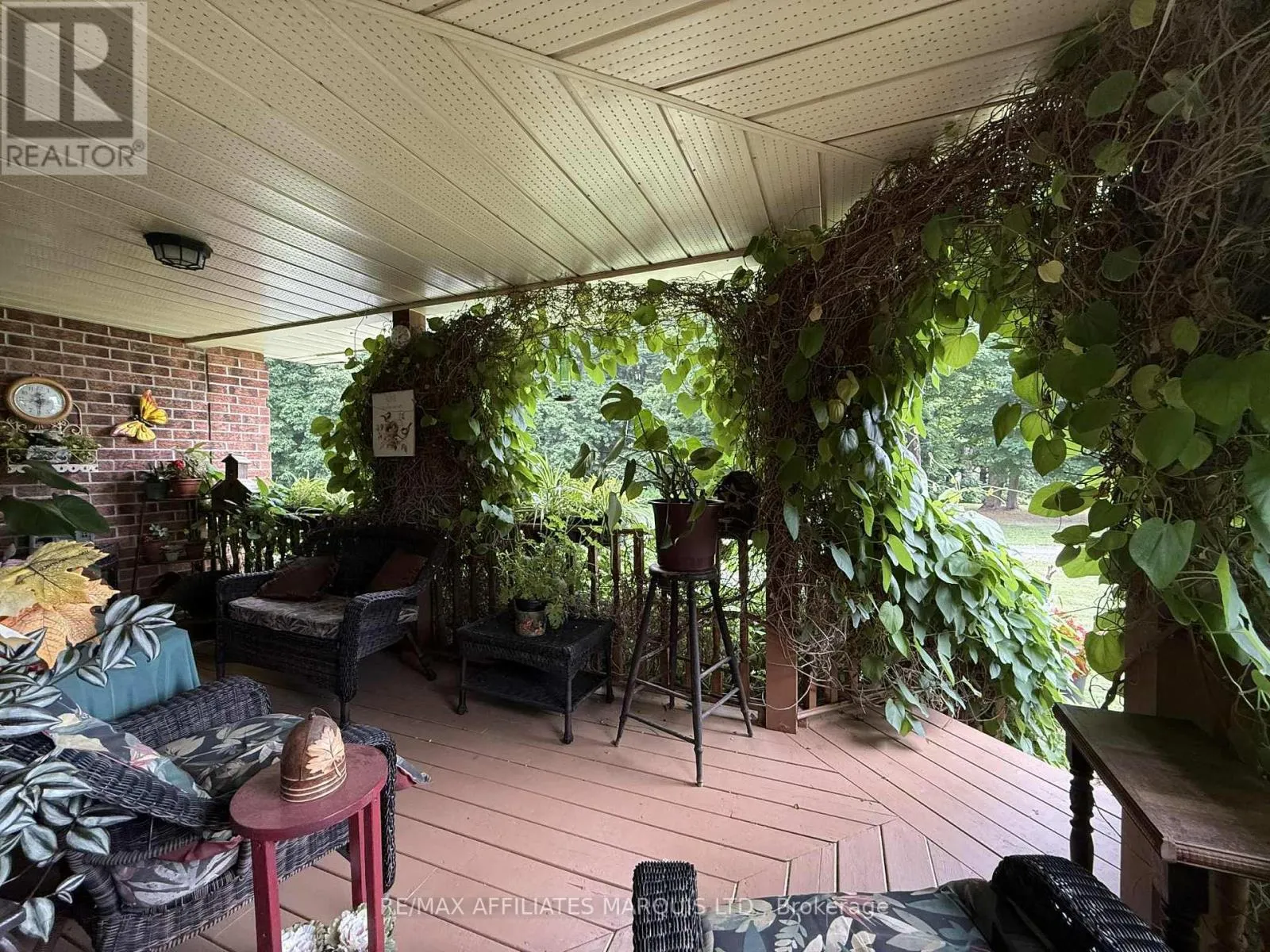 Cross Streets: County Road 43 and Goldfield Road. ** Directions: From Ct Rd 43 head North on Goldfield Road and the home will be on your right hand side. Set on a peaceful 1.7-acre lot surrounded by nature, this custom-built brick bungalow offers the kind of privacy and serenity only country living can provide. With no rear neighbours and sweeping views from every window - from open pastures in front to the forest beyond - this home was lovingly designed to embrace its natural surroundings. From the moment you arrive, its charm shines through: a wrap-around veranda draped in graceful vines and surrounded by colourful perennials, creating your own private sanctuary for morning coffee, evening sunsets, or quiet moments listening to nature. Inside, cathedral ceilings and an open-concept layout connect the kitchen, dining, and living areas, with a cozy fireplace adding warmth and character. The home features three bedrooms and two full bathrooms, offering comfort and functionality throughout. Large windows fill each room with natural light and views of the surrounding landscape. The lower level provides excellent potential for a family rec room, home gym, or hobby space. Outside, a large shed provides all the extra space you could want - whether it's for tools, projects, or a peaceful place to create. It's versatile enough to store your toys too - from snowmobiles and ATVs to that classic car you take out on sunny weekends. A wonderful blend of craftsmanship, comfort, and country calm - this home invites you to slow down, breathe, and enjoy life surrounded by nature. (id:27476)