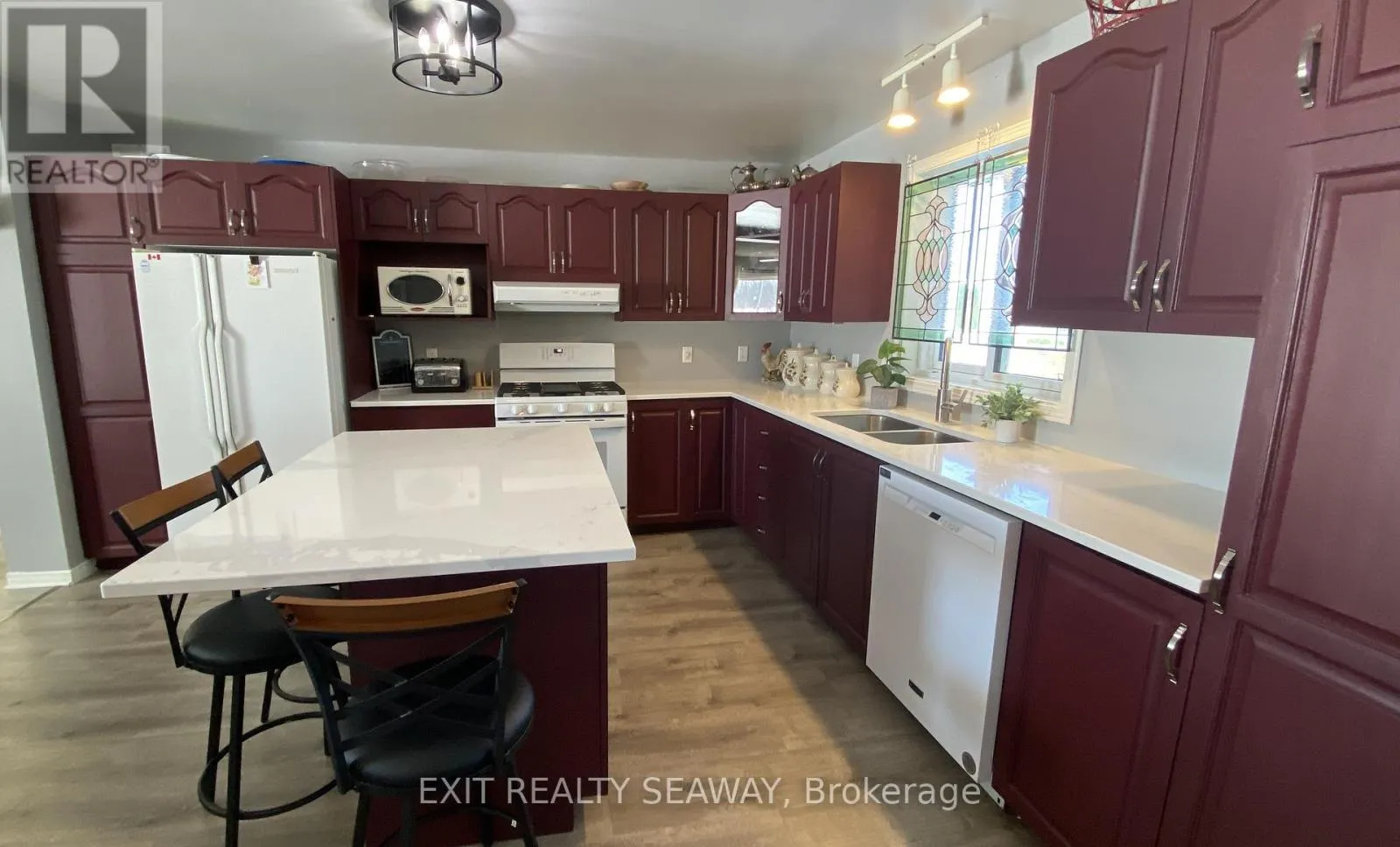Cross Streets: Nevada Street and County Road 15 (AKA McLean Rd.). ** Directions: County Road 15 is also known as (aka) McLean Road. First time on the Market. - 1521 square foot bungalow on a 1.692-acre hilltop lot with sunrise/sunset views in move in ready condition with 2025 updates (kitchen, baths, flooring, paint, propane fireplace). Inside, you will find an open-concept main living area. The kitchen, bathrooms, and flooring were all updated in 2025 and feature resurfaced cupboards, quartz countertops, quartz bathroom vanities, updated light fixtures and new toilets and sinks. The metal roof and interior of this family home were painted in 2025, offering a clean, move-in-ready feel. The kitchen is anchored by a large island with a breakfast bar, and the gas stove and built-in dishwasher (both new in 2025) are included. Patio doors off the dining area lead to a 3-season sunroom (added approx. 10 yrs ago), and the living room offers a large window and propane fireplace (new in 2025) with surrounding built-in shelving. The primary bedroom has a 3-piece ensuite and main floor laundry hookups, the second bedroom offers a large closet and a nearby full bath. There is a 3rd bedroom, currently utilized as a home office, with a bow window, and direct access to the covered front porch. This is a flexible space that works equally well as a bedroom, sitting room or home office. The fully insulated, unfinished basement with high ceilings offers another 1521 sf of potential living space, ready for your personal design. Additional features include: directly connected generator, most windows and doors updated within the last six years, central vacuum, a detached garage, two sheds, a gazebo, a covered wrap-around porch, and a paved driveway. Outdoor enthusiasts will appreciate being near the Moose Creek "Menzies McRae and Family" Recreation Trail, which offers local hiking and walking opportunities in a natural setting. (id:27476)