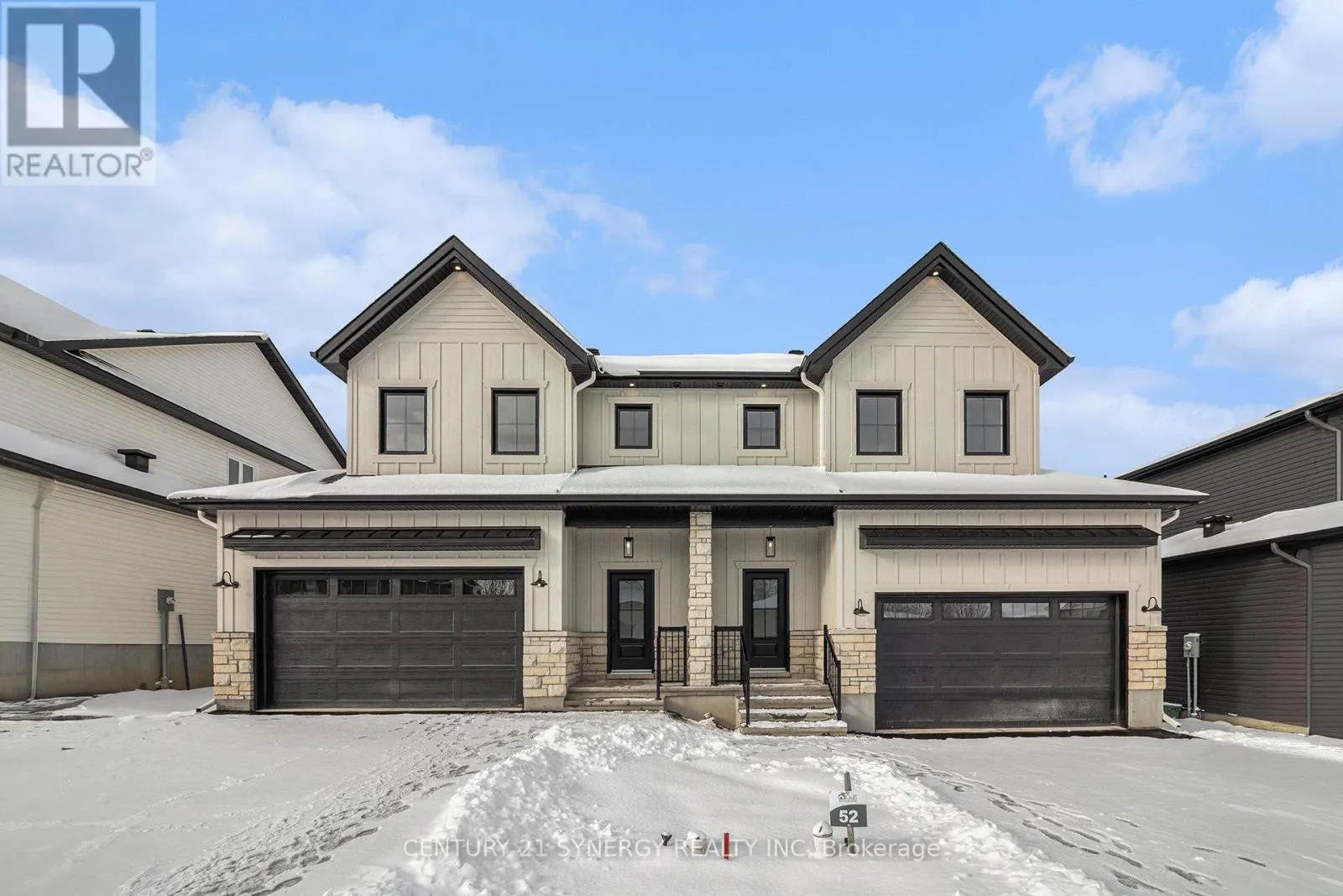 Cross Streets: McLean/Villeneuve. ** Directions: From Trans-Canada Hwy/ON-417 E, Take exit 58 toward Moose Creek/Monkland/Cornwall, merge onto ON-138 S, Turn right onto McLean Rd, Turn left onto Jen Ave, becomes Calco Cres, becomes Villeneuve street. Property will be on the left. Beautiful Modern Farmhouse! Built by a trusted local builder, this stunning semi-detached 2-storey home offers approximately 1,761 sq. ft. of thoughtfully designed living space. Featuring 3 bedrooms, 3 bathrooms, and a spacious double-car garage, there's plenty of room for your vehicles and country toys. The main floor boasts an open-concept layout with quartz countertops, a large 9-ft island with breakfast bar, and a walk-in pantry-perfect for cooking, entertaining, or family gatherings. Enjoy luxury vinyl flooring throughout the entryway, living room, dining room, kitchen, bathroom, and hallway, while plush carpeting adds comfort to the upstairs bedrooms. The primary suite features a generous walk-in closet and a 4-piece ensuite. The second and third bedrooms are spacious and include ample closet space. A full bathroom and convenient second-floor laundry complete the upper level. Outside, unwind on the massive COVERED PORCH ( 1 of 2 properties offering this feature)-a perfect spot to enjoy peaceful country evenings. Complete with central A/C for year-round comfort & eavestrough. No Appliances included. (id:27476)