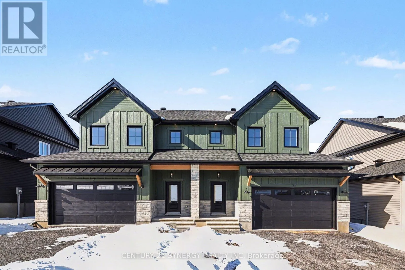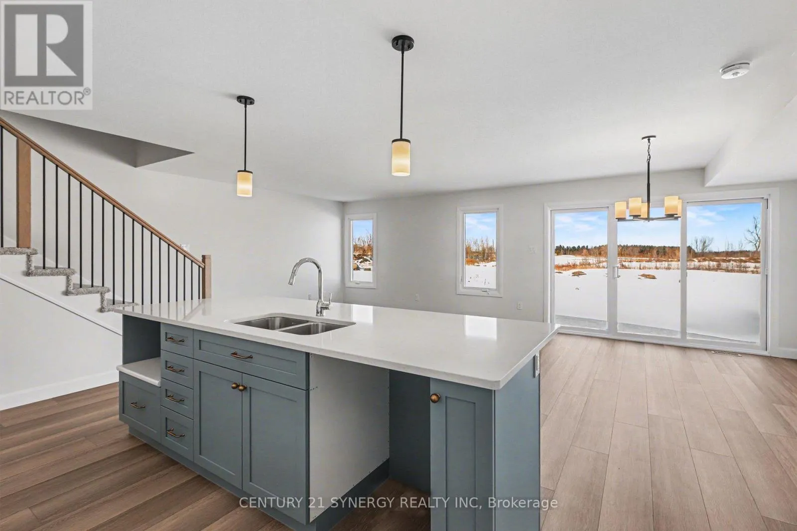 Cross Streets: McLean/Villeneuve. ** Directions: From Trans-Canada Hwy/ON-417 E, Take exit 58 toward Moose Creek/Monkland/Cornwall, merge onto ON-138 S, Turn right onto McLean Rd, Turn left onto Jen Ave, becomes Calco Cres, becomes Villeneuve street. *FULL HST REBATE INCLUDED IN LISTING PRICE* Beautiful modern property built by trusted local builder. Gorgeous semi detached 2 Storey with approximately 1761sq/ft of living space, 3 beds & 3 baths and a massive double car garage to provide plenty of room for your vehicles and country toys. The main floor has an open concept layout with quartz counters in your spacious kitchen, a large 9ft island with breakfast bar, ample cabinets & a large kitchen walk-in pantry. Luxury vinyl floors throughout the entry way, living room, dining room, kitchen, bathroom & hallway. Plush carpeting leads you upstairs into the bedrooms. Primary bedroom offers a spacious walk-in closet & a 3pc ensuite bath. 2nd/3rdbedrooms are also spacious with ample closet space in each. Full bathroom & Laundry room on second floor. No Appliances or AC included. Site plan, Floorplan, Feat. & Specs/upgrades attached! (id:27476)