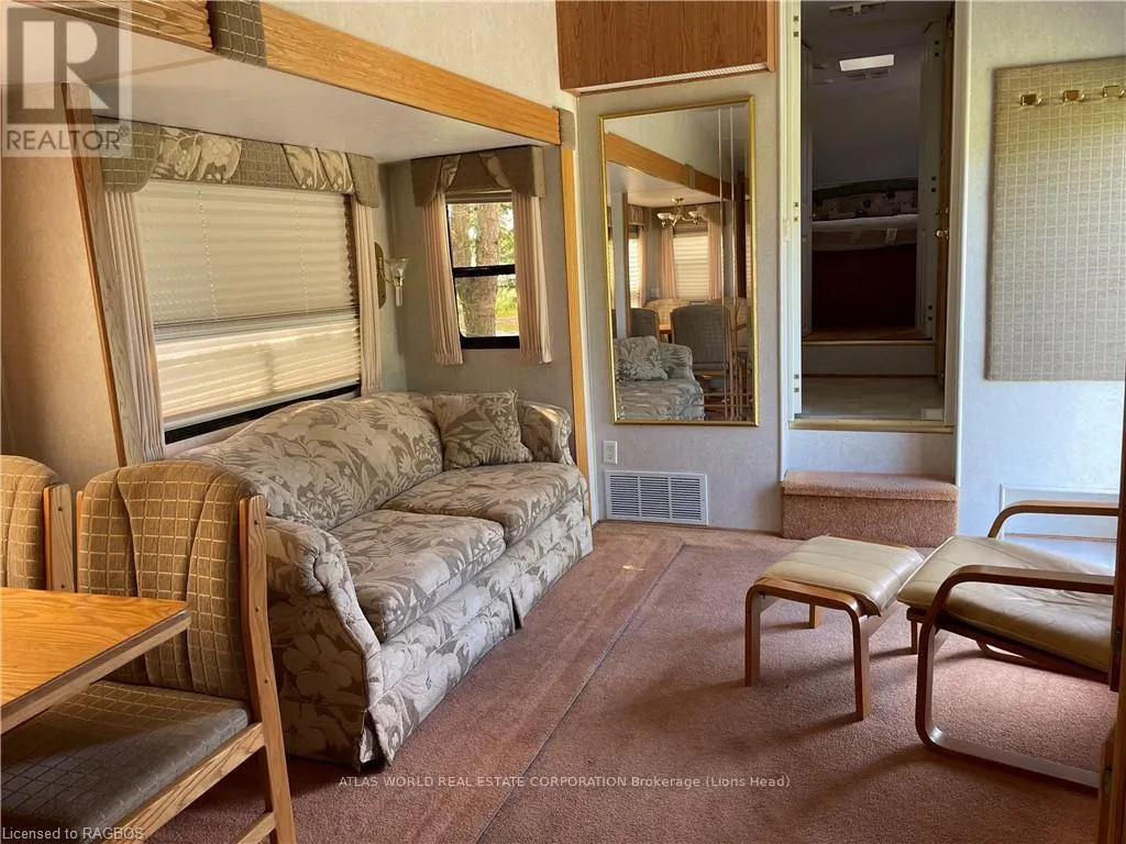 Hwy 6 North to Ferndale turn left on County Road 9 to Stokes Bay Road, turn right continue to Stokes Bay turn left at the T intersection to CabinCo. We are in the left as you round the corner. Enjoy Legends lookout RV. Site and boat launch on a weekly or daily basis. Great views and close to the docks on Stokes Bay. This spacious living room and indoor eat-in cooking area and sitting area can convert to accommodate additional guests... Four Piece bath and queen sized separate bedroom.. Your site includes a BBQ with Propane provided and a picnic table and firepit to enjoy outdoor dining and evening fires. Settle in to enjoy your stay or travel to Lions Head or Tobermory which are close by! (id:27476)