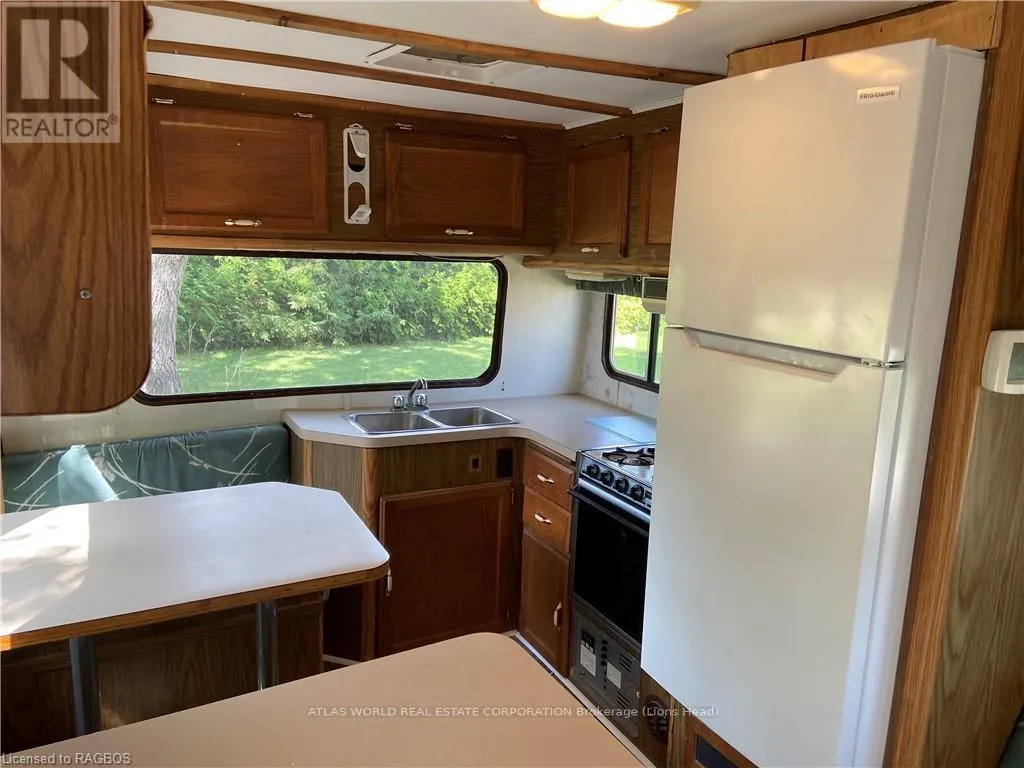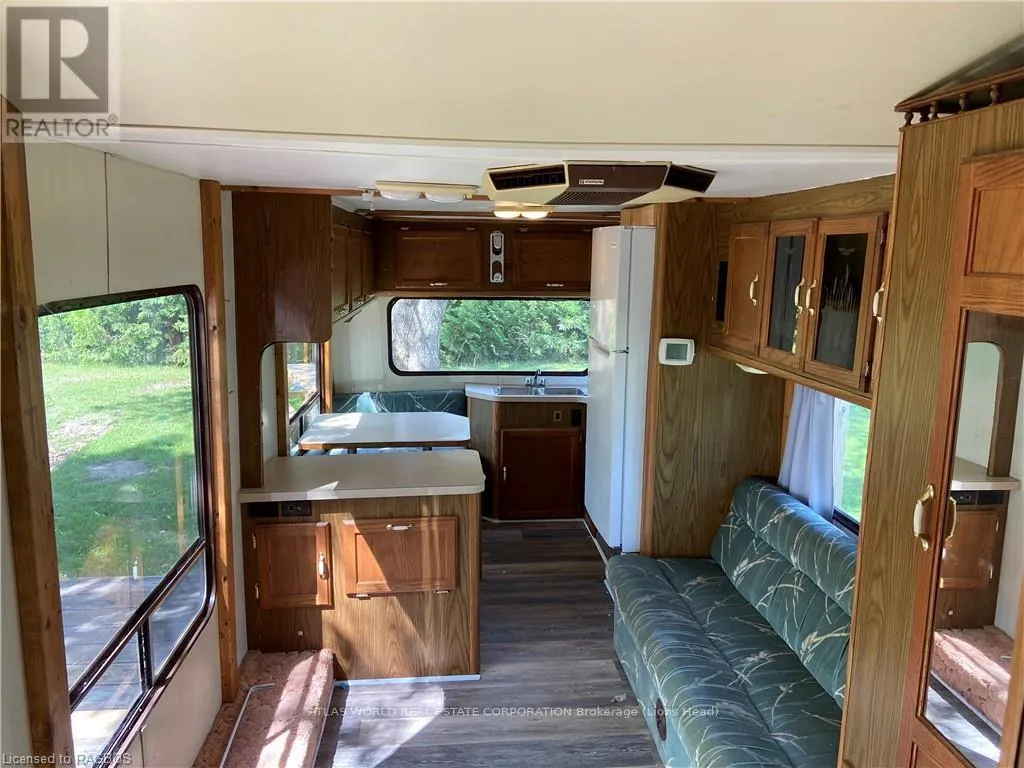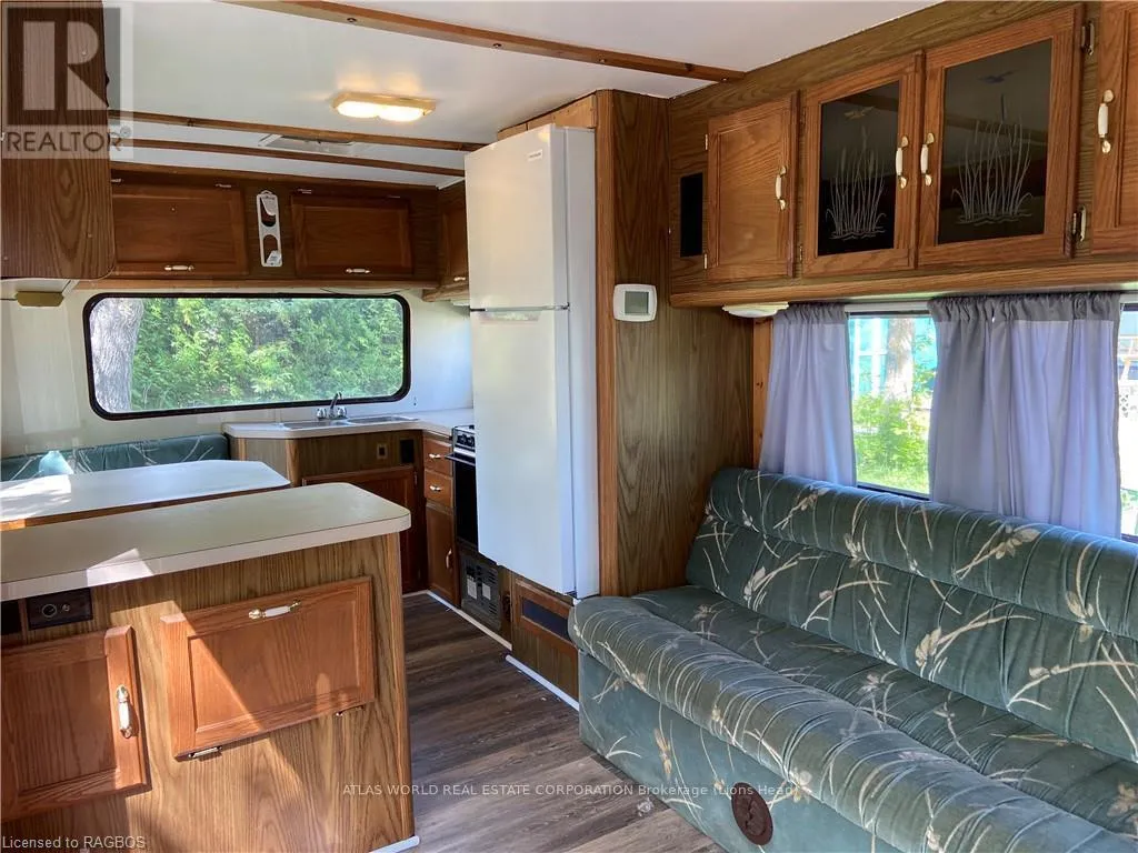 Hwy 6 North to Ferndale, turn left on to county road 9 . Continue to turn right on Stokes Bay road. Follow stokes bay road until T intersection and turn left. Continue to bridge and turn right onto Tamarac Road. On your left is 9 Tamarac road Cabinco Rent this spacious RV, site and boat launching on a weekly or daily basis. Great views and close to the docks on Stokes Bay. A spacious living room and indoor eating and cooking area plus sitting area converts to accommodate additional guest. Private 3 piece trailer size bathroom with shower and a queen size separate bedroom. Your site includes a bbq on the spacious additional deck with propane provided. A firepit and picnic table are on site for outdoor dining and evening fires. Settle in and enjoy your stay or travel to near by Lions Head or Tobermory just a short drive away to enjoy the amenities and the Bruce Trail. (id:27476)