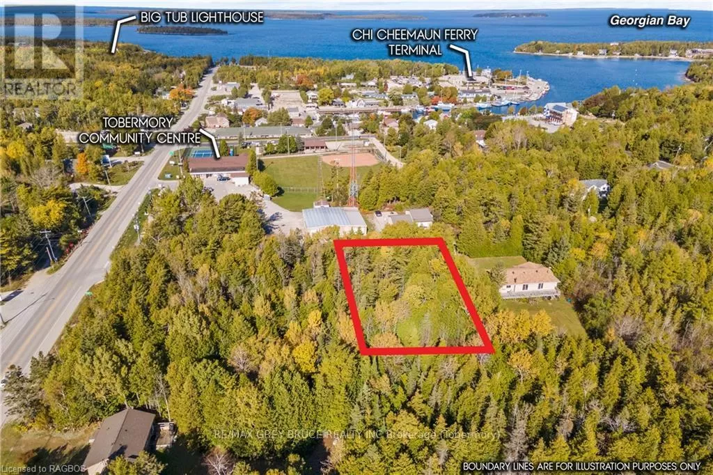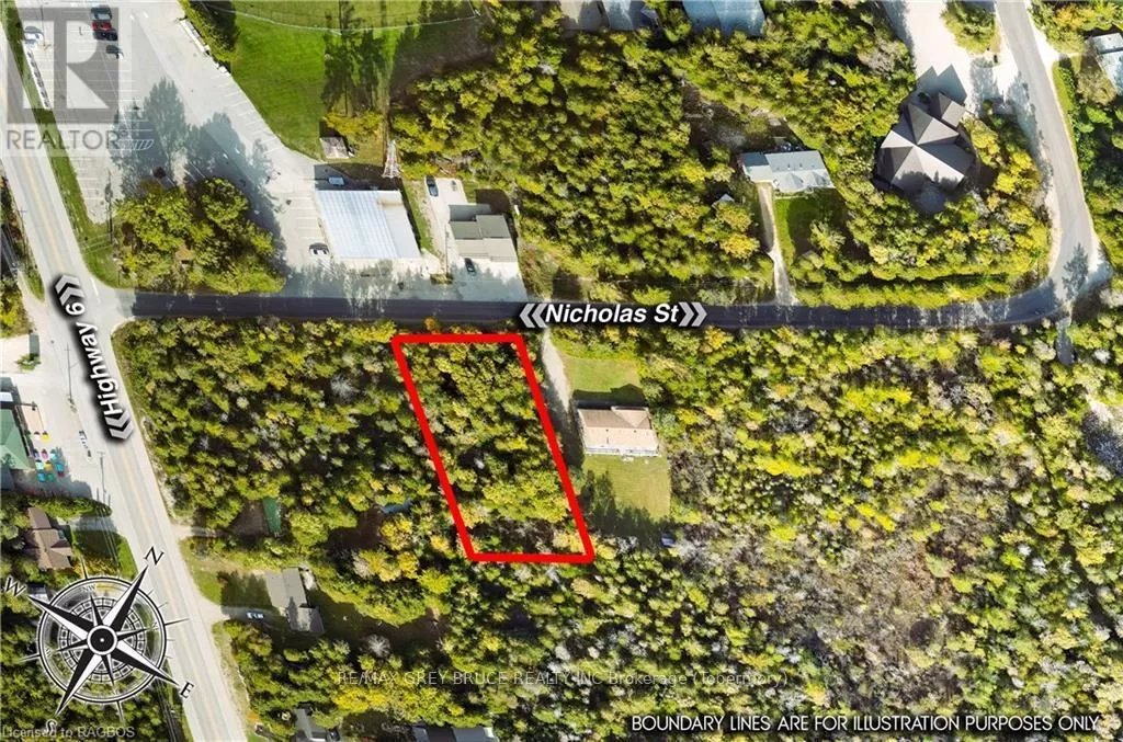 Head North on Highway 6 (ON-6) towards Tobermory, turn right onto Nicholas St. Destination will be on the right, look for signs. IN-TOWN TOBERMORY! Locate yourself steps away from the amenities of town. Walk the trails, shop, dine and discover what Tobermory has to offer. This 76' x 200' vacant lot is sited on a year-round maintained road with access to hydro at the roadside. The property is zoned R1. The property is well treed for privacy and has beautiful rock features and mature evergreen trees for you to incorporate into your landscape design! Make your dreams come true and consider building your own retirement home, a cottage getaway or purchase the property as an investment in a growing area. Tobermory is well known for its scuba diving, beautiful water access points, access to the Bruce Trail and more. Welcome to Tobermory! - Property is shown as Ref. #1 on the Map. (id:27476)