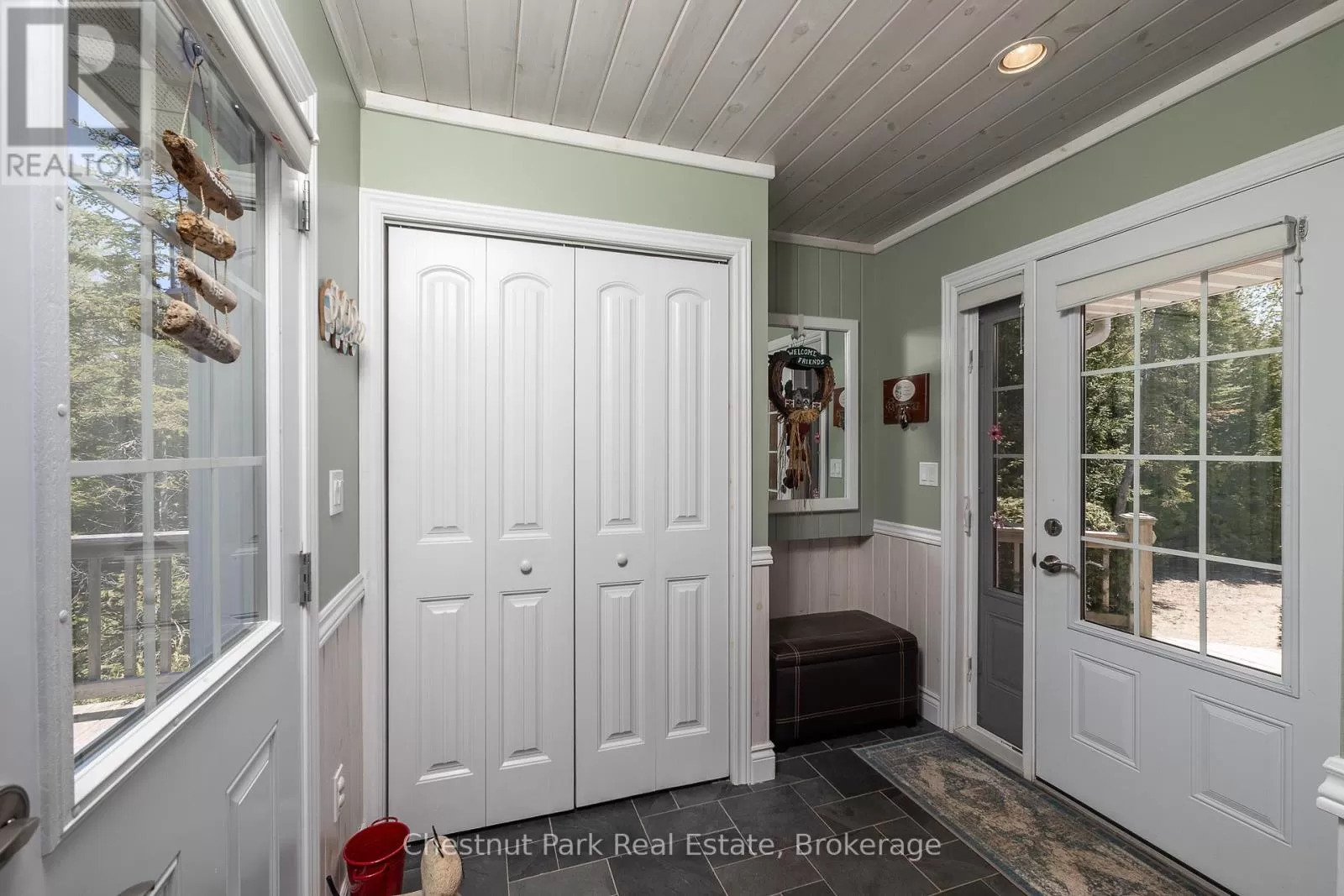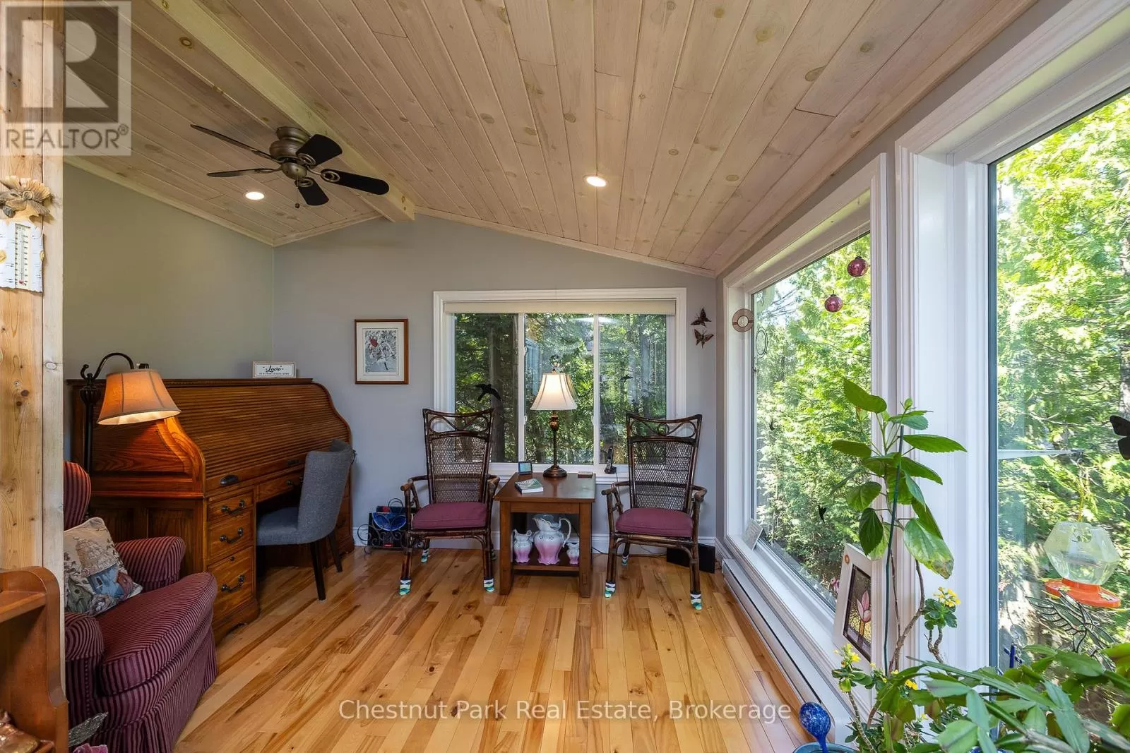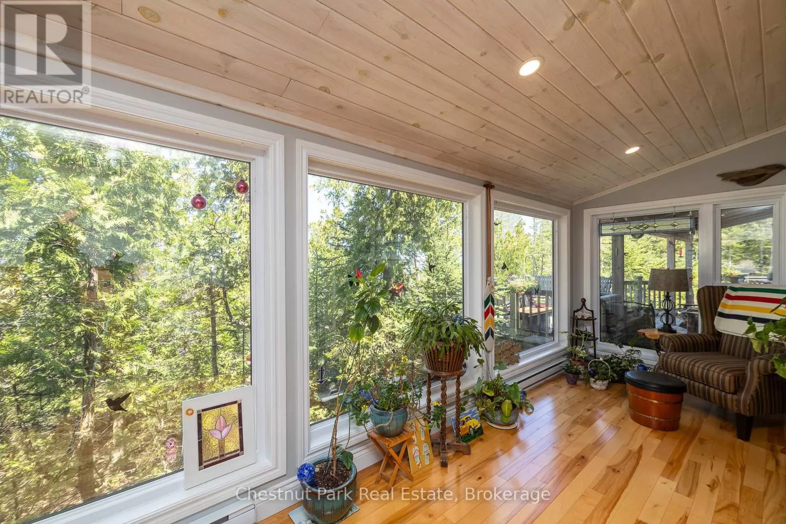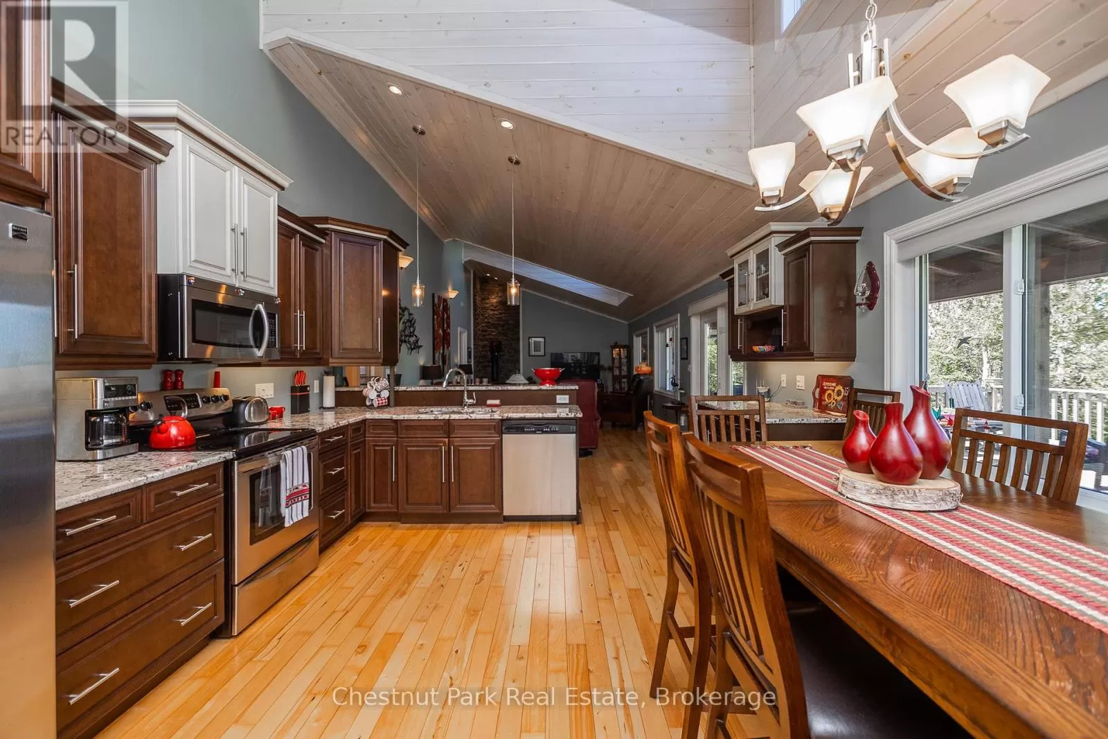 Cross Streets: Zorra & Cape Hurd. ** Directions: Head north on Highway 6 (ON-6N), turn Left onto Cape Hurd Rd, turn Left onto Zorra Drive, Follow to #94 on right side. Tranquil Waterfront Retreat Near Tobermory. Escape to serenity with this private year-round 3-bedroom, 2-bathroom waterfront home, designed for both comfort and style. Situated on a stunning shoreline, you'll enjoy breathtaking lake views from nearly every room and the expansive wraparound deck is perfect for sunsets, morning coffee, bird watching & stargazing. Inside, the modern open-concept layout is enhanced by vaulted wood ceilings with bright dormer windows, gleaming maple hardwood floors, and a dramatic gas fireplace anchoring the spacious living area. The kitchen features rich cabinetry, granite countertops, and stainless steel appliances, making it a dream for any home chef. A 4-season sunroom offers the ideal space for a home office or cozy reading nook, set apart from the main living areas. The primary suite includes a generous walk-in closet, marble-tiled ensuite, and direct access to the deck. Additional features include central vacuum, main floor laundry, full back up generator power and a detached 1.5-car garage with water hookup. Beautiful perennial gardens surround the property, offering natural beauty and privacy while just a short drive from the charming village of Tobermory. (id:27476)