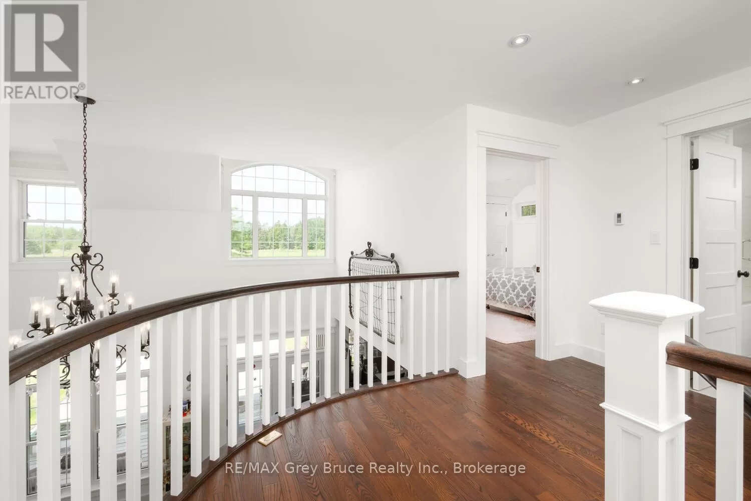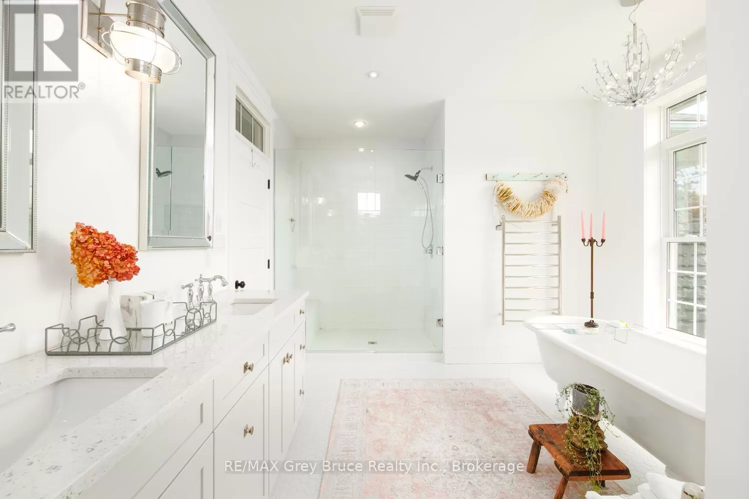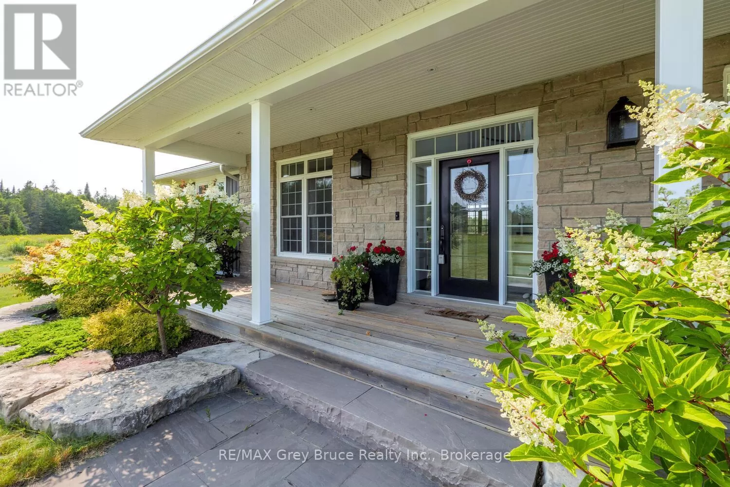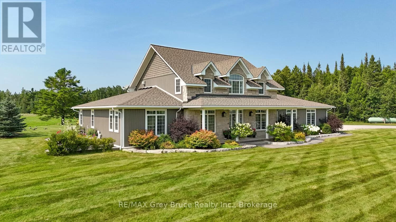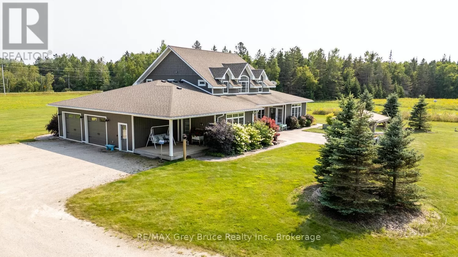 Cross Streets: Dunks Bay Rd & Highway 6. ** Directions: Head North on Hwy 6, turn right on Dunks Bay Road, Follow Signs, Destination will be on the Left. Welcome to this beautifully crafted home, offering comfort, functionality, and elegance. Boasting over 3,100 sq. ft. of thoughtfully designed living space, this residence is set on 54 scenic acres featuring forested trails, a sprawling meadow, and plenty of room to explore. Located just minutes from Tobermory - a picturesque lakeside town known for its crystal-clear waters, dramatic limestone cliffs, scuba diving, and the Bruce Peninsula National Park. With public beaches, hiking, and snowmobile trails nearby, year-round recreation is right at your doorstep. Enjoy peaceful moments under one of three covered decks, relax beneath the pergola, or gather around the firepit. Inside, the home welcomes you with a warm, spacious ambiance. The main level is ideal for hosting family and friends. The custom kitchen is a dream for any home chef, featuring black granite countertops, under-cabinet lighting, pantry, and breakfast bar, seamlessly flowing into the living area and formal dining room. Retreat to the main-floor primary suite, a private oasis complete with two walk-in closets and a luxurious 5-pc ensuite bath. Upstairs, you'll find three generously sized bedrooms and a 4-pc bathroom - ideal for a growing family, guests, or potential bed & breakfast accommodations. Elegant features throughout: hardwood flooring, 10-ft ceilings, transom windows. Modern conveniences abound with a 2-car attached garage, in-floor heating, central air conditioning, main-floor laundry, irrigation system, underground hydro service and an automatic whole-home generator. A true standout feature is the impressive 40' x 80' workshop - perfect for a home-based business or serious hobbyist - complete with in-floor heating. Located a short distance to public water access at Dunks Bay, Bruce Trail access, and the Tobermory airport. This exceptional property combines serene natural surroundings with modern luxury - offering a rare opportunity to live, work, and play in one incredible location. (id:27476)