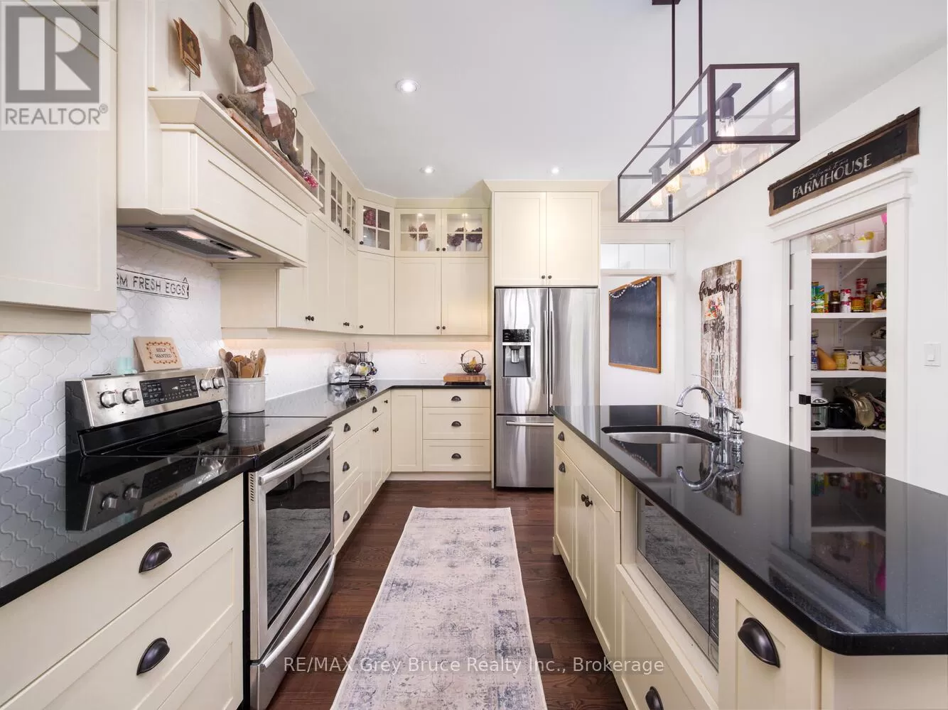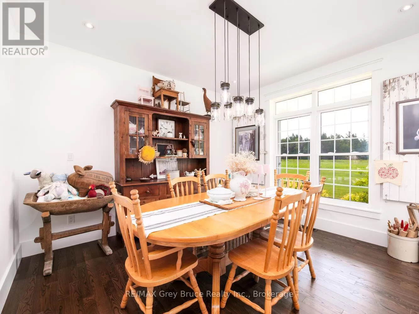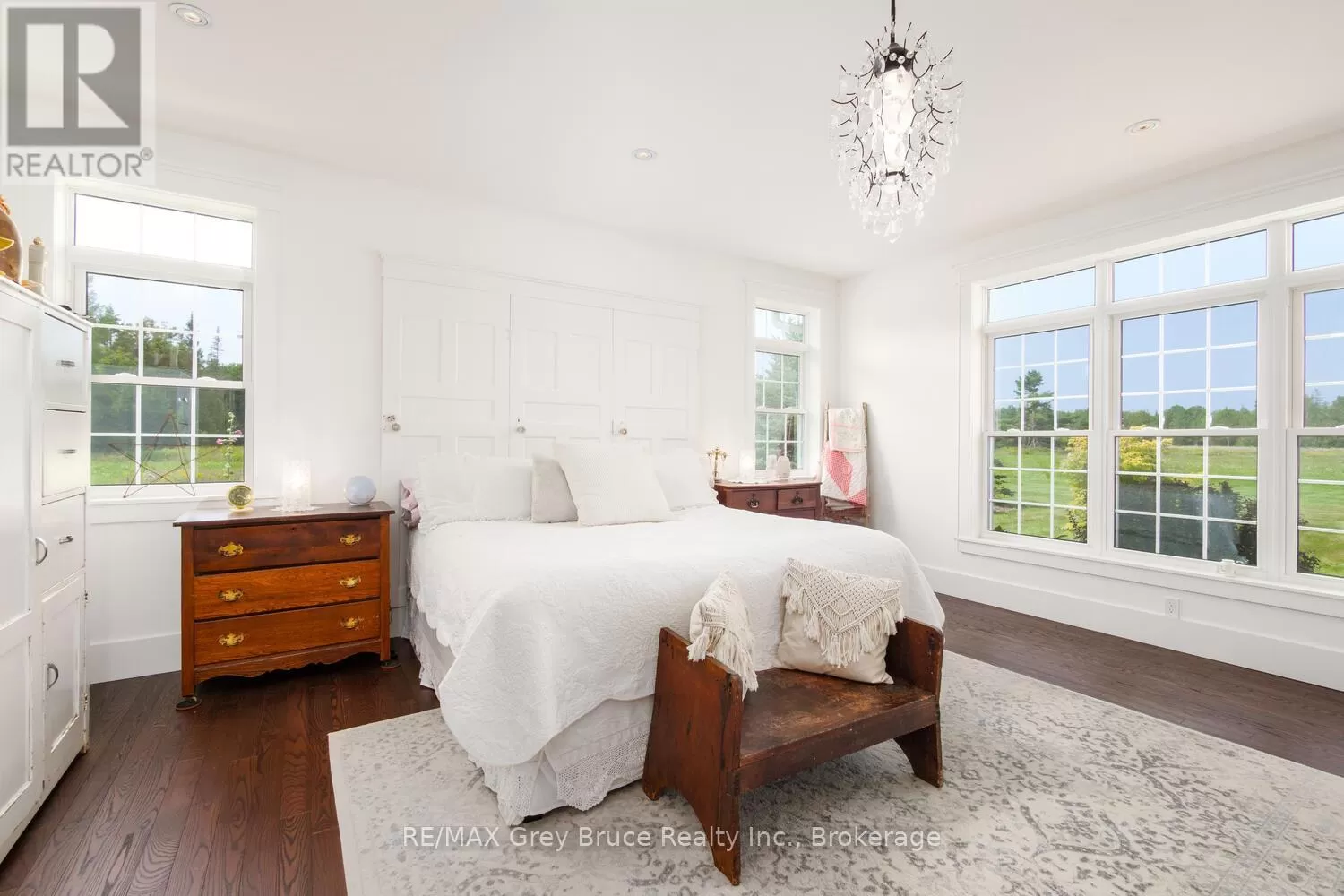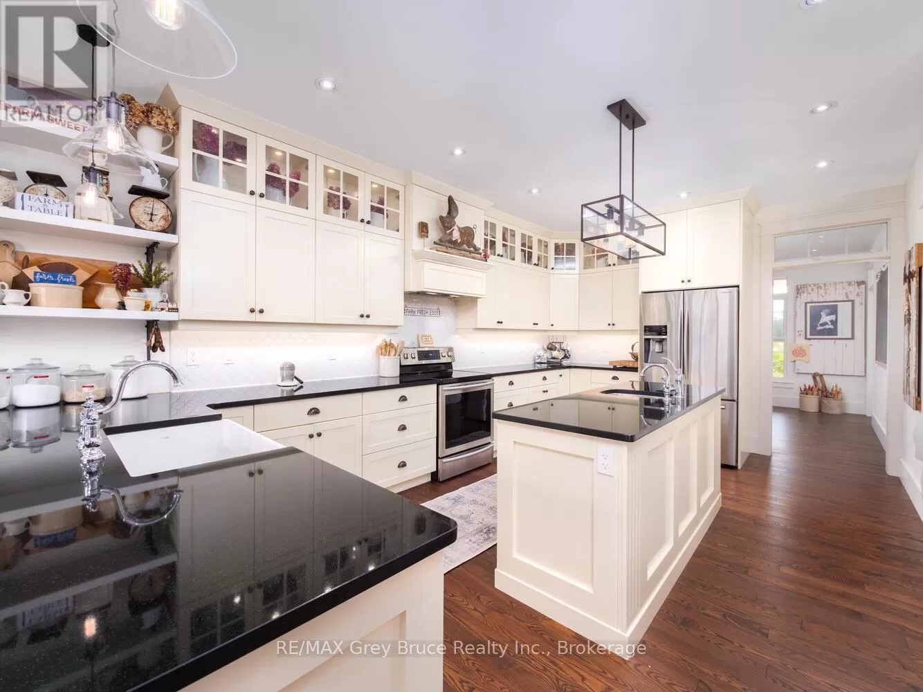Cross Streets: Dunks Bay Rd & Highway 6. ** Directions: Head North on Hwy 6, turn right on Dunks Bay Road, Follow Signs, Destination will be on the Left. Welcome to this beautifully crafted home, offering comfort, functionality, and elegance. Boasting over 3,100 sq. ft. of thoughtfully designed living space, this residence is set on 54 scenic acres featuring forested trails, a sprawling meadow, and plenty of room to explore. Located just minutes from Tobermory - a picturesque lakeside town known for its crystal-clear waters, dramatic limestone cliffs, scuba diving, and the Bruce Peninsula National Park. With public beaches, hiking, and snowmobile trails nearby, year-round recreation is right at your doorstep. Enjoy peaceful moments under one of three covered decks, relax beneath the pergola, or gather around the firepit. Inside, the home welcomes you with a warm, spacious ambiance. The main level is ideal for hosting family and friends. The custom kitchen is a dream for any home chef, featuring black granite countertops, under-cabinet lighting, pantry, and breakfast bar, seamlessly flowing into the living area and formal dining room. Retreat to the main-floor primary suite, a private oasis complete with two walk-in closets and a luxurious 5-pc ensuite bath. Upstairs, you'll find three generously sized bedrooms and a 4-pc bathroom - ideal for a growing family, guests, or potential bed & breakfast accommodations. Elegant features throughout: hardwood flooring, 10-ft ceilings, transom windows. Modern conveniences abound with a 2-car attached garage, in-floor heating, central air conditioning, main-floor laundry, irrigation system, underground hydro service and an automatic whole-home generator. A true standout feature is the impressive 40' x 80' workshop - perfect for a home-based business or serious hobbyist - complete with in-floor heating. Located a short distance to public water access at Dunks Bay, Bruce Trail access, and the Tobermory airport. This exceptional property combines serene natural surroundings with modern luxury - offering a rare opportunity to live, work, and play in one incredible location. (id:27476)
