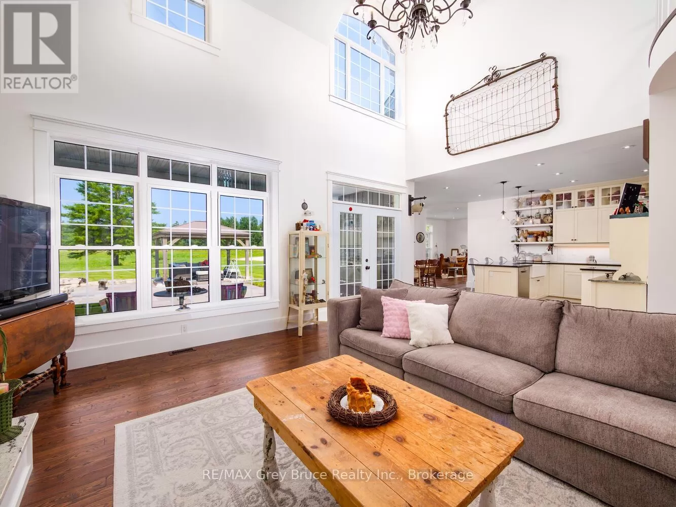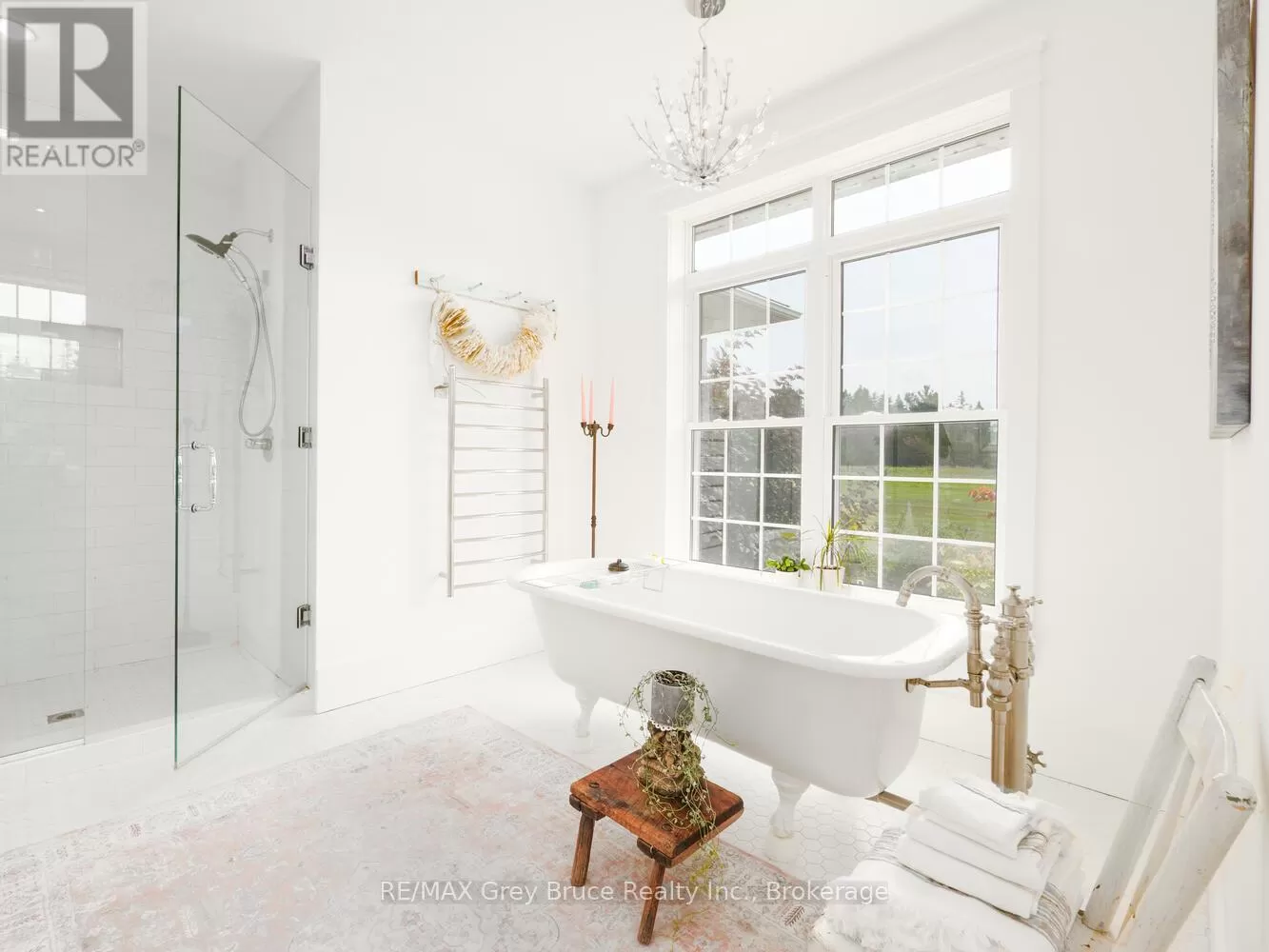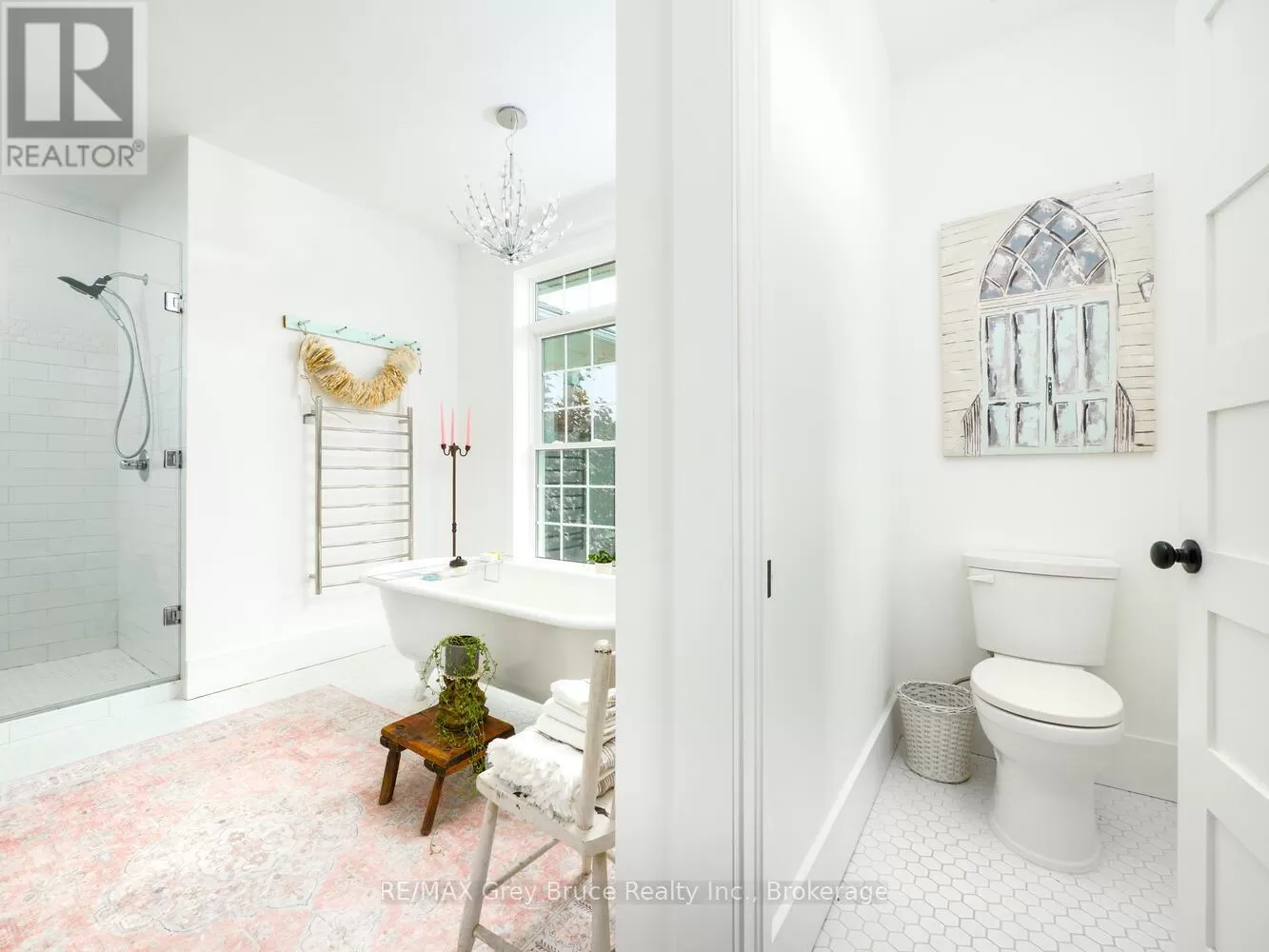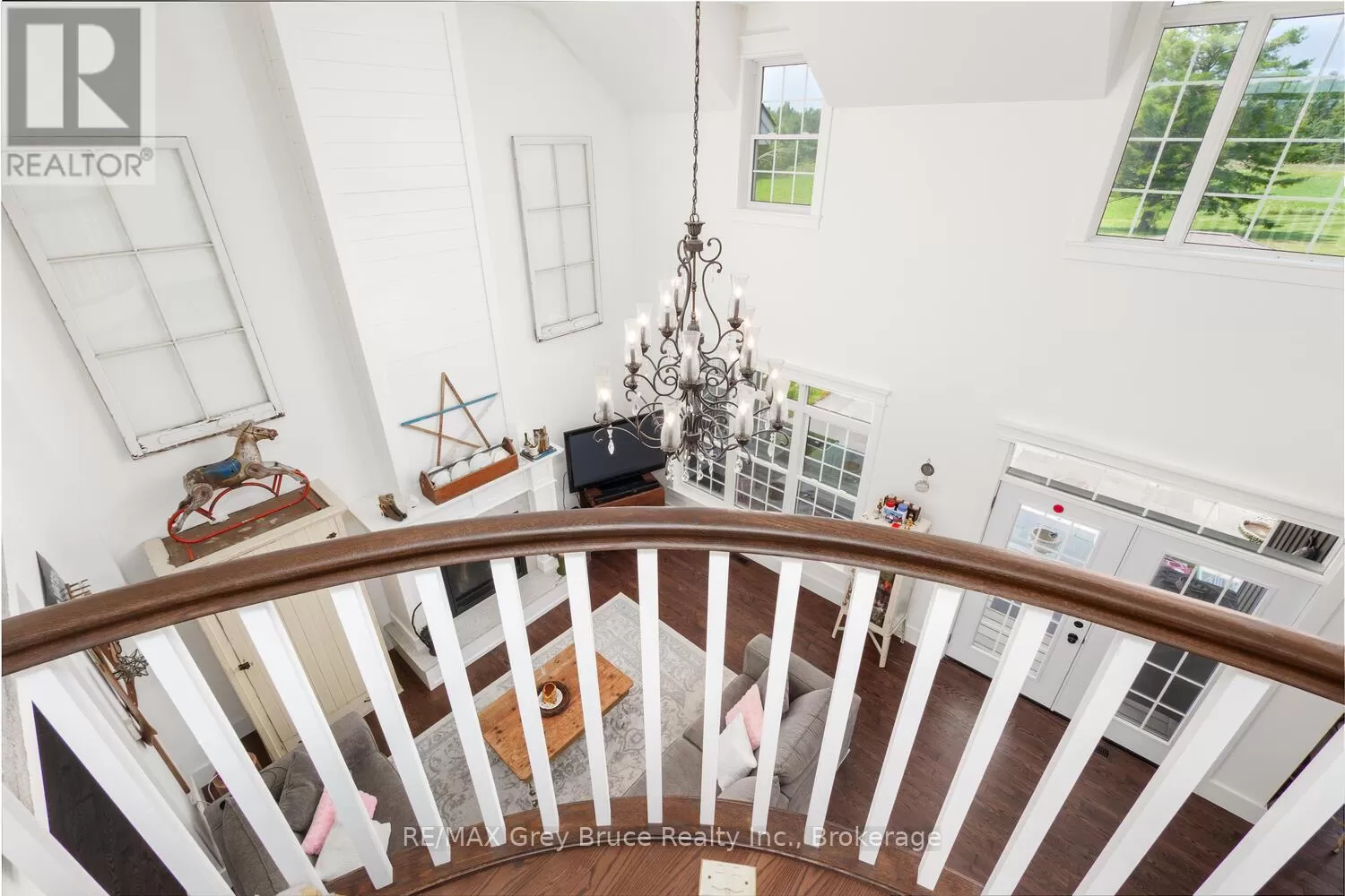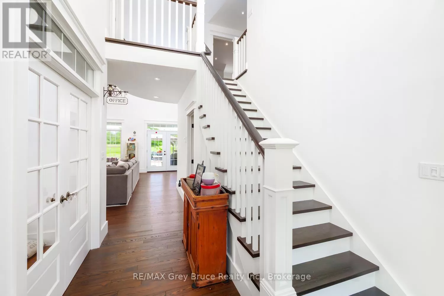 Cross Streets: Dunks Bay Rd & Highway 6. ** Directions: Head North on Hwy 6, turn right on Dunks Bay Road, Follow Signs, Destination will be on the Left. Welcome to this beautifully crafted home, offering comfort, functionality, and elegance. Boasting over 3,100 sq. ft. of thoughtfully designed living space, this residence is set on 54 scenic acres featuring forested trails, a sprawling meadow, and plenty of room to explore. Located just minutes from Tobermory - a picturesque lakeside town known for its crystal-clear waters, dramatic limestone cliffs, scuba diving, and the Bruce Peninsula National Park. With public beaches, hiking, and snowmobile trails nearby, year-round recreation is right at your doorstep. Enjoy peaceful moments under one of three covered decks, relax beneath the pergola, or gather around the firepit. Inside, the home welcomes you with a warm, spacious ambiance. The main level is ideal for hosting family and friends. The custom kitchen is a dream for any home chef, featuring black granite countertops, under-cabinet lighting, pantry, and breakfast bar, seamlessly flowing into the living area and formal dining room. Retreat to the main-floor primary suite, a private oasis complete with two walk-in closets and a luxurious 5-pc ensuite bath. Upstairs, you'll find three generously sized bedrooms and a 4-pc bathroom - ideal for a growing family, guests, or potential bed & breakfast accommodations. Elegant features throughout: hardwood flooring, 10-ft ceilings, transom windows. Modern conveniences abound with a 2-car attached garage, in-floor heating, central air conditioning, main-floor laundry, irrigation system, underground hydro service and an automatic whole-home generator. A true standout feature is the impressive 40' x 80' workshop - perfect for a home-based business or serious hobbyist - complete with in-floor heating. Located a short distance to public water access at Dunks Bay, Bruce Trail access, and the Tobermory airport. This exceptional property combines serene natural surroundings with modern luxury - offering a rare opportunity to live, work, and play in one incredible location. (id:27476)