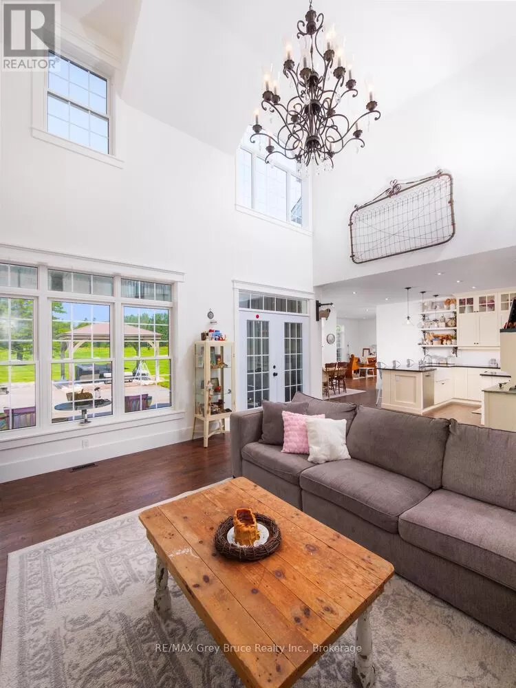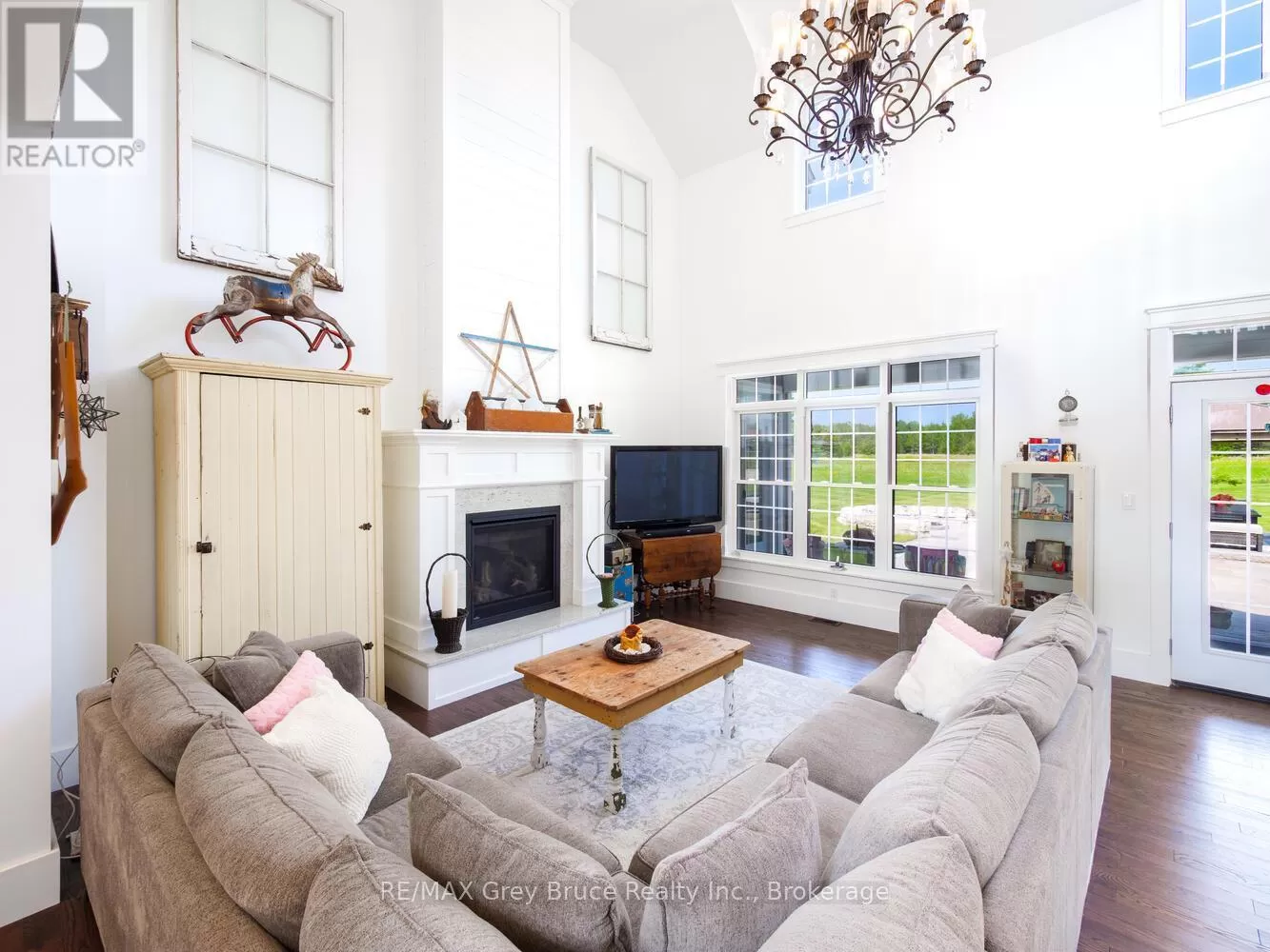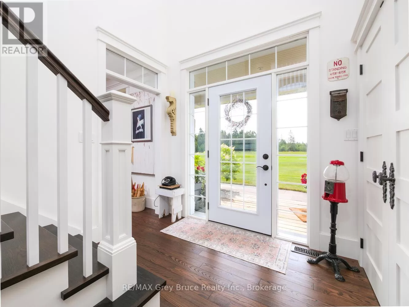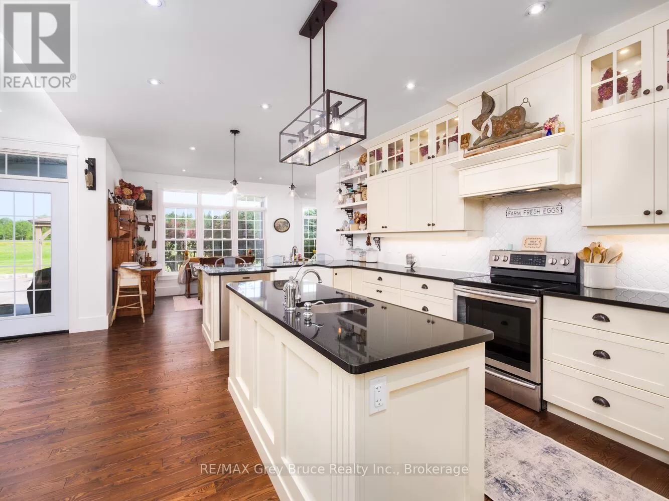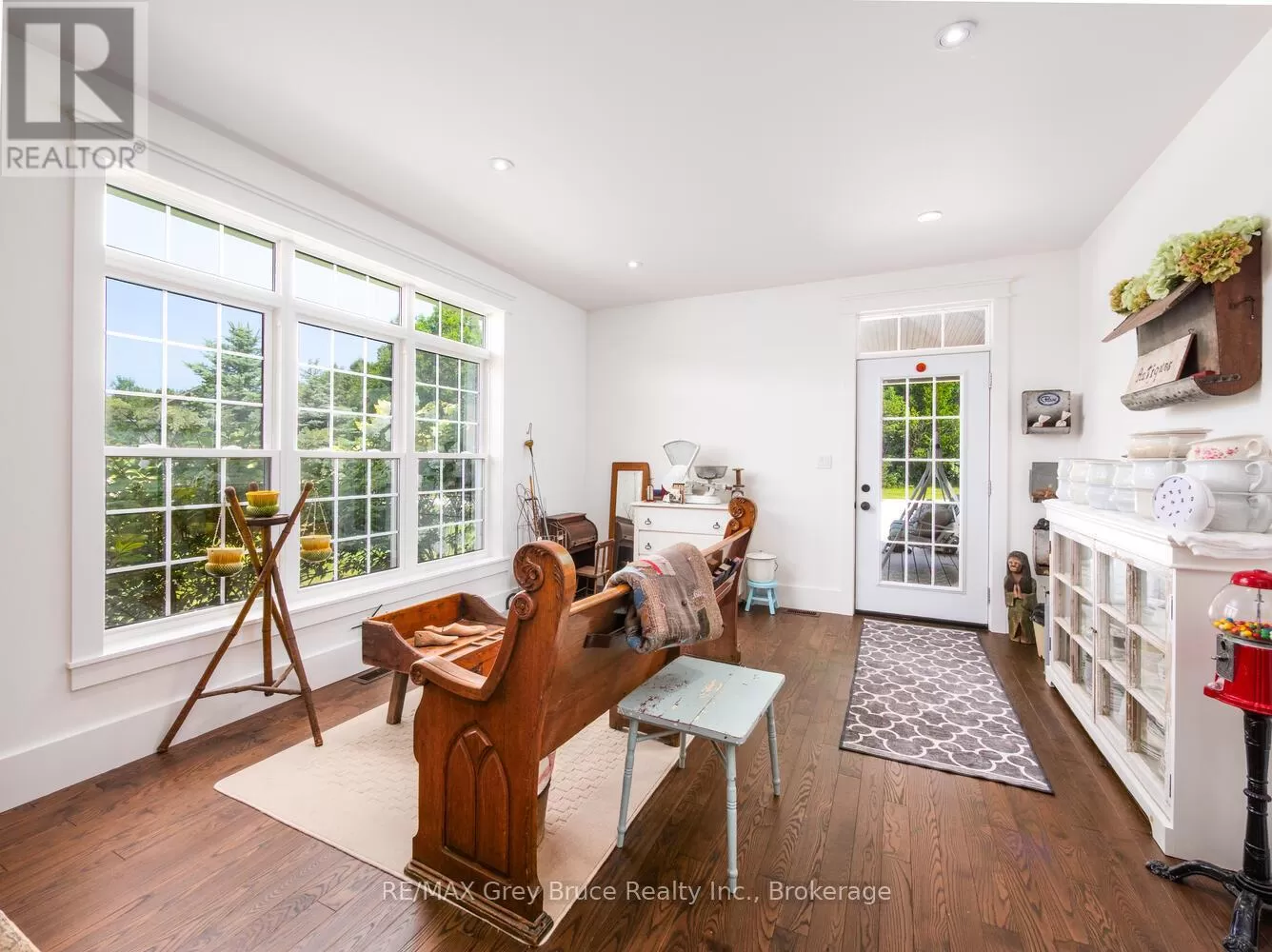 Cross Streets: Dunks Bay Rd & Highway 6. ** Directions: Head North on Hwy 6, turn right on Dunks Bay Road, Follow Signs, Destination will be on the Left. Welcome to this beautifully crafted home, offering comfort, functionality, and elegance. Boasting over 3,100 sq. ft. of thoughtfully designed living space, this residence is set on 54 scenic acres featuring forested trails, a sprawling meadow, and plenty of room to explore. Located just minutes from Tobermory - a picturesque lakeside town known for its crystal-clear waters, dramatic limestone cliffs, scuba diving, and the Bruce Peninsula National Park. With public beaches, hiking, and snowmobile trails nearby, year-round recreation is right at your doorstep. Enjoy peaceful moments under one of three covered decks, relax beneath the pergola, or gather around the firepit. Inside, the home welcomes you with a warm, spacious ambiance. The main level is ideal for hosting family and friends. The custom kitchen is a dream for any home chef, featuring black granite countertops, under-cabinet lighting, pantry, and breakfast bar, seamlessly flowing into the living area and formal dining room. Retreat to the main-floor primary suite, a private oasis complete with two walk-in closets and a luxurious 5-pc ensuite bath. Upstairs, you'll find three generously sized bedrooms and a 4-pc bathroom - ideal for a growing family, guests, or potential bed & breakfast accommodations. Elegant features throughout: hardwood flooring, 10-ft ceilings, transom windows. Modern conveniences abound with a 2-car attached garage, in-floor heating, central air conditioning, main-floor laundry, irrigation system, underground hydro service and an automatic whole-home generator. A true standout feature is the impressive 40' x 80' workshop - perfect for a home-based business or serious hobbyist - complete with in-floor heating. Located a short distance to public water access at Dunks Bay, Bruce Trail access, and the Tobermory airport. This exceptional property combines serene natural surroundings with modern luxury - offering a rare opportunity to live, work, and play in one incredible location. (id:27476)